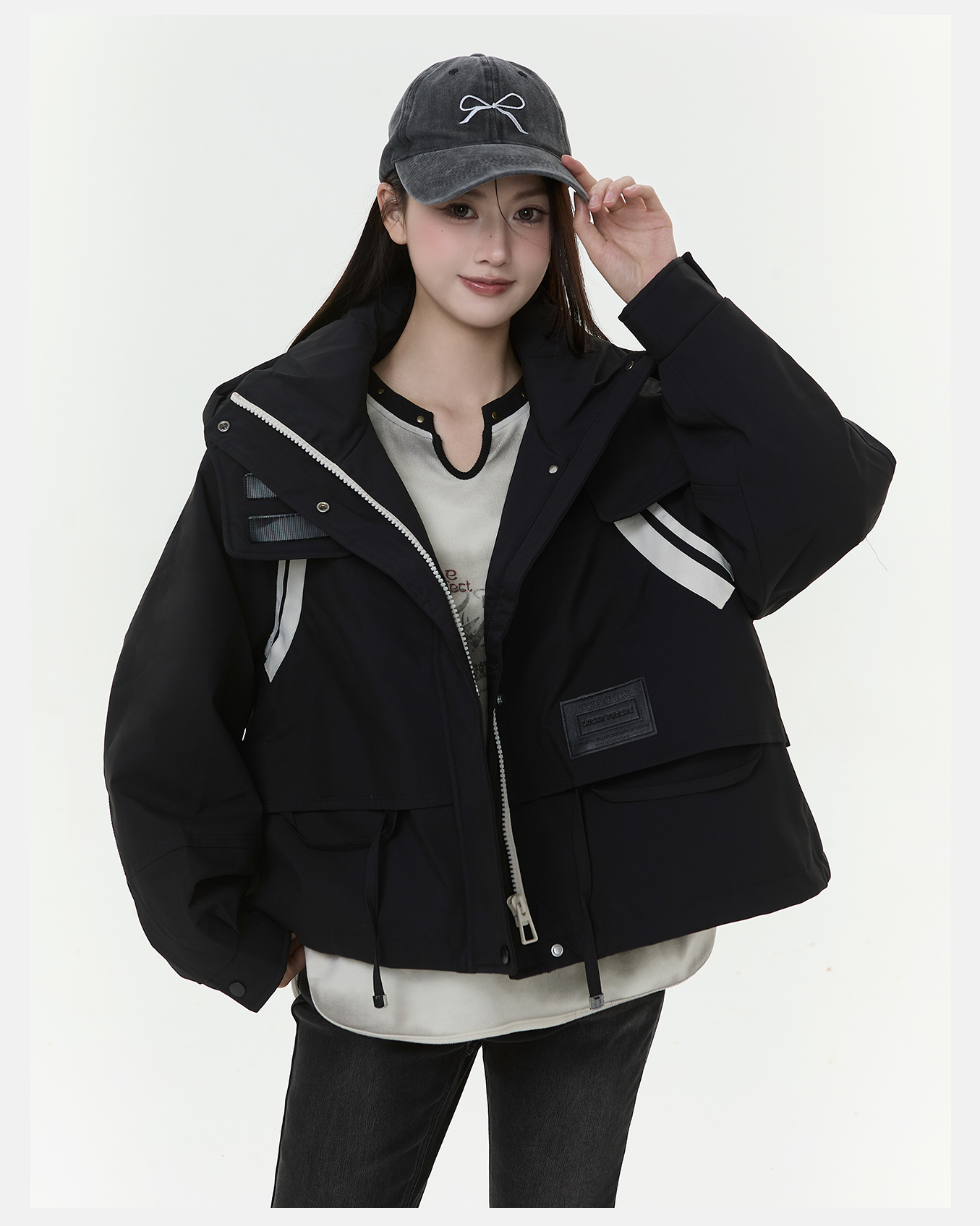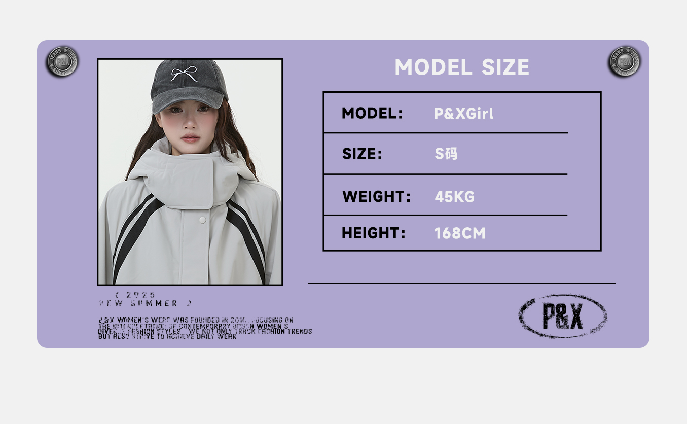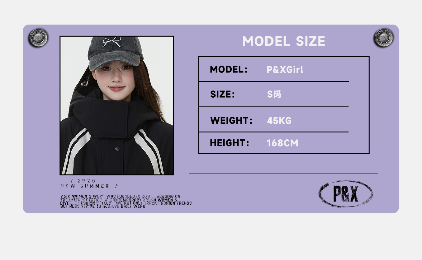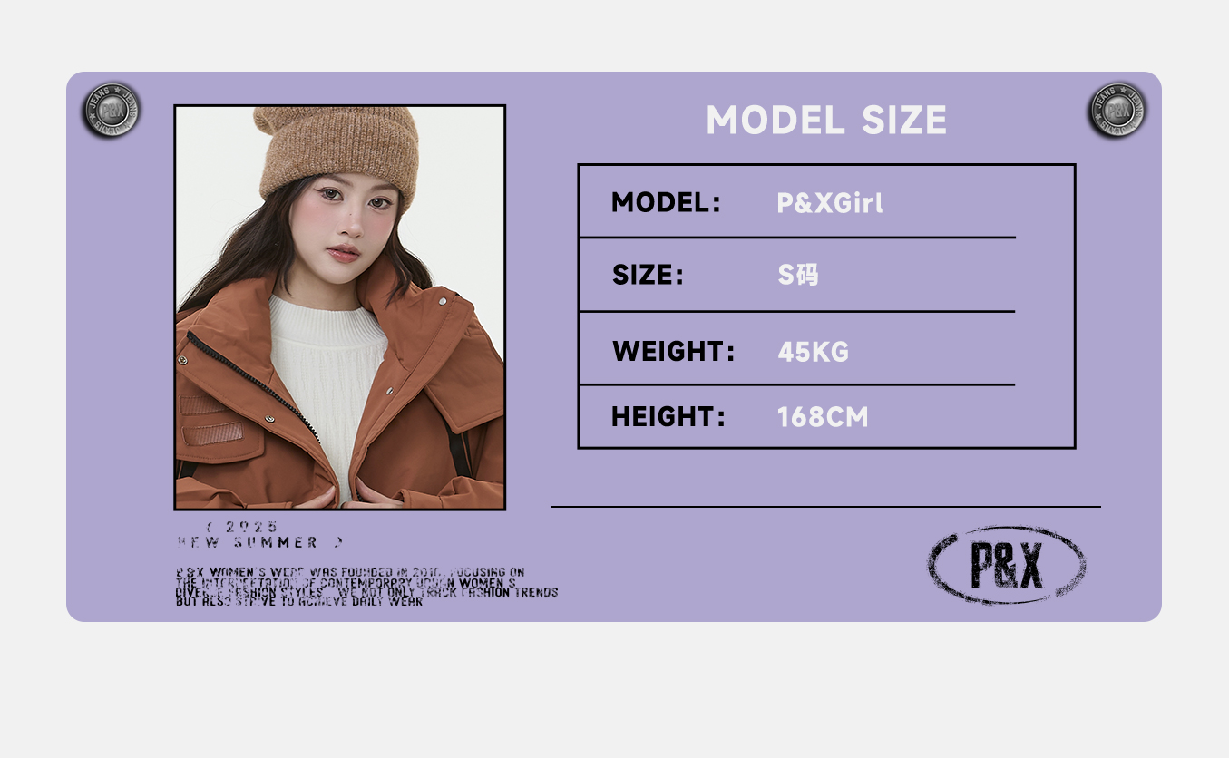 P&X设计师女装2025冬季拉链防风户外派克短款羽绒服 825424179