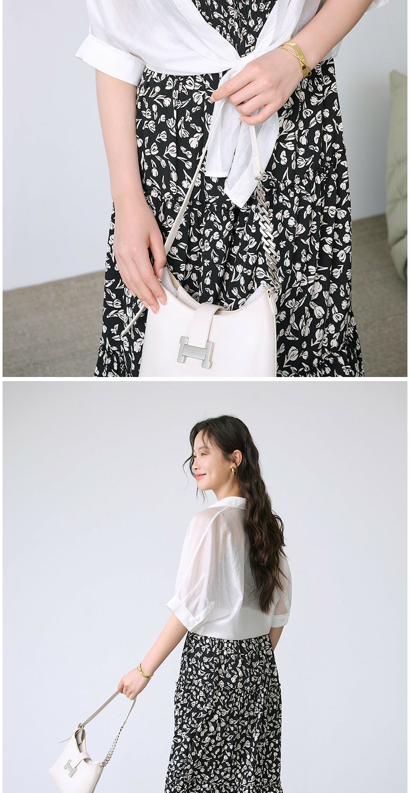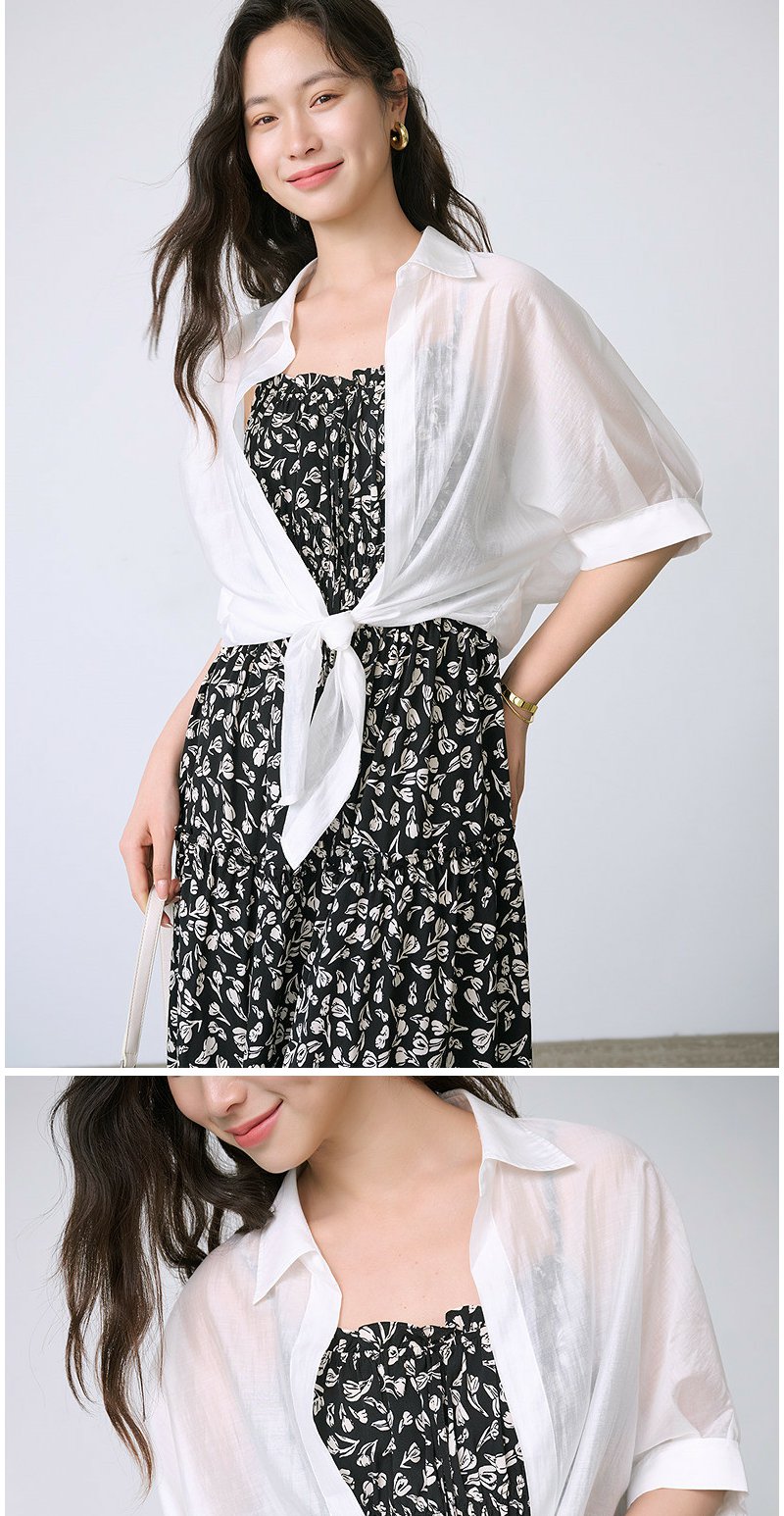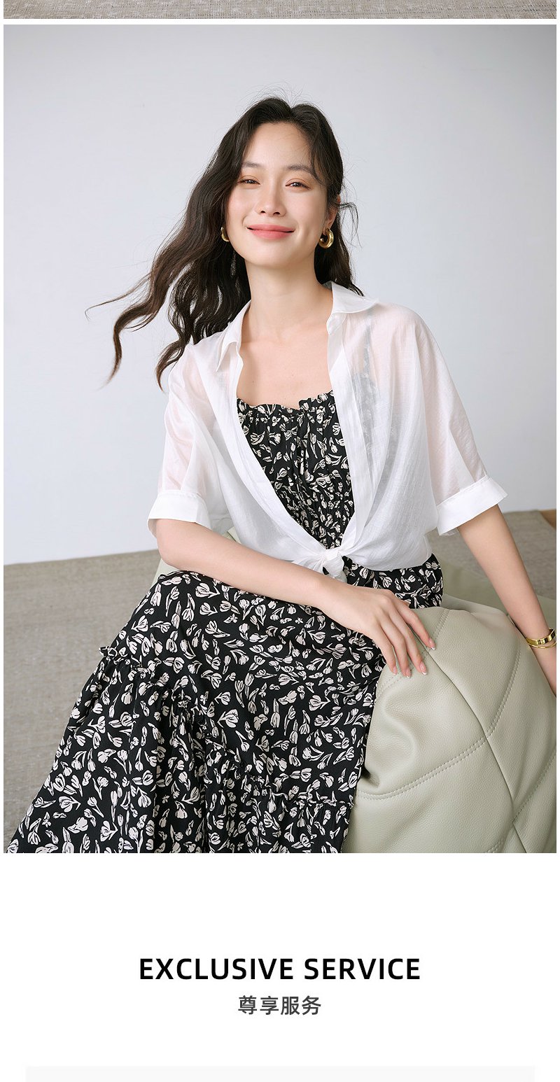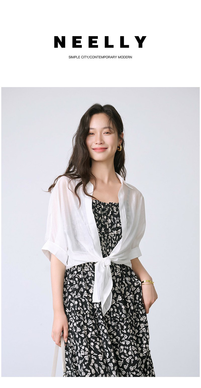 NEELLY纳俪商场同款夏季新款宽松设计感五分袖休闲衬衫女百搭上衣N26044B04420