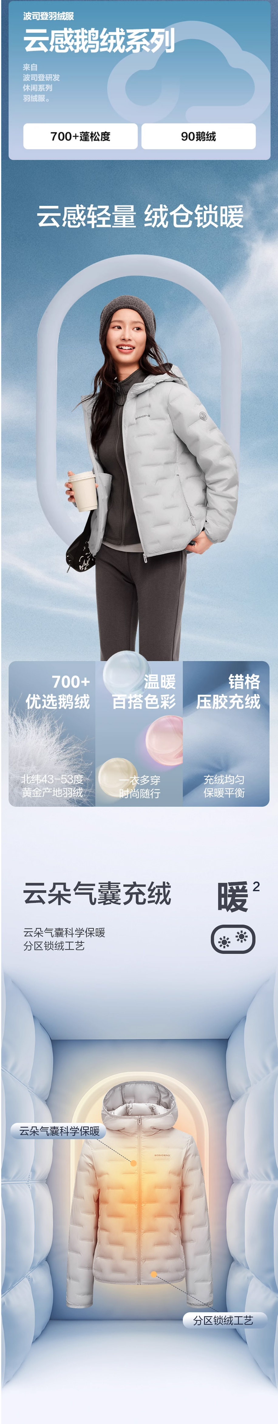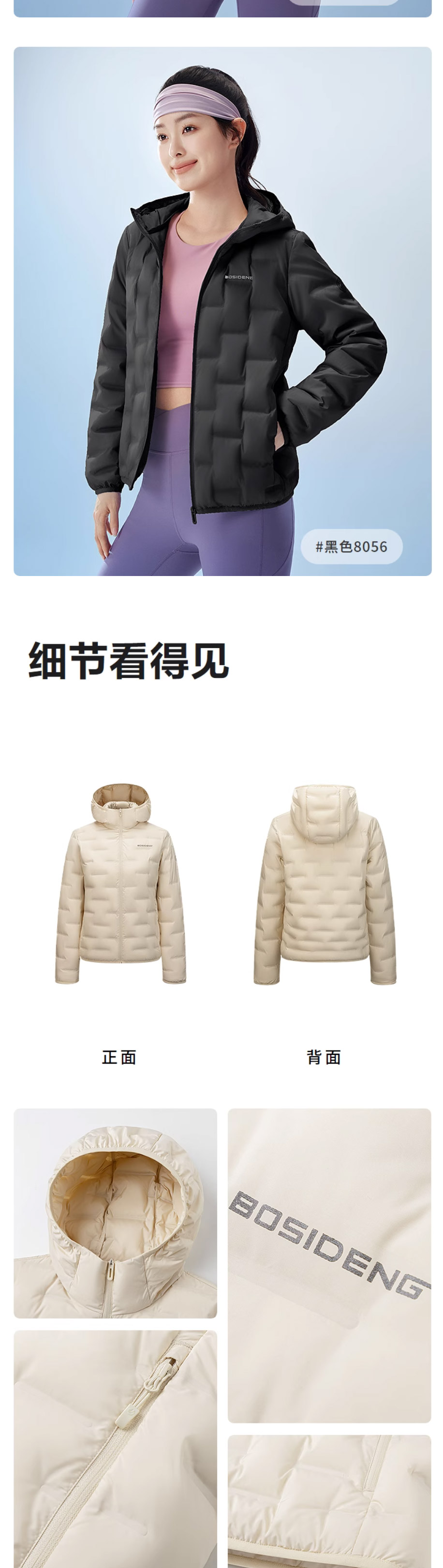 波司登羽绒服女2025秋冬新款轻薄鹅绒修身短款连帽外套B250131036