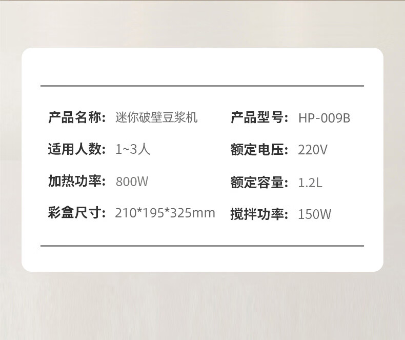 海牌豆浆机_家用破壁机全自动清洗免煮免过滤HP-009B【K】