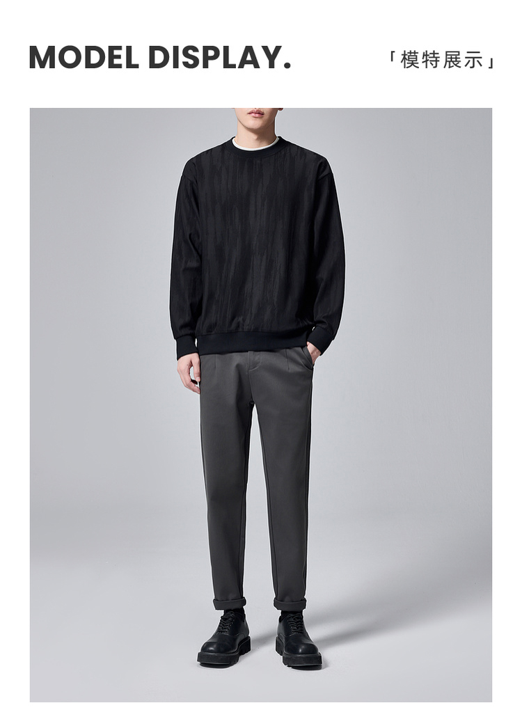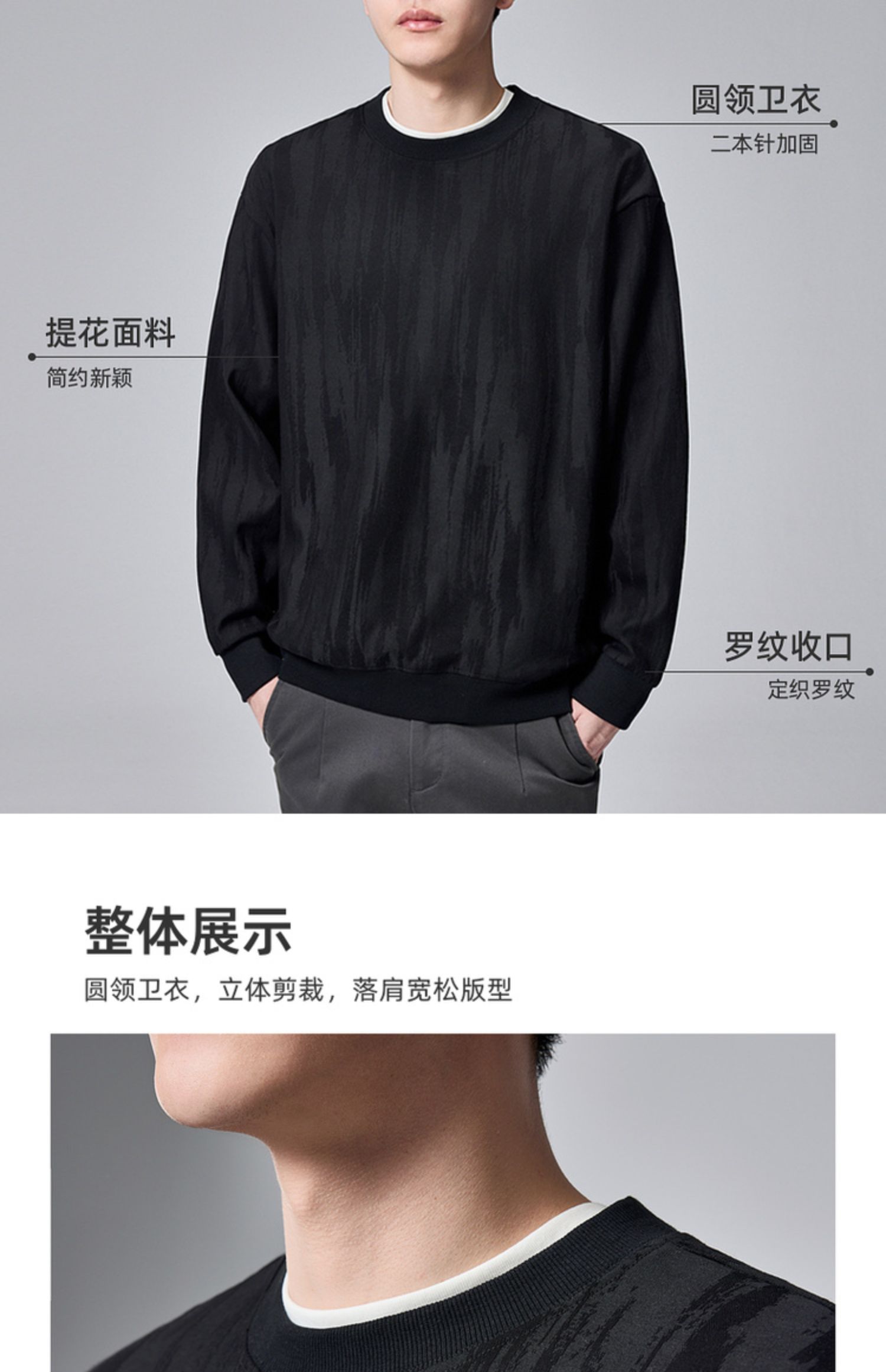 墨麦客男装2025年春季新款男士圆领卫衣男士提花套头上衣