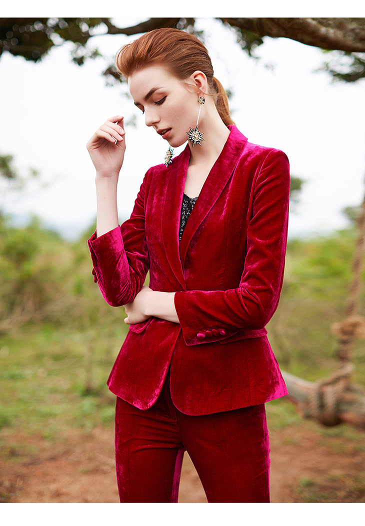 IWY/红色职业装气质女神范小西装西服套装女微喇裤长裤CP9317