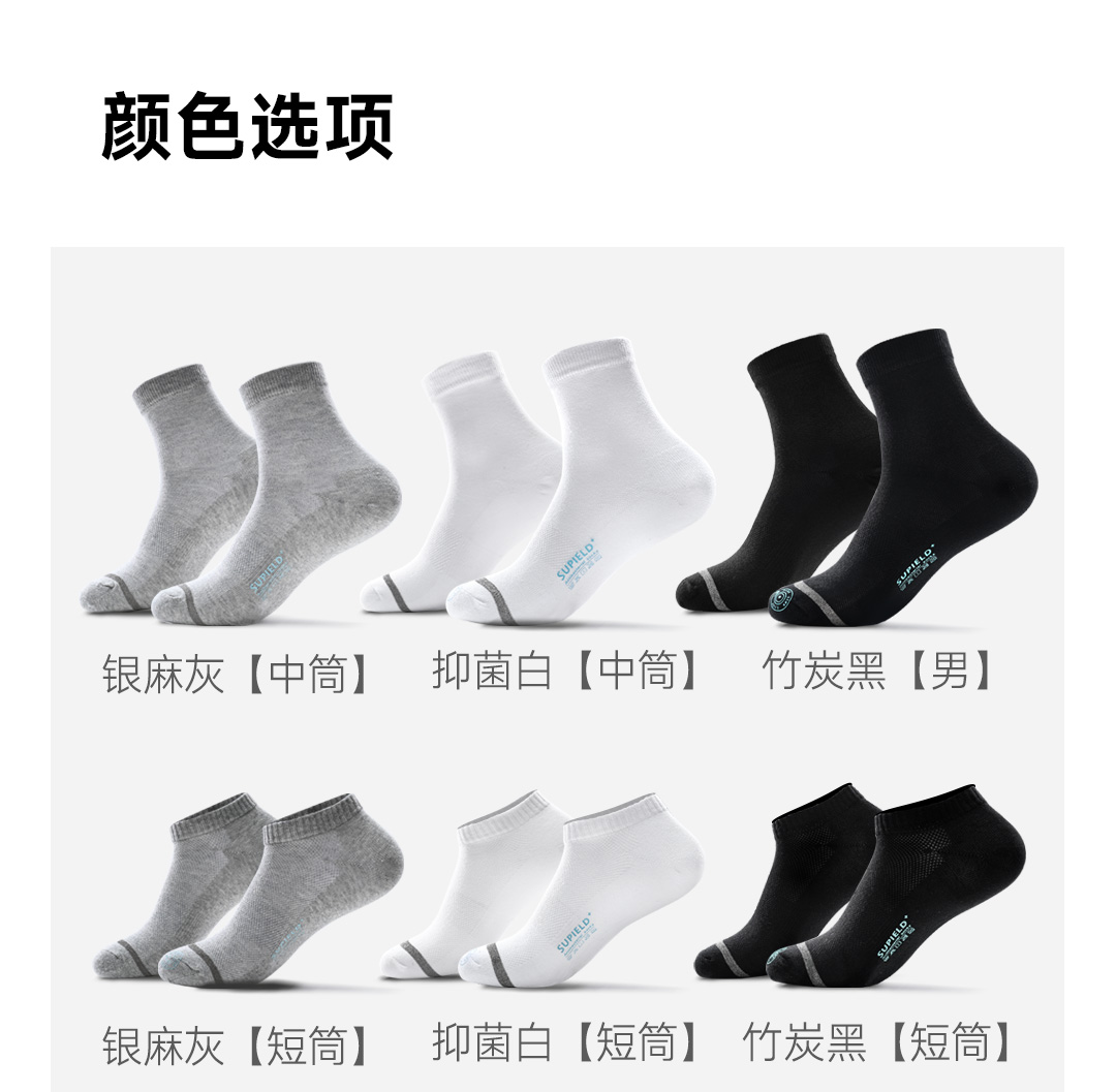 3双装Supield真银纤维袜7A抗菌真银丝透气棉袜高弹男女短袜中筒袜