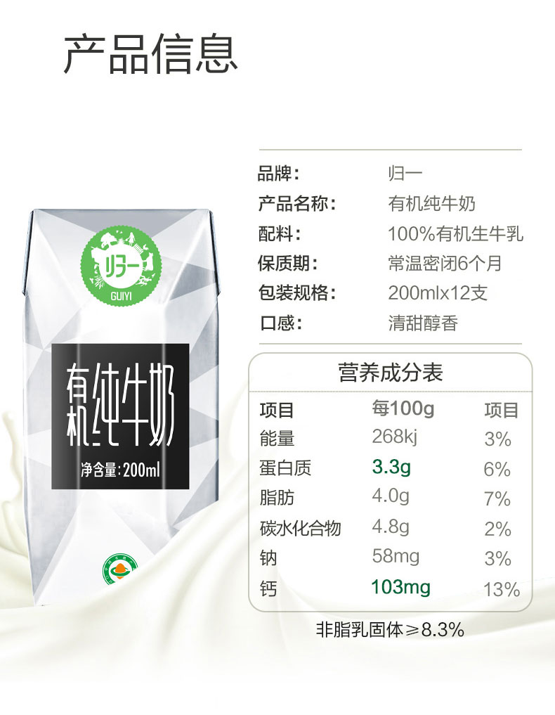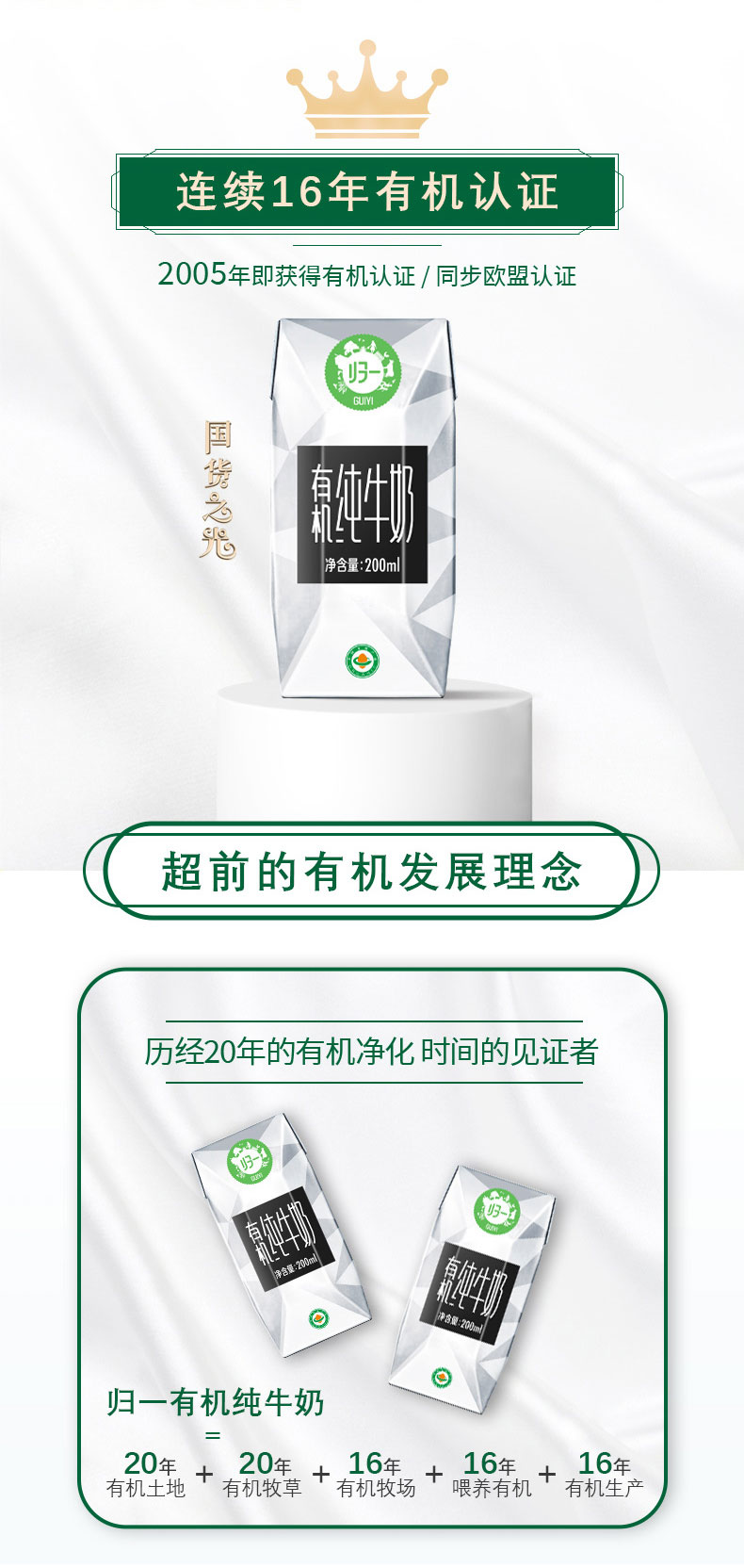 归一有机纯牛奶 (钻石系列)200ml*12盒*2提