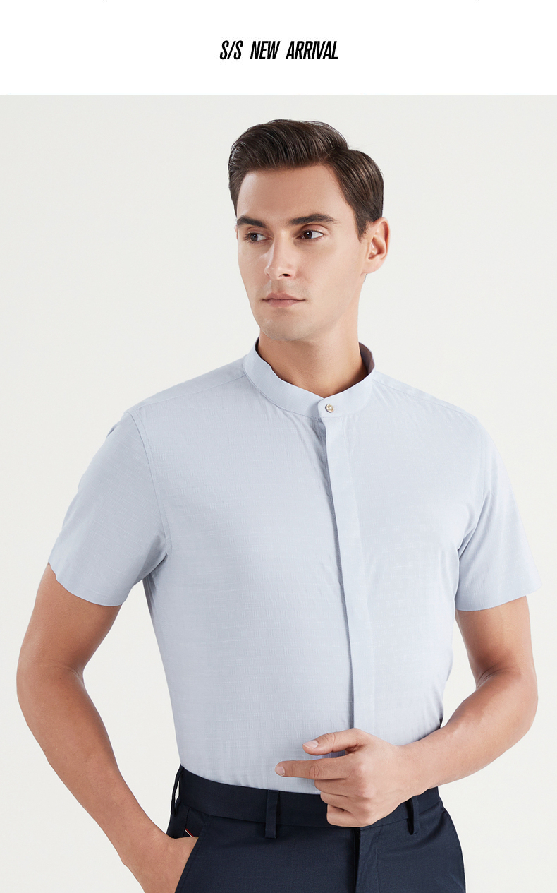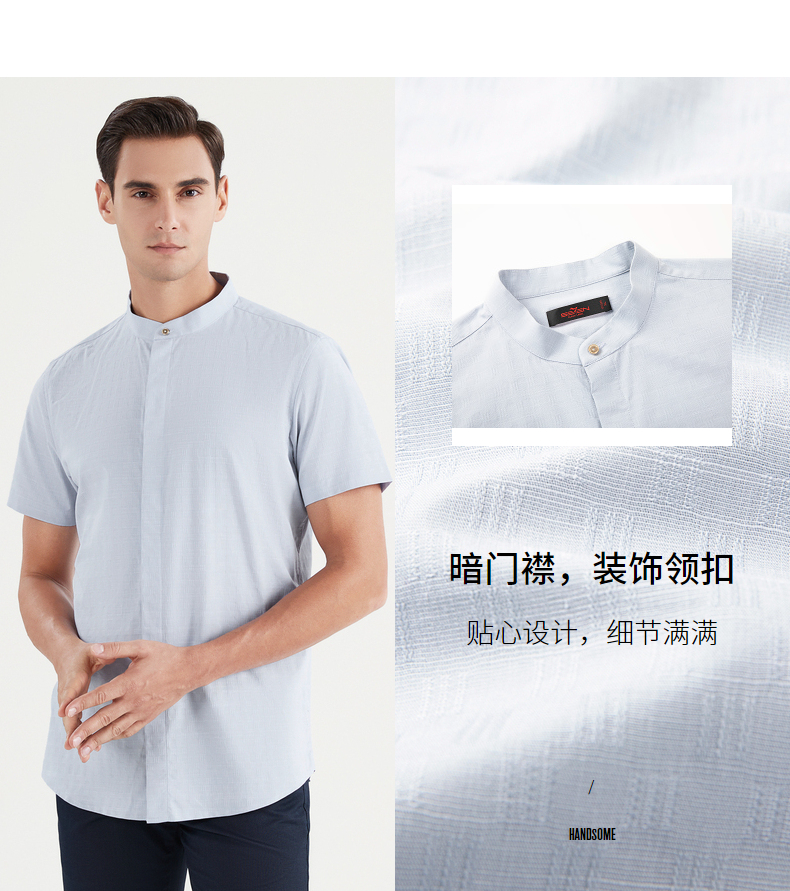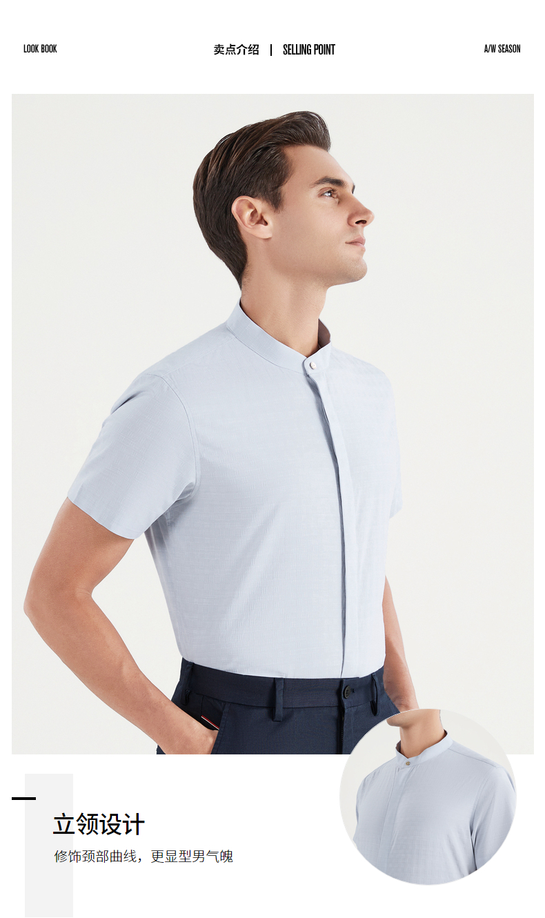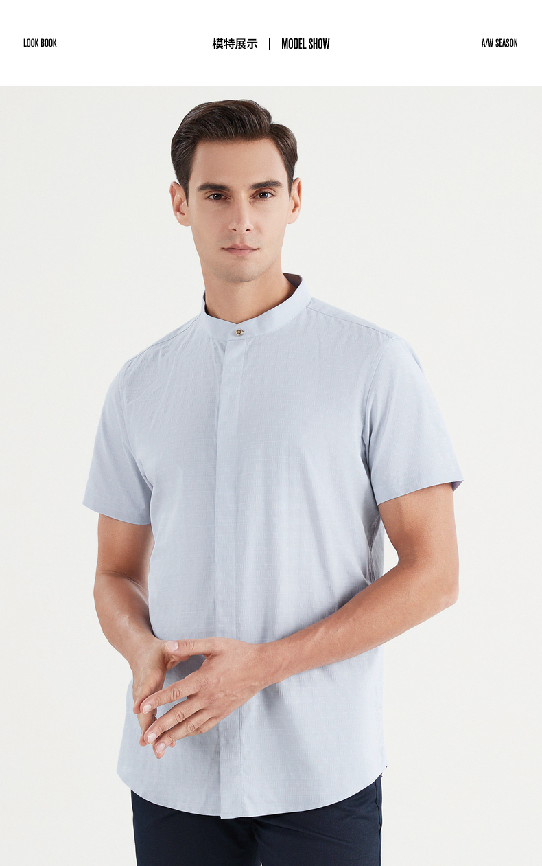 【特价】柒牌衬衣短袖男年夏季新款时尚休闲提花立领男装暗门襟衬衫潮 122A70330