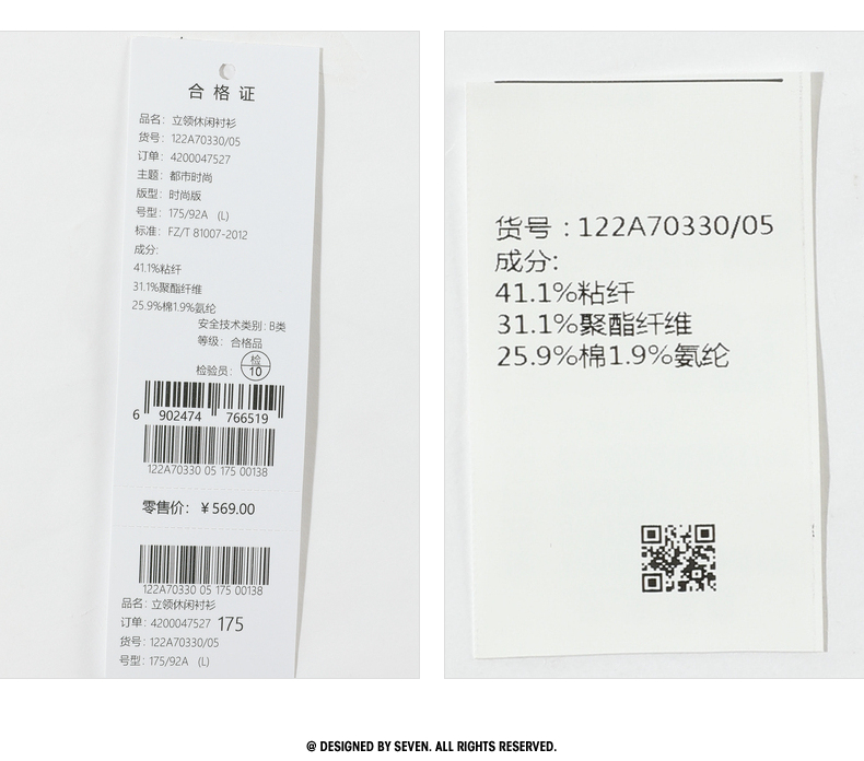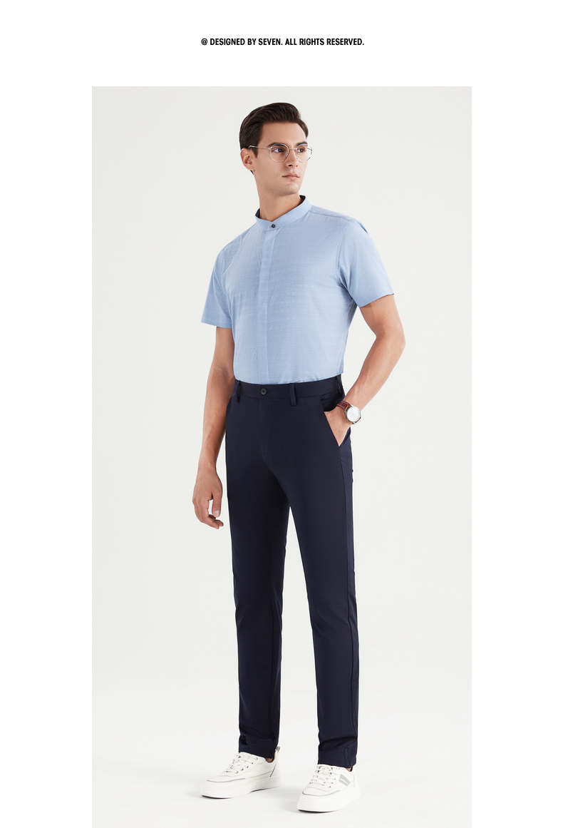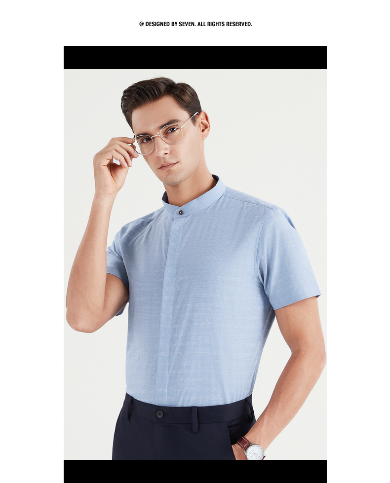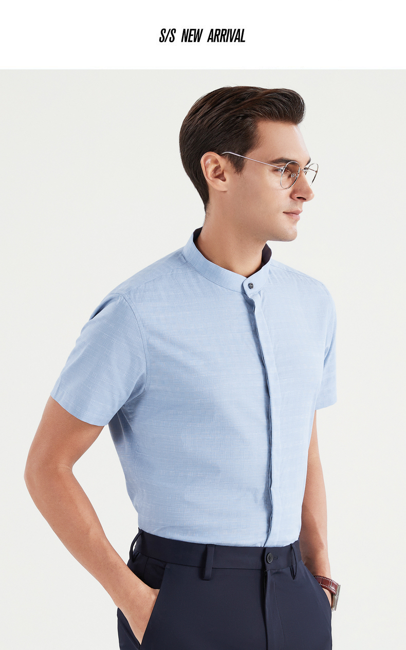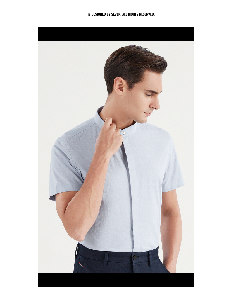 【特价】柒牌衬衣短袖男年夏季新款时尚休闲提花立领男装暗门襟衬衫潮 122A70330