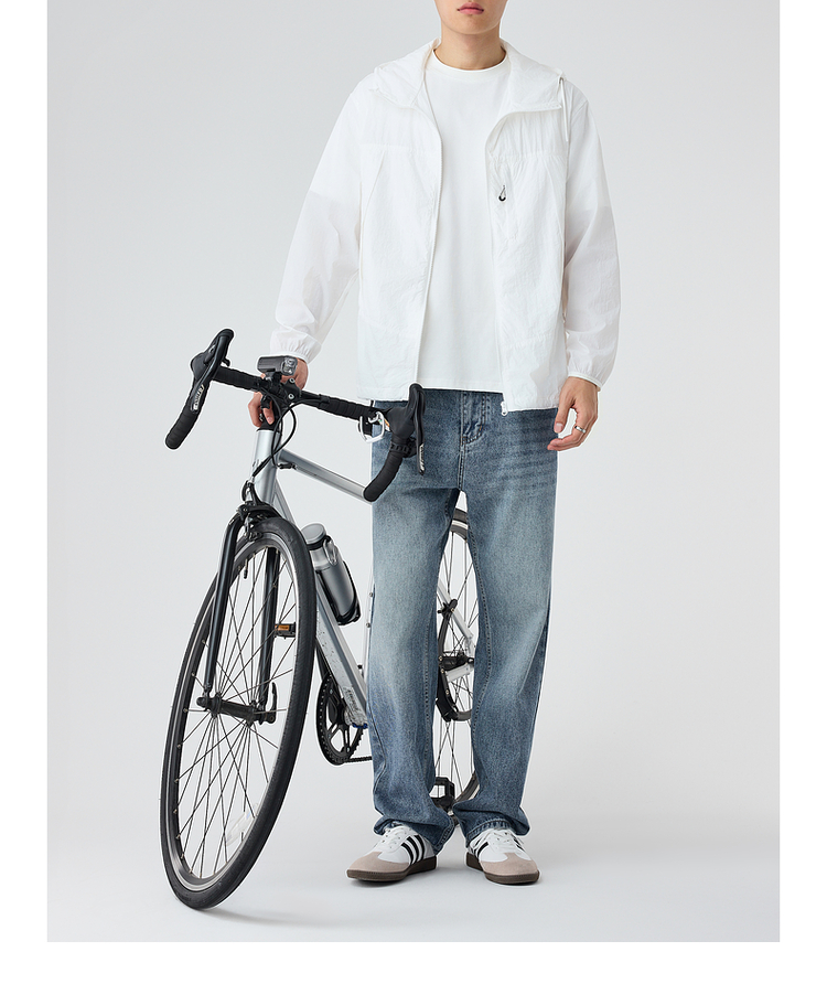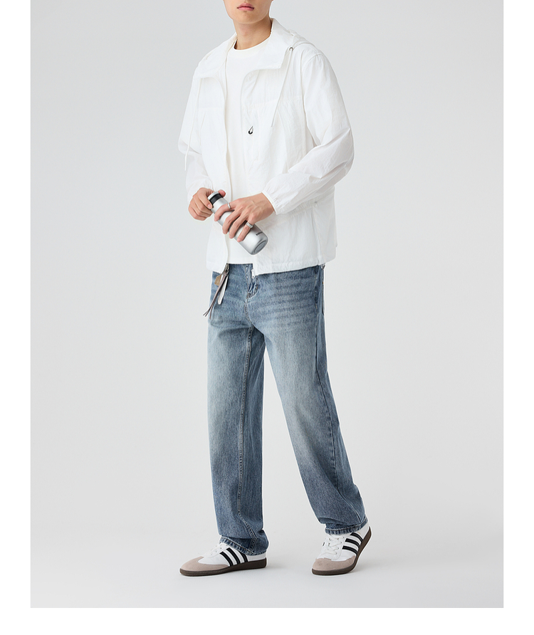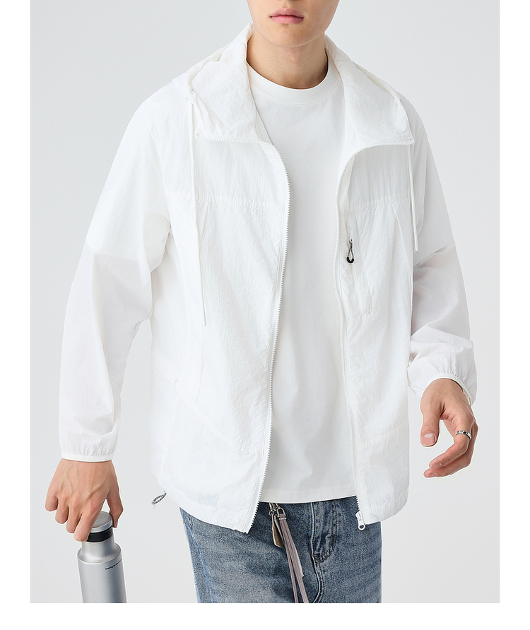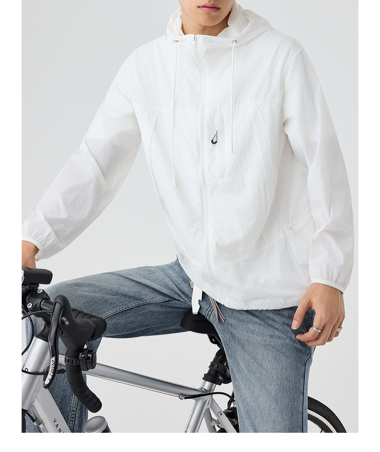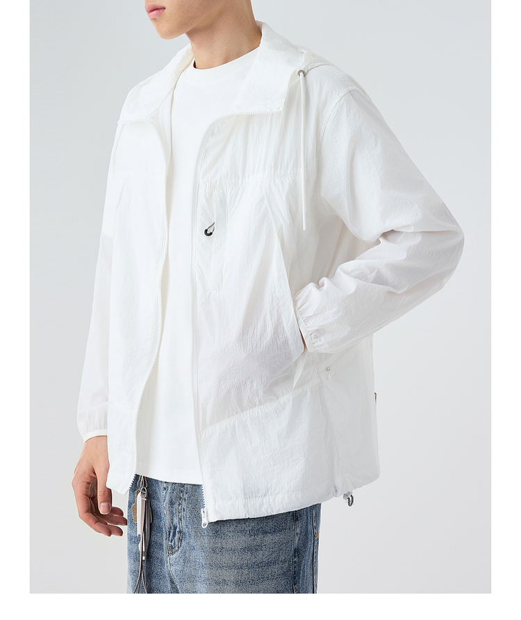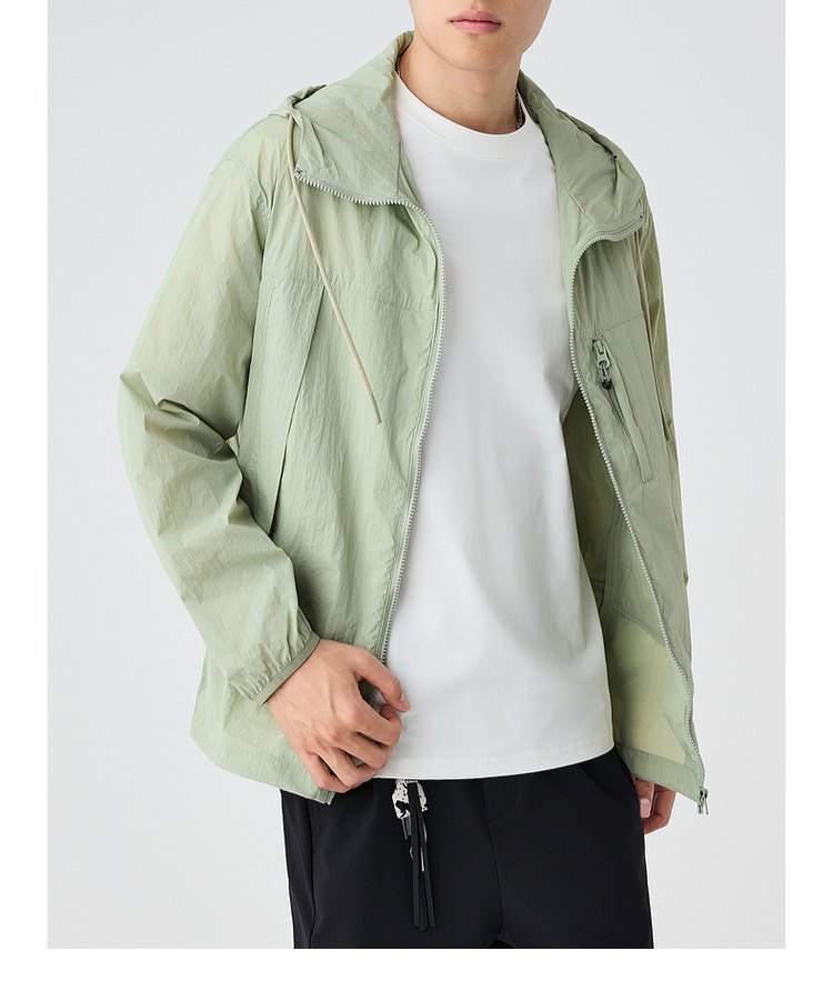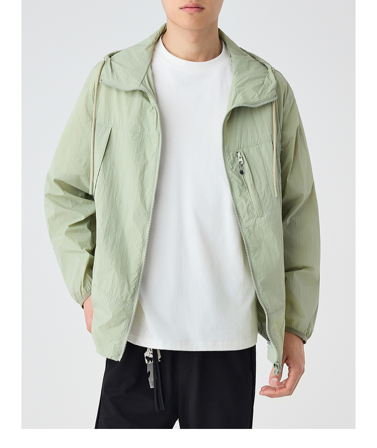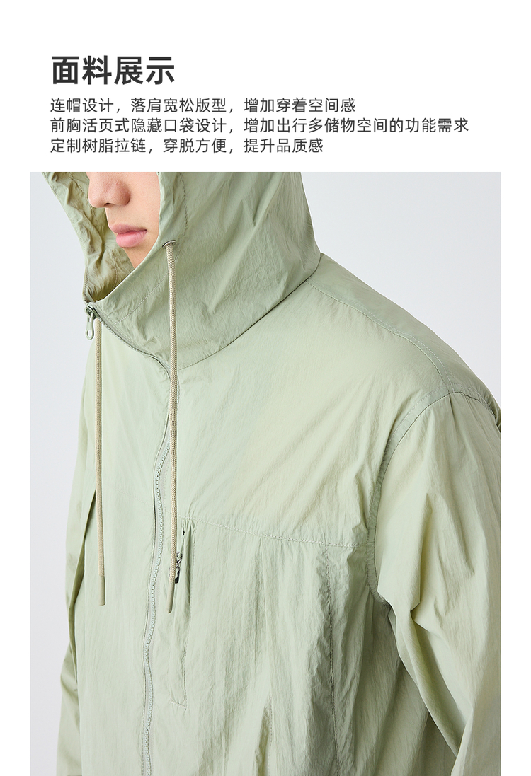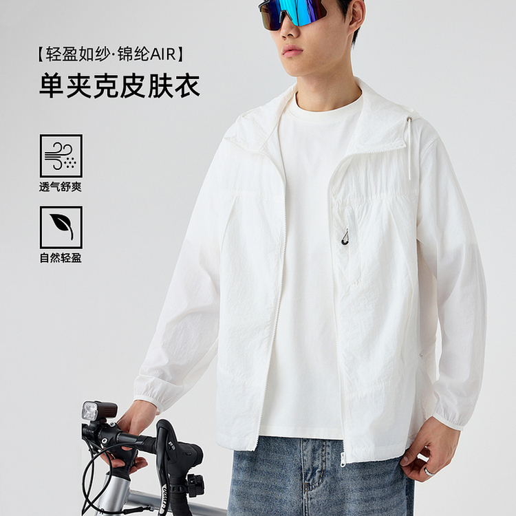 墨麦客连帽轻薄单夹克皮肤衣男士2025夏季新款户外多口袋宽松外套