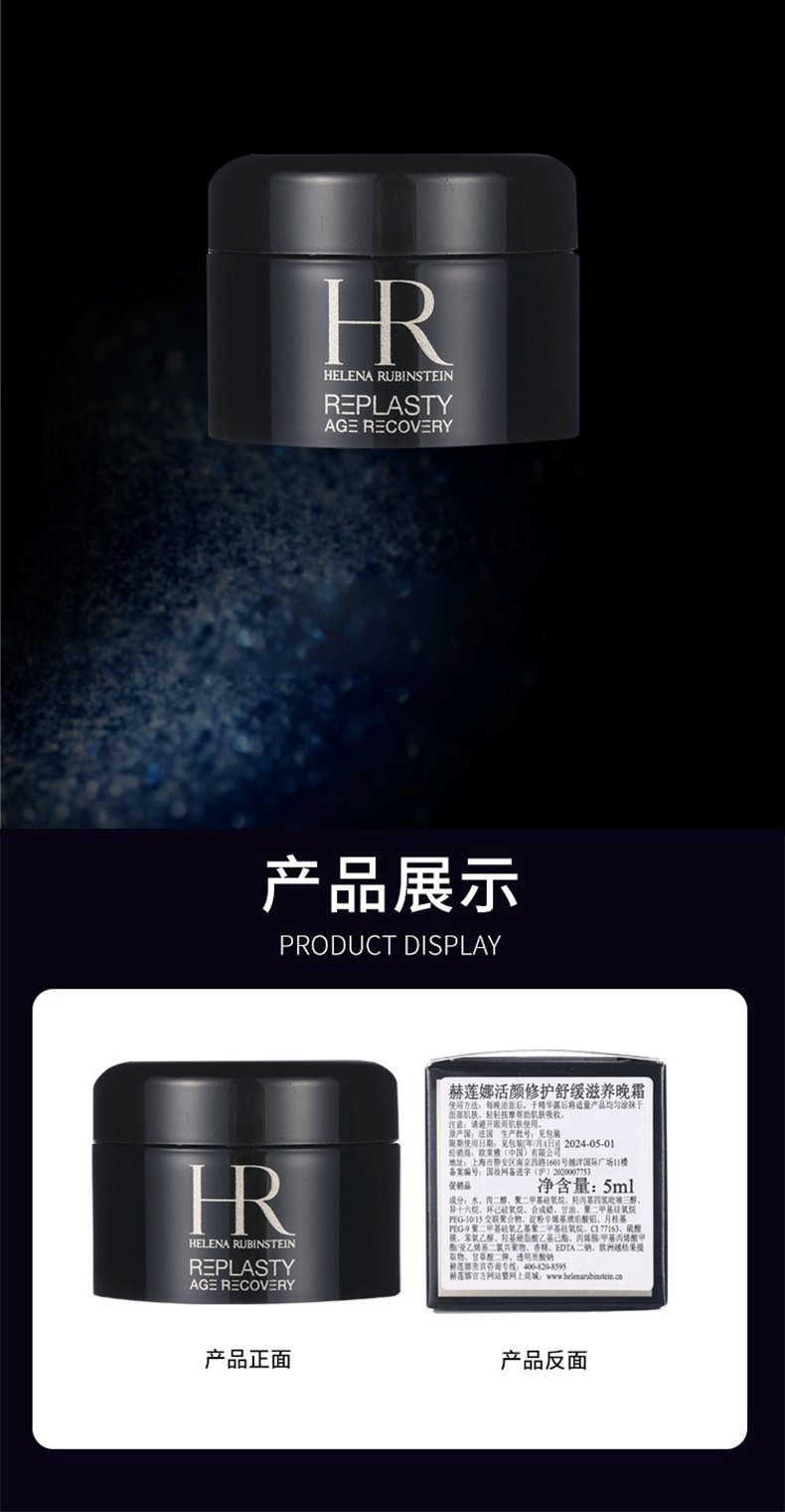【春日焕新】HR赫莲娜 新版黑绷带晚霜中小样5ml*3瓶