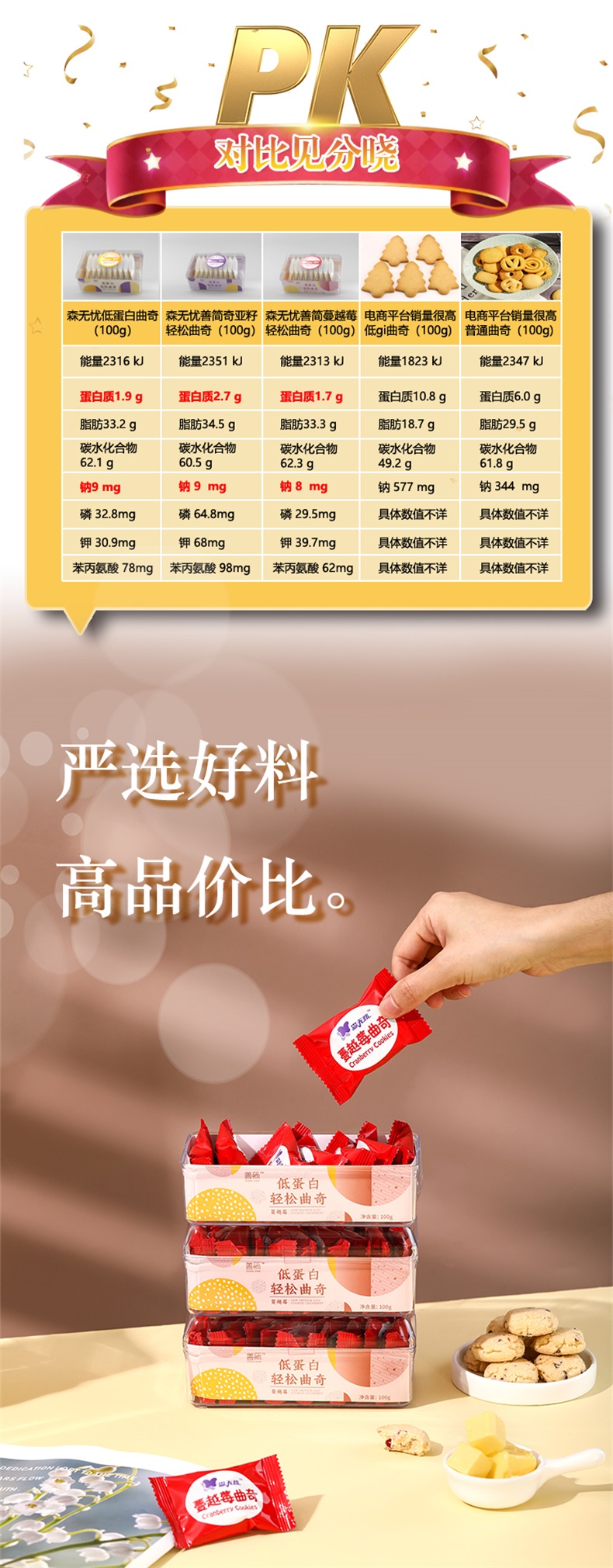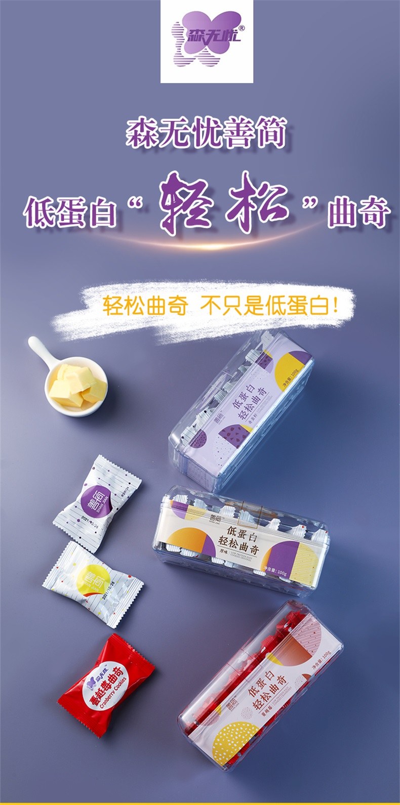 森无忧低蛋白轻松曲奇 100g/盒 原味/奇亚籽/蔓越莓 低盐低蛋白 精致小盒装