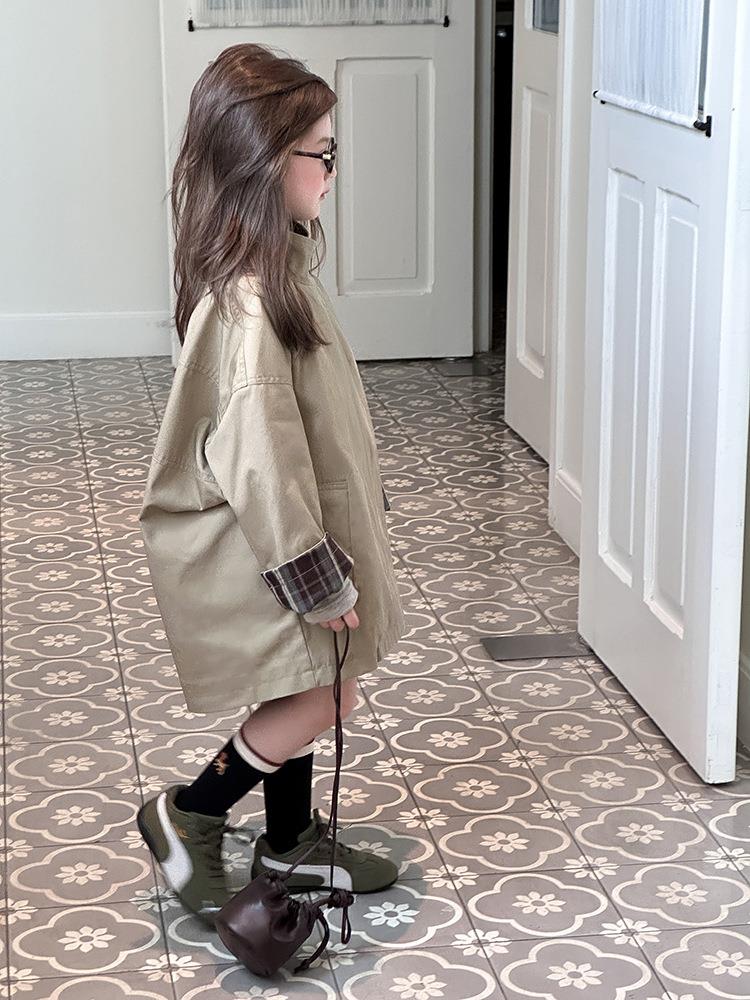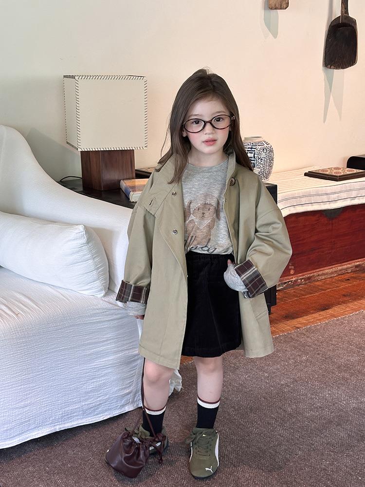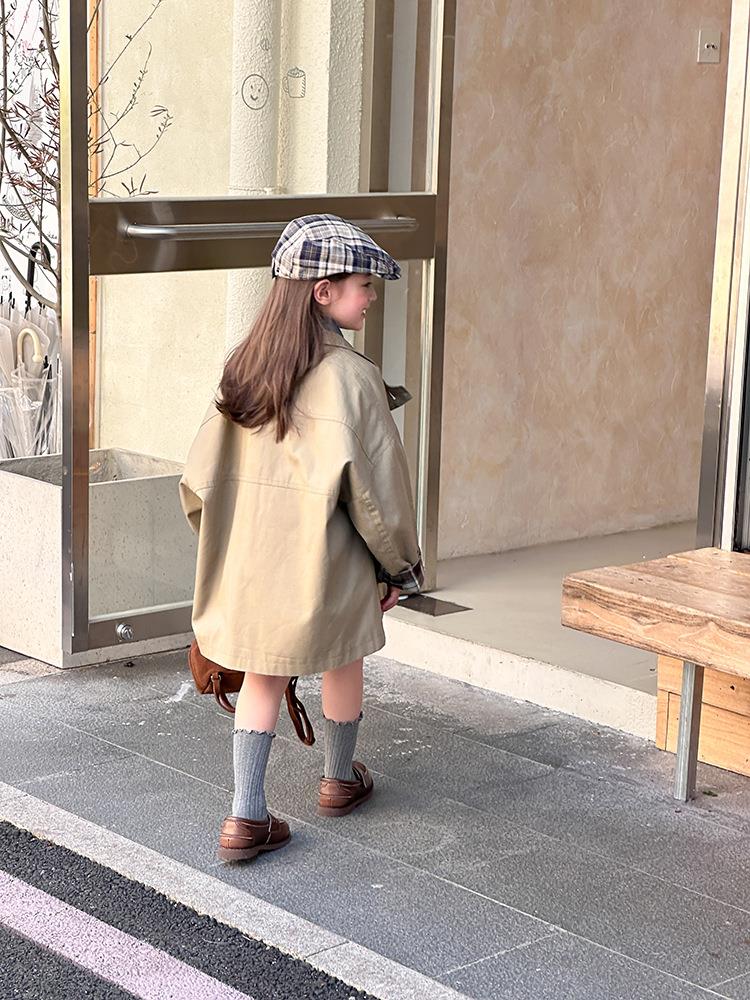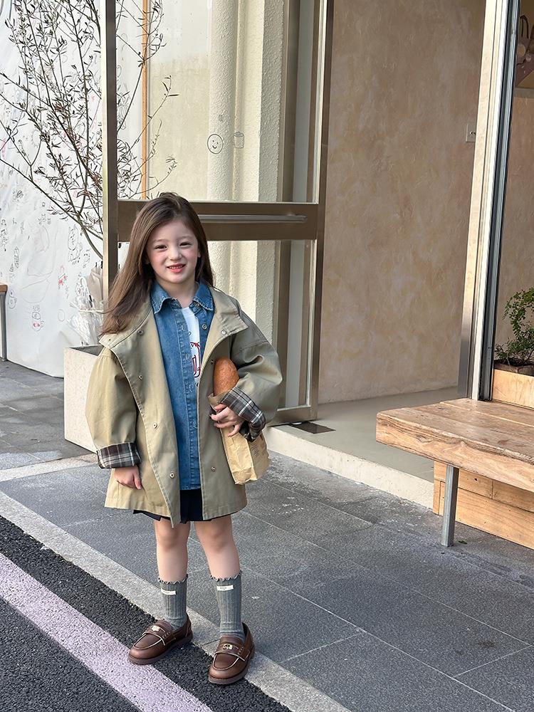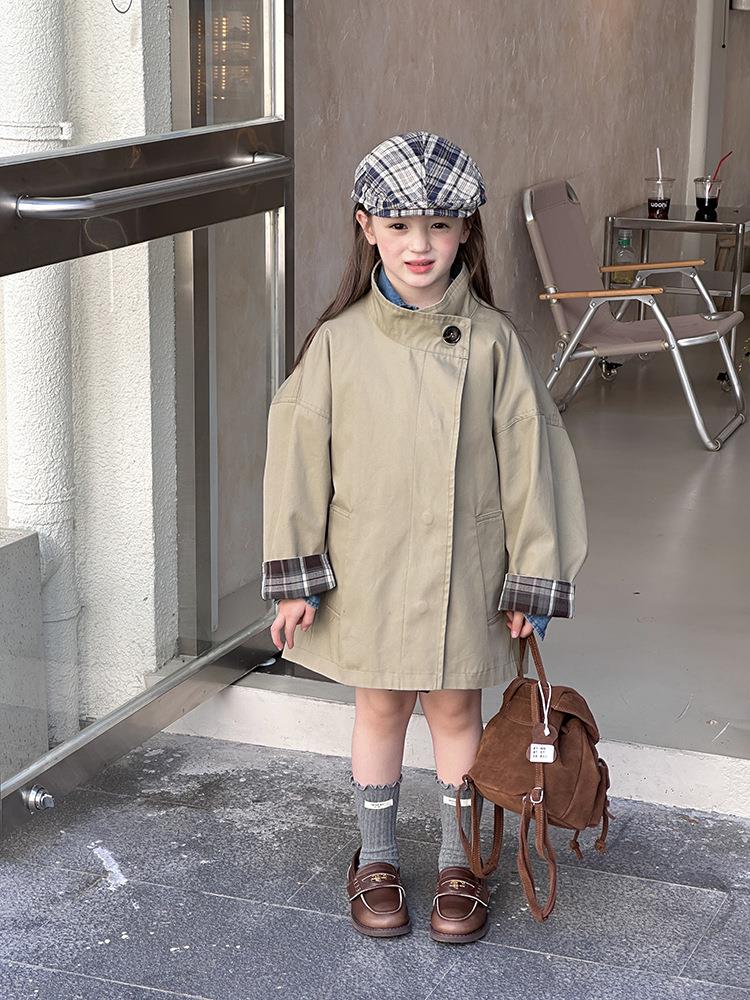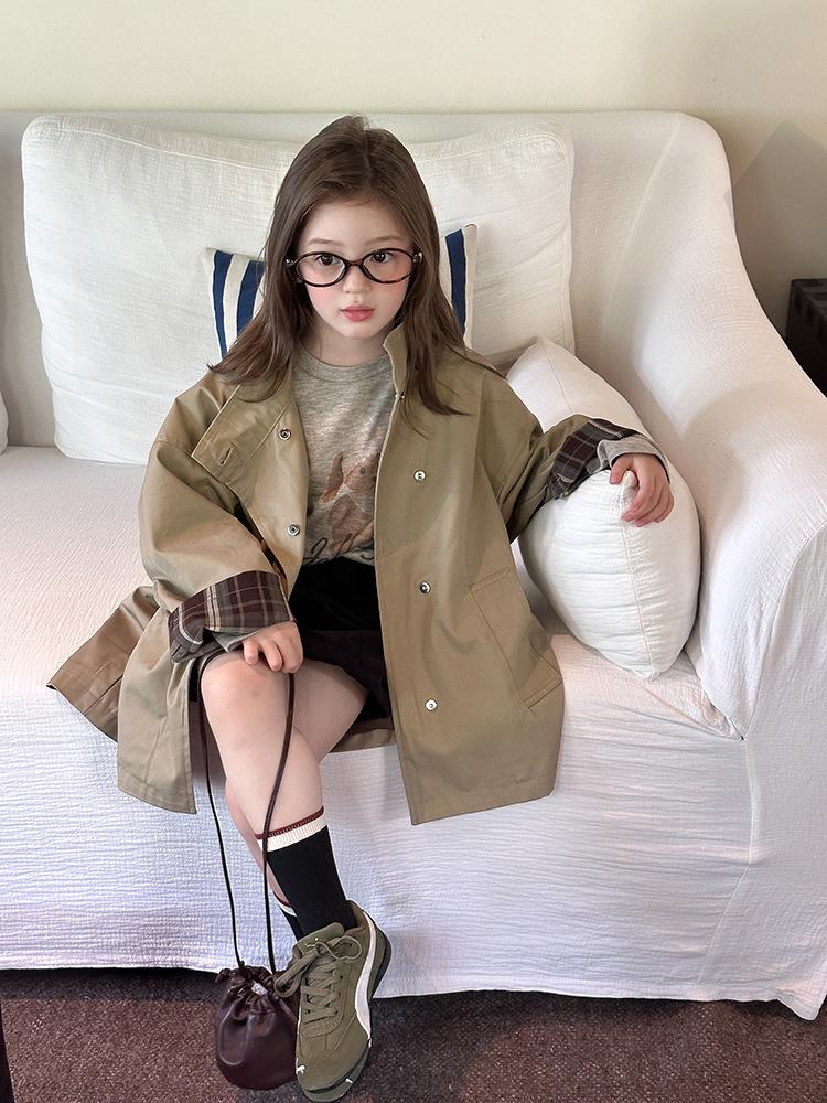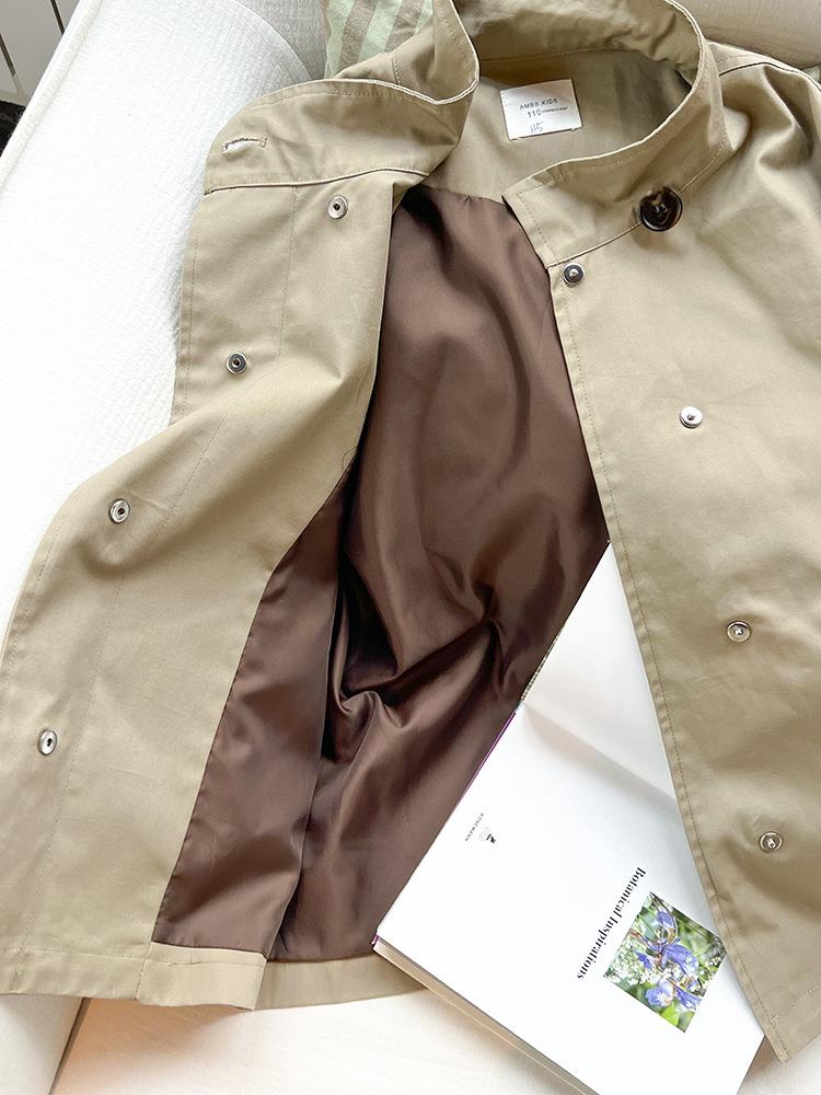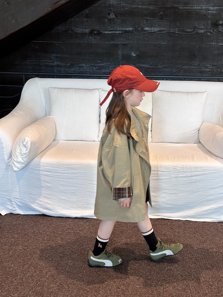 艾摩贝贝儿童韩版中长款大衣女童高品质高密精梳竹节斜棉风衣外套