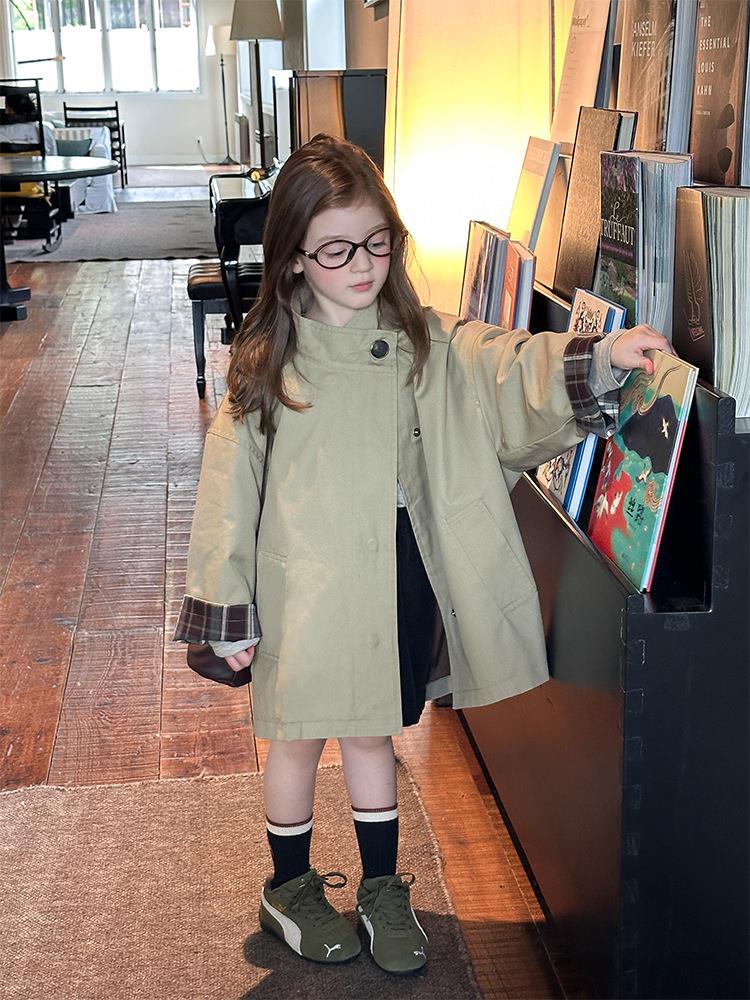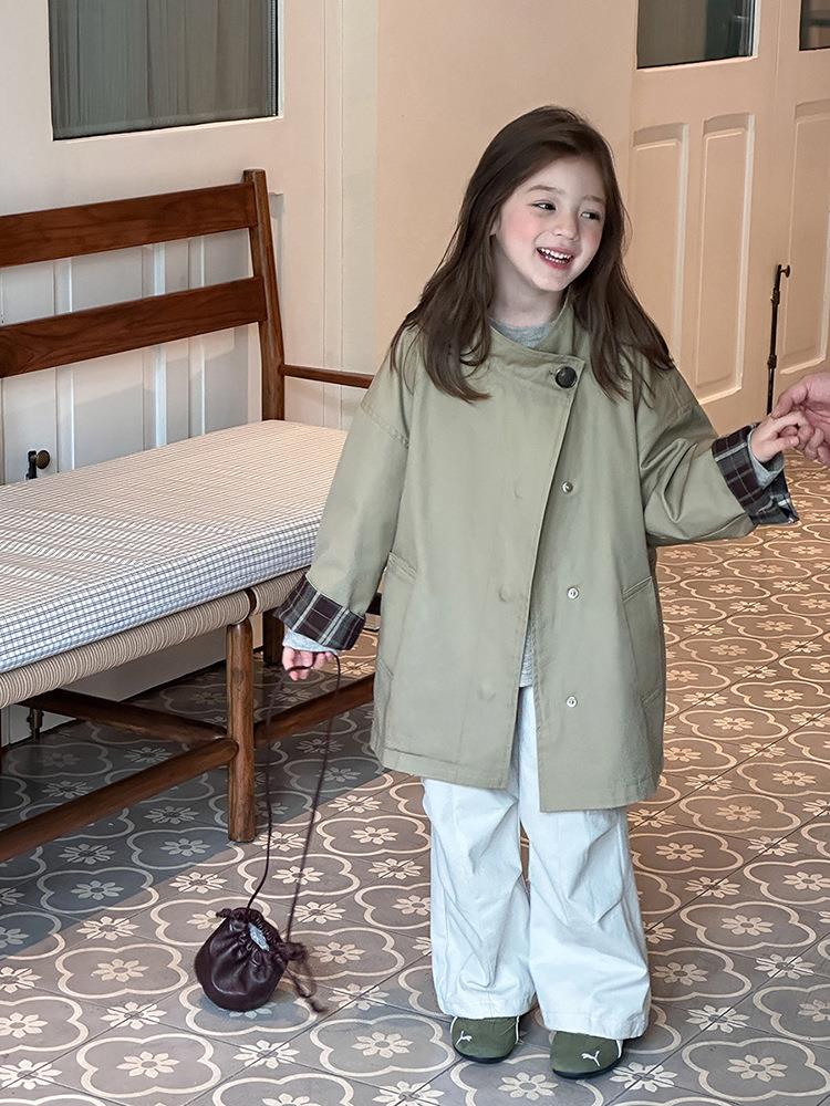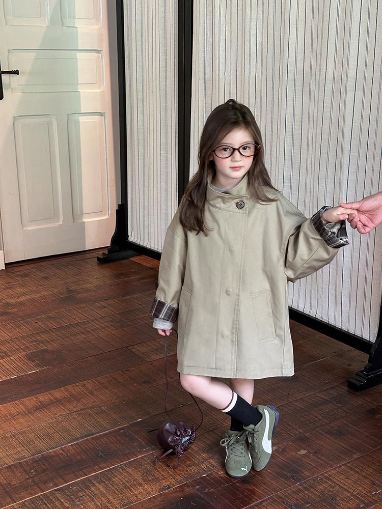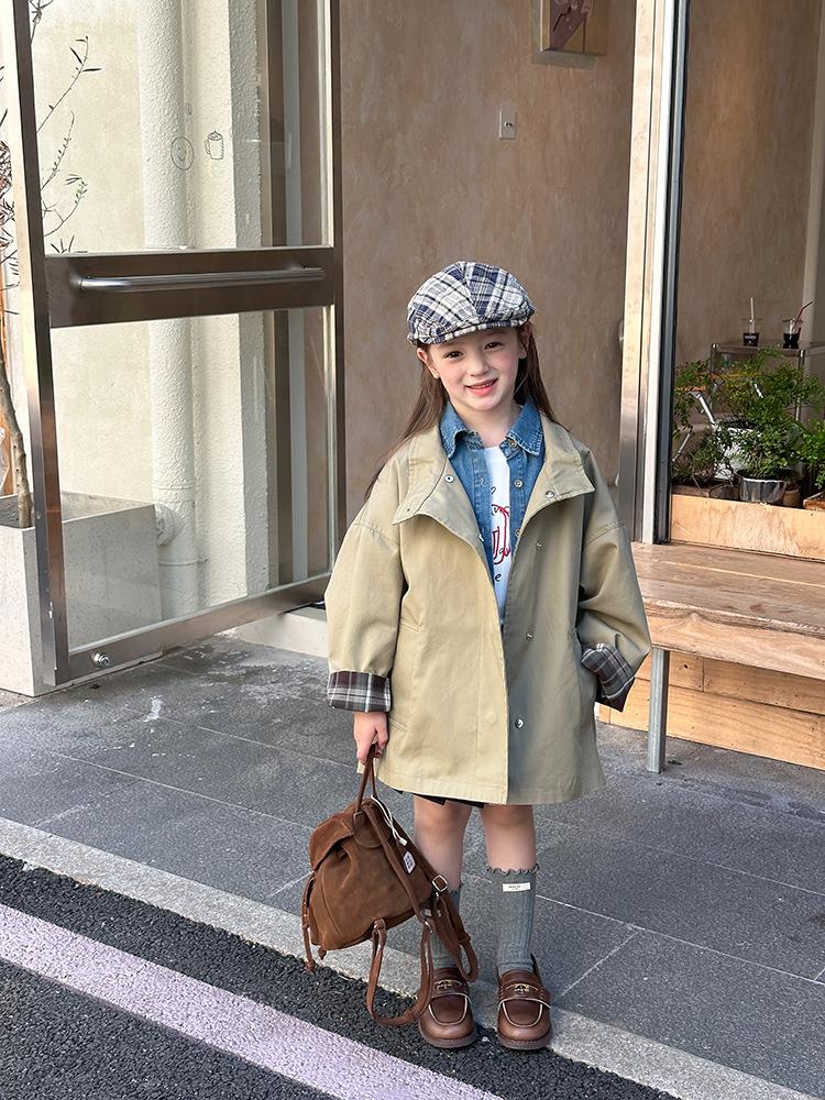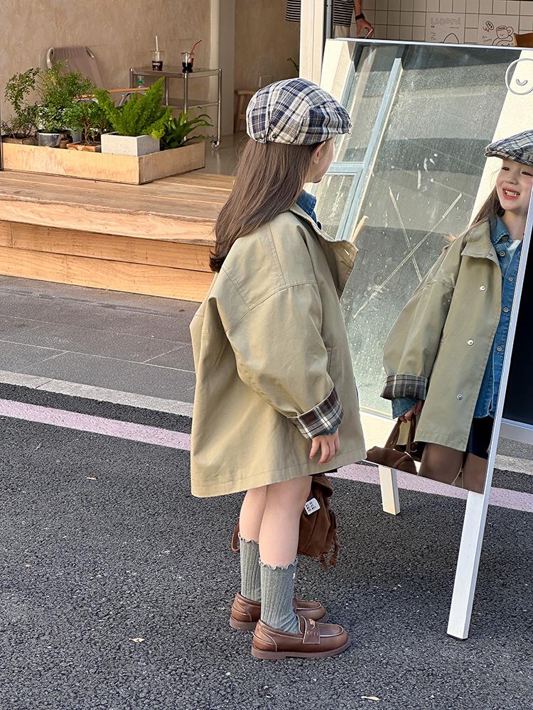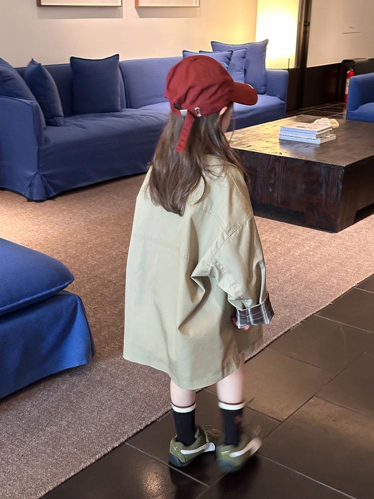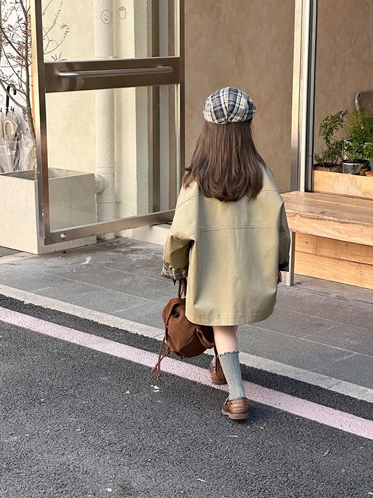 艾摩贝贝儿童韩版中长款大衣女童高品质高密精梳竹节斜棉风衣外套