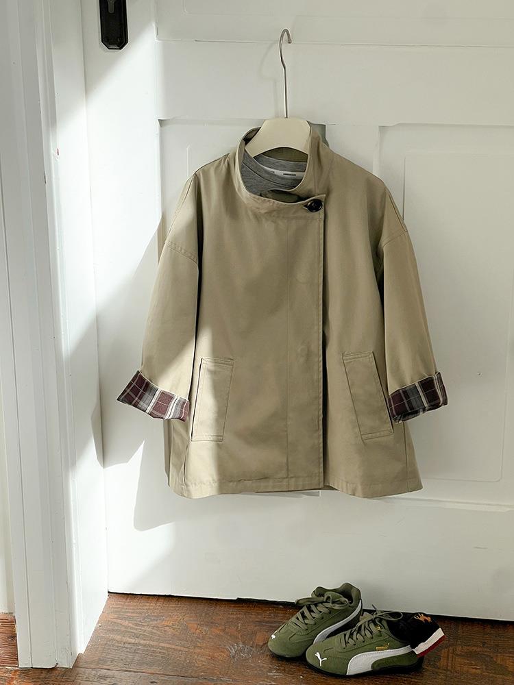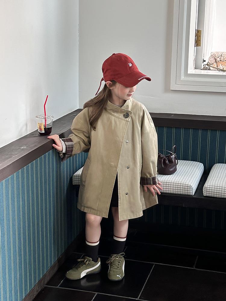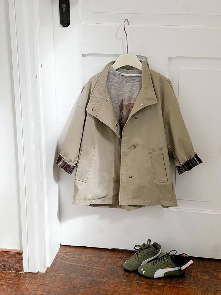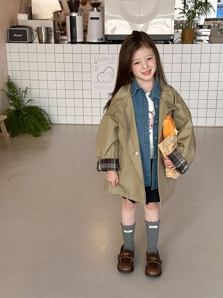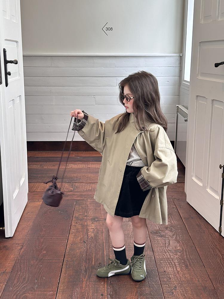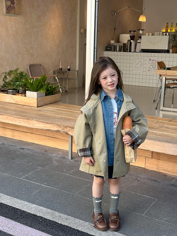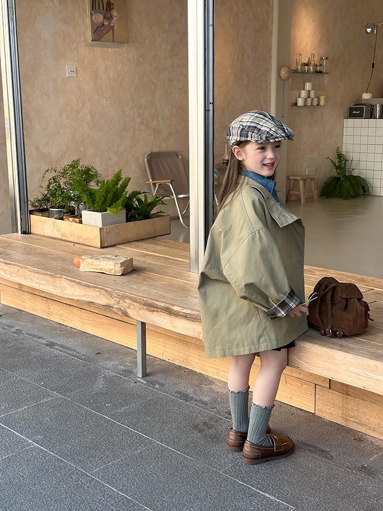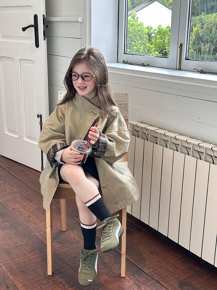 艾摩贝贝儿童韩版中长款大衣女童高品质高密精梳竹节斜棉风衣外套