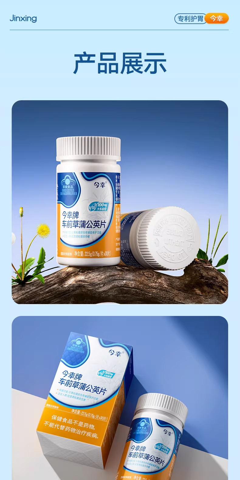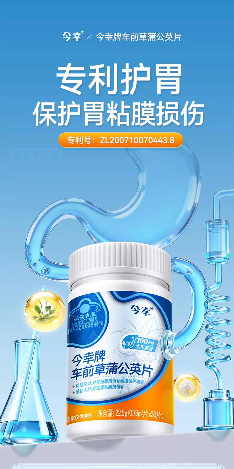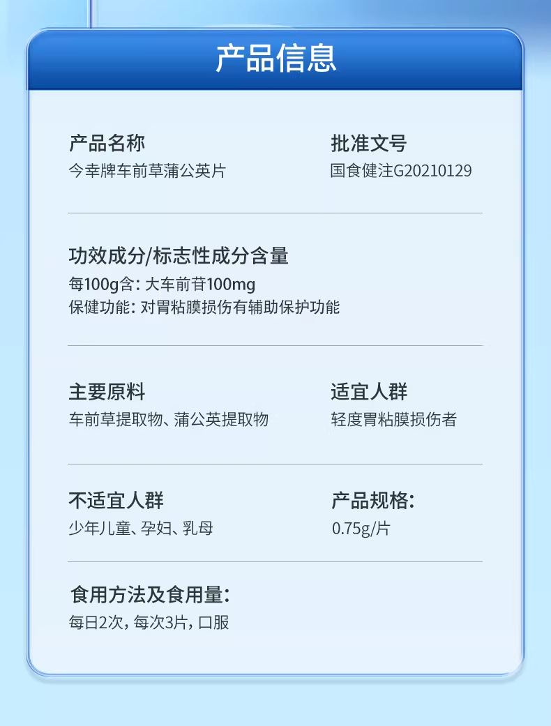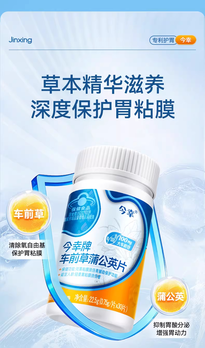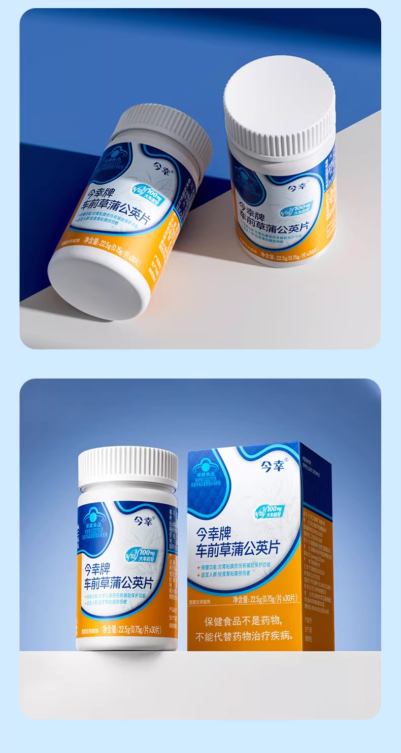 今幸牌 车前草蒲公英片 专利护胃 保护胃粘膜损伤 0.75g/片*30片/瓶