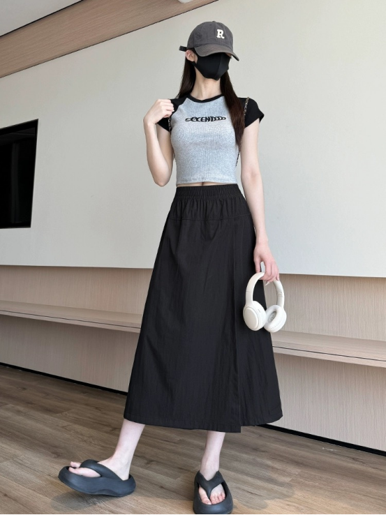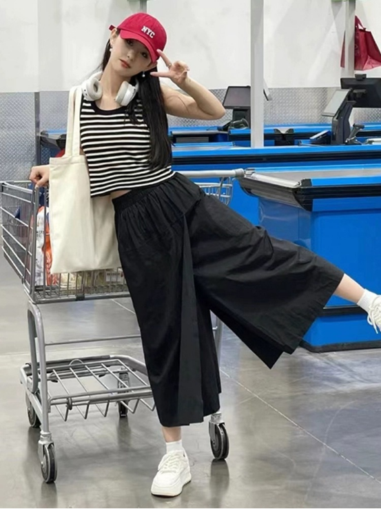 一条很特别的半身裙 看似是一条裙子实则裙片底下是一条阔腿裤子! 这个设计就很有趣既有随意清凉的感觉 又更实穿,不用穿打底安全裤也没有走光的风险!