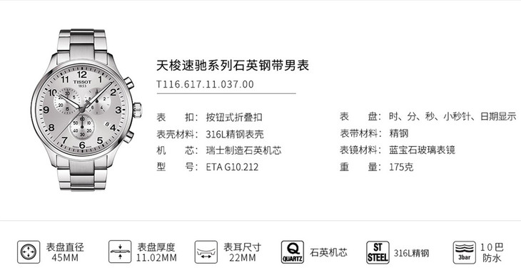 | 品牌 | 天梭 TISSOT | 型号 | T116.617.11.037.00 |