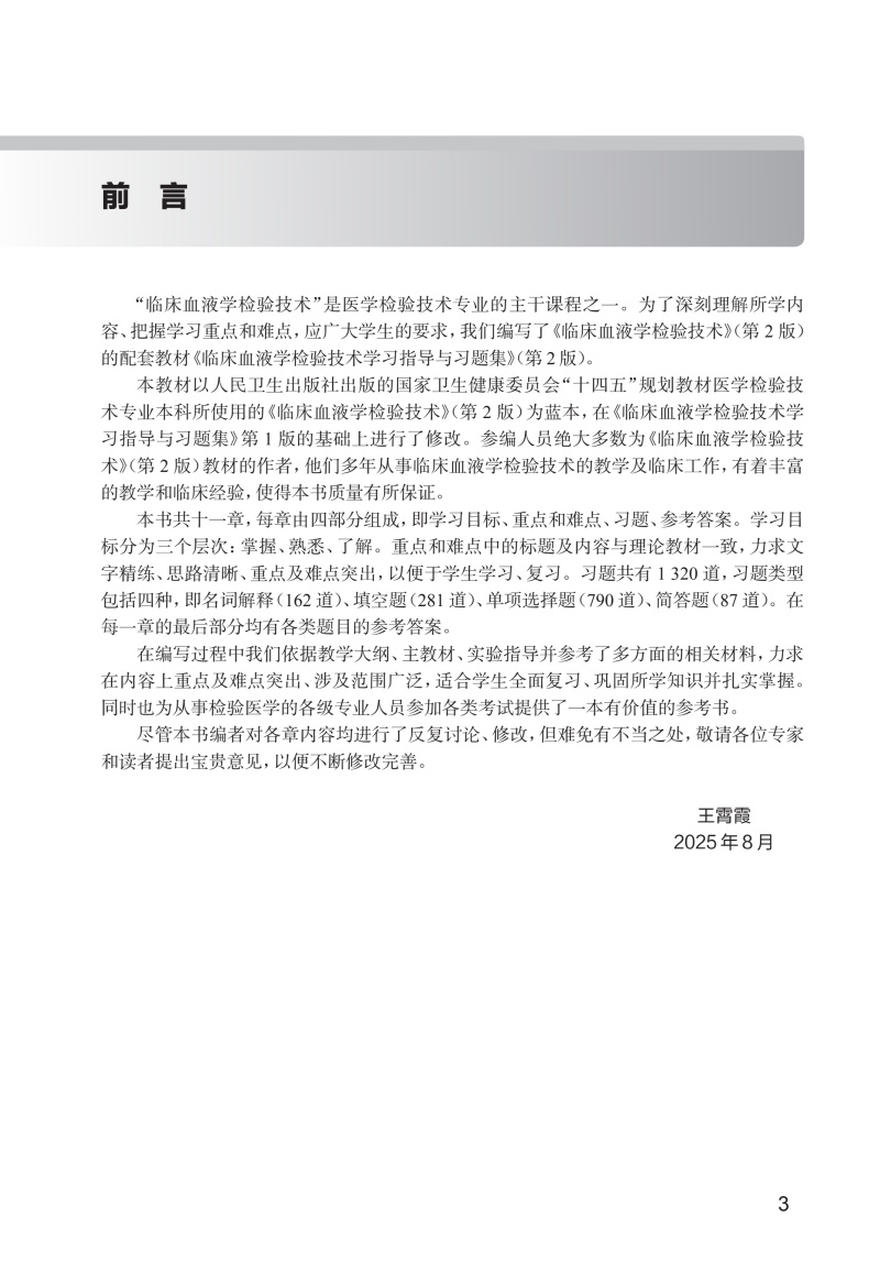 临床血液学检验技术学习指导与习题集 第2二版 十四五规划教材配套教材全国高等学校配套教材 王霄霞 9787117393652人民卫生出版社