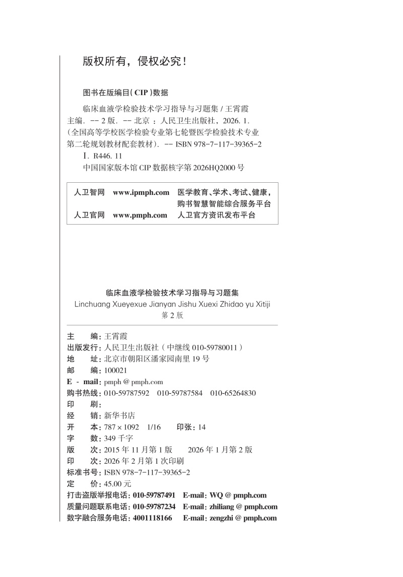 书名:临床血液学检验技术学习指导与习题集(第2版)