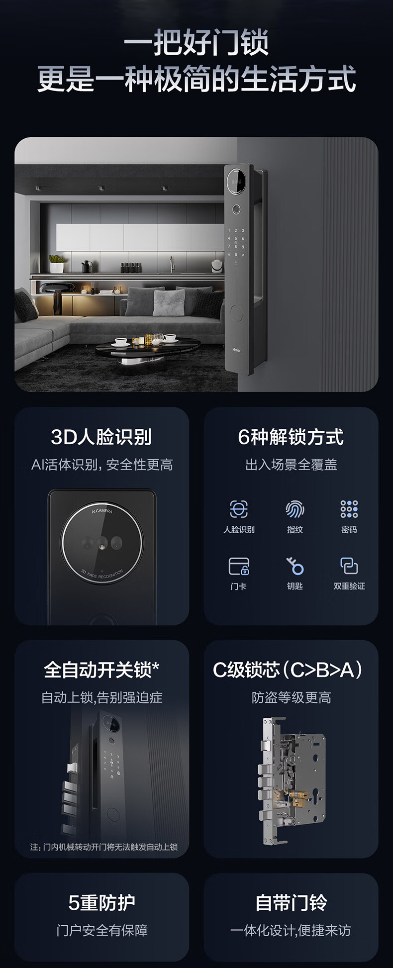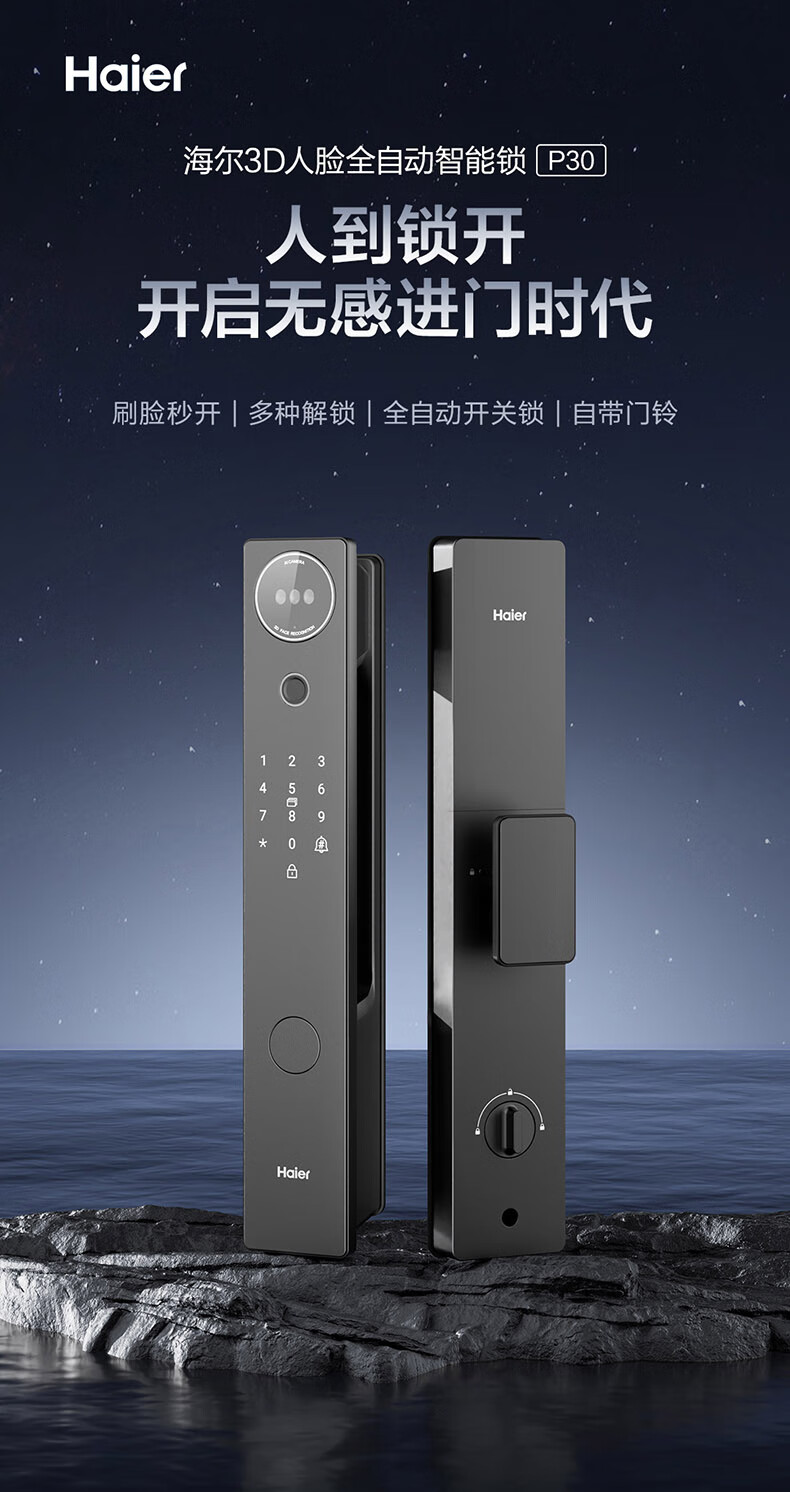 海尔(Haier)智能门锁智能锁指纹锁密码锁入户门电子锁家用防盗门锁 P30【人脸识别款】无需联网