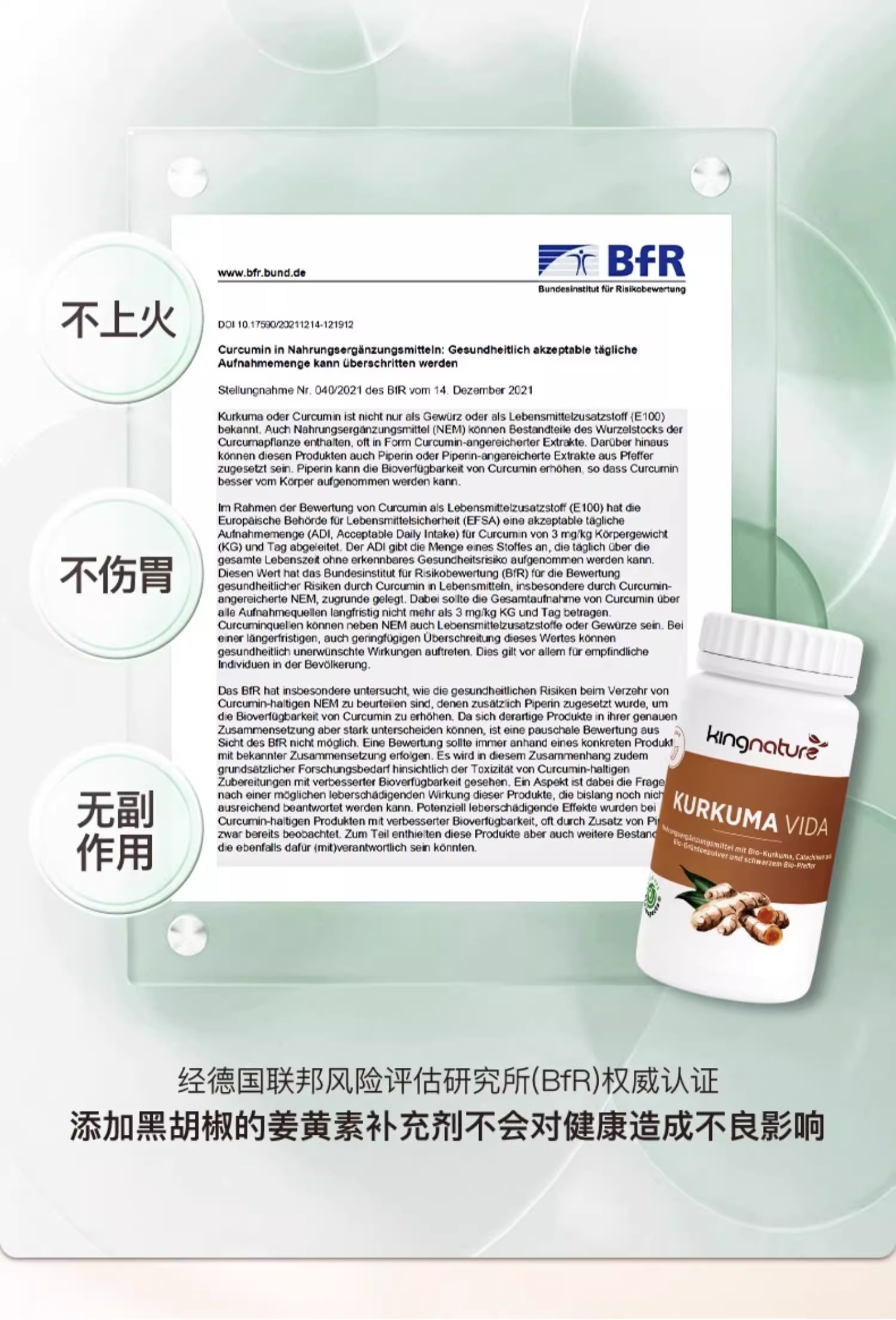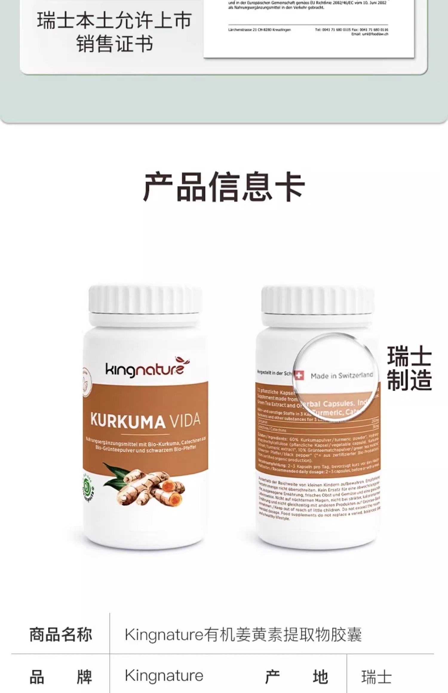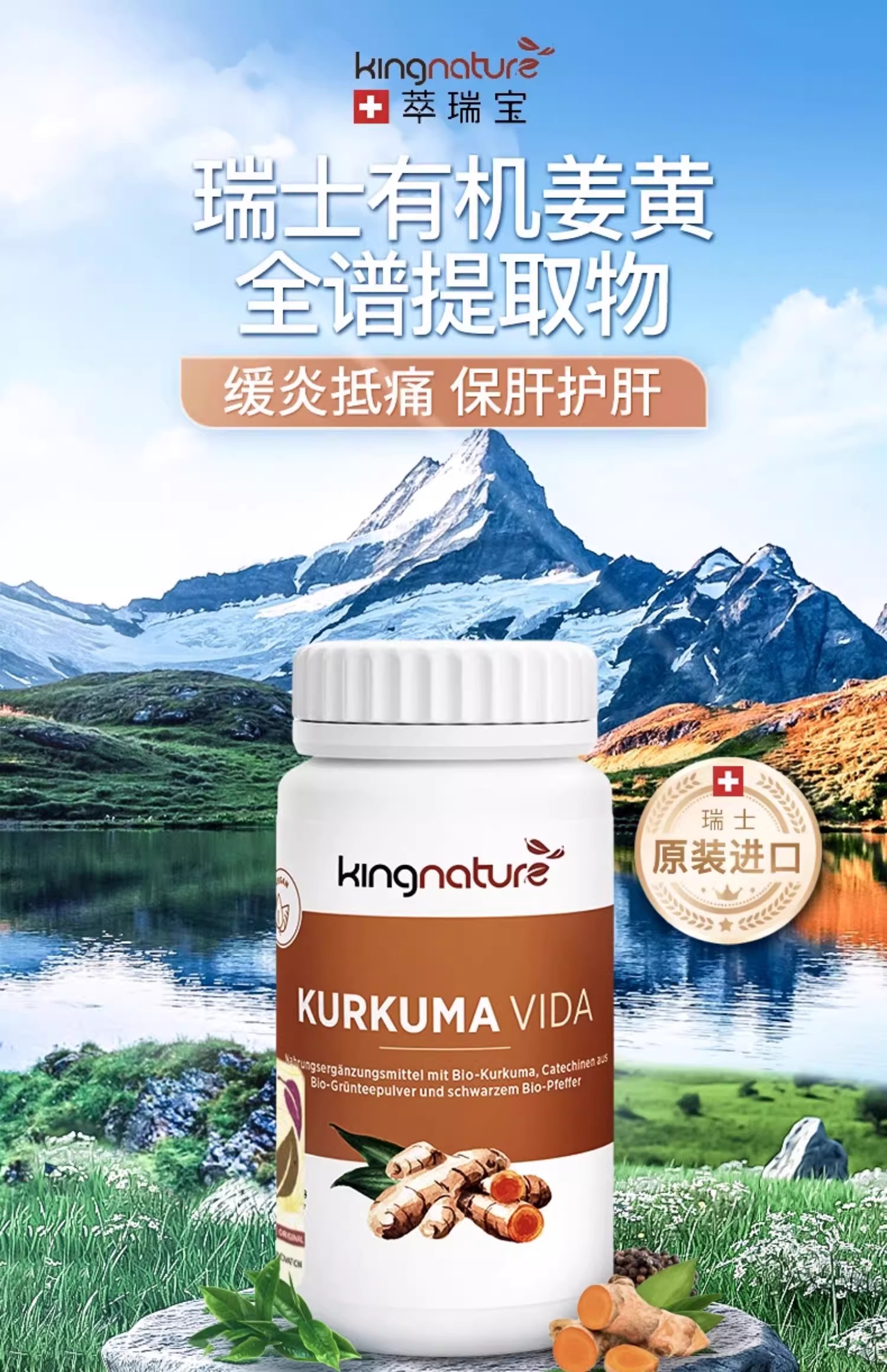 【有机姜黄提取物胶囊】肠渗修复伴侣 KingNature萃瑞宝瑞士进口 72粒
