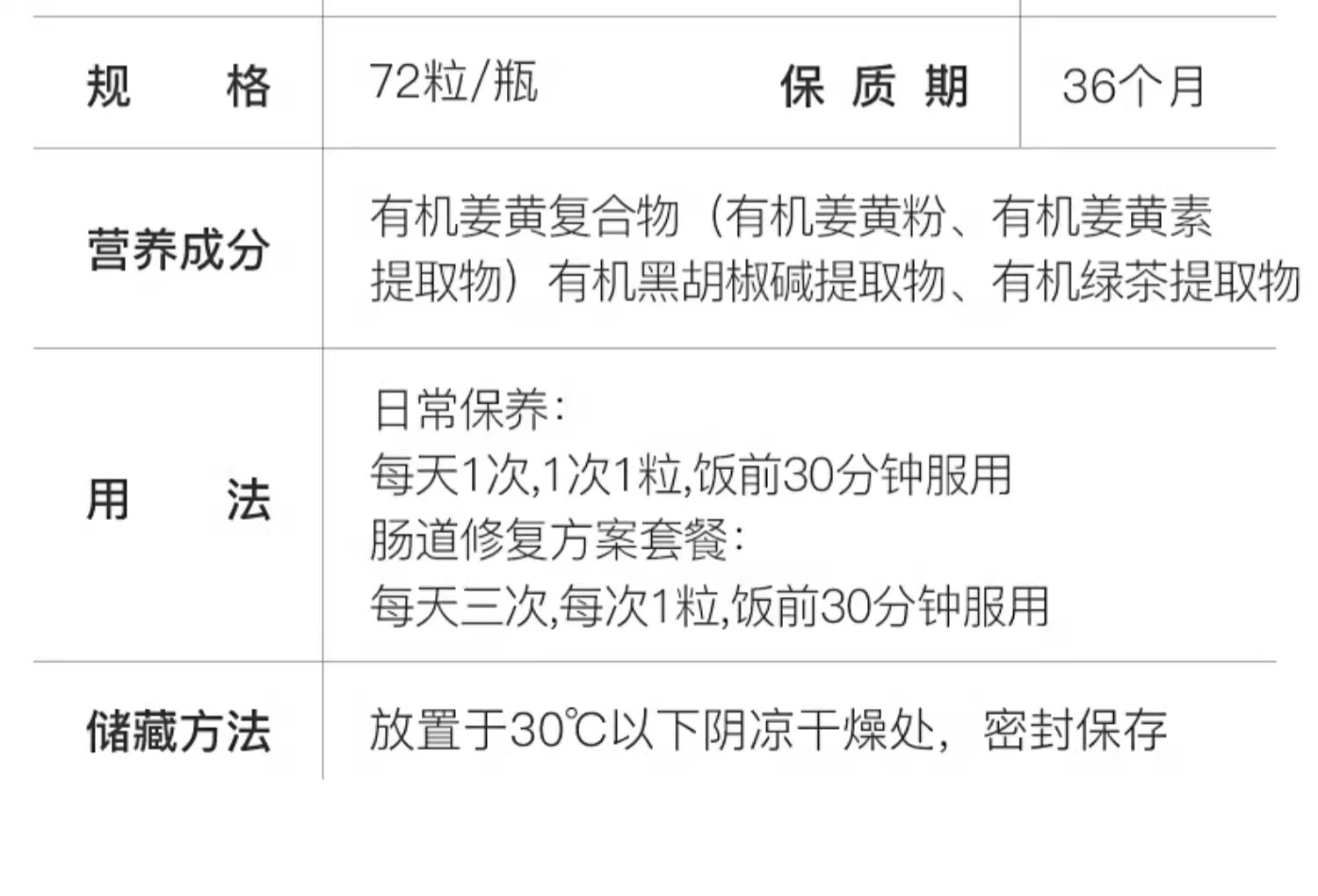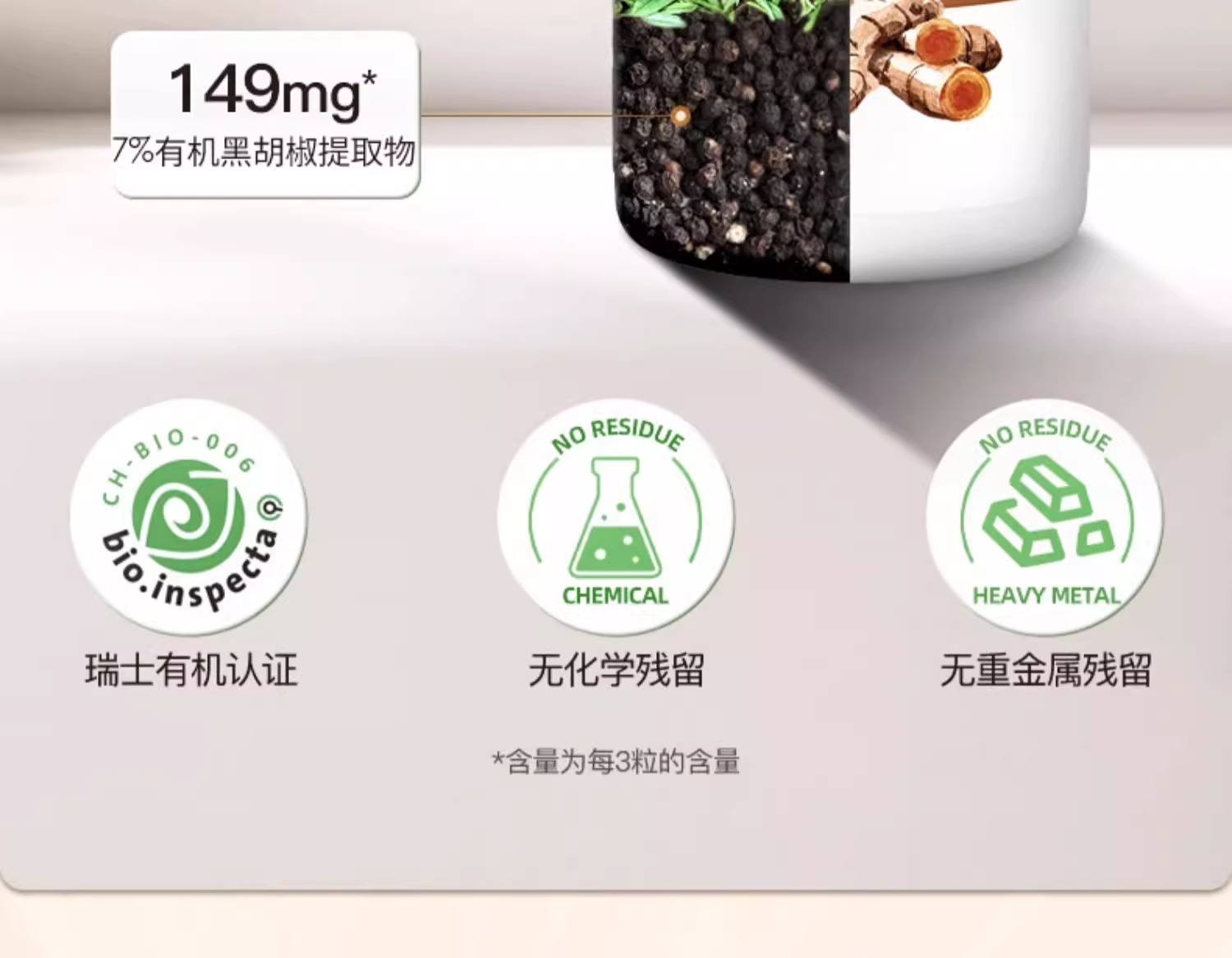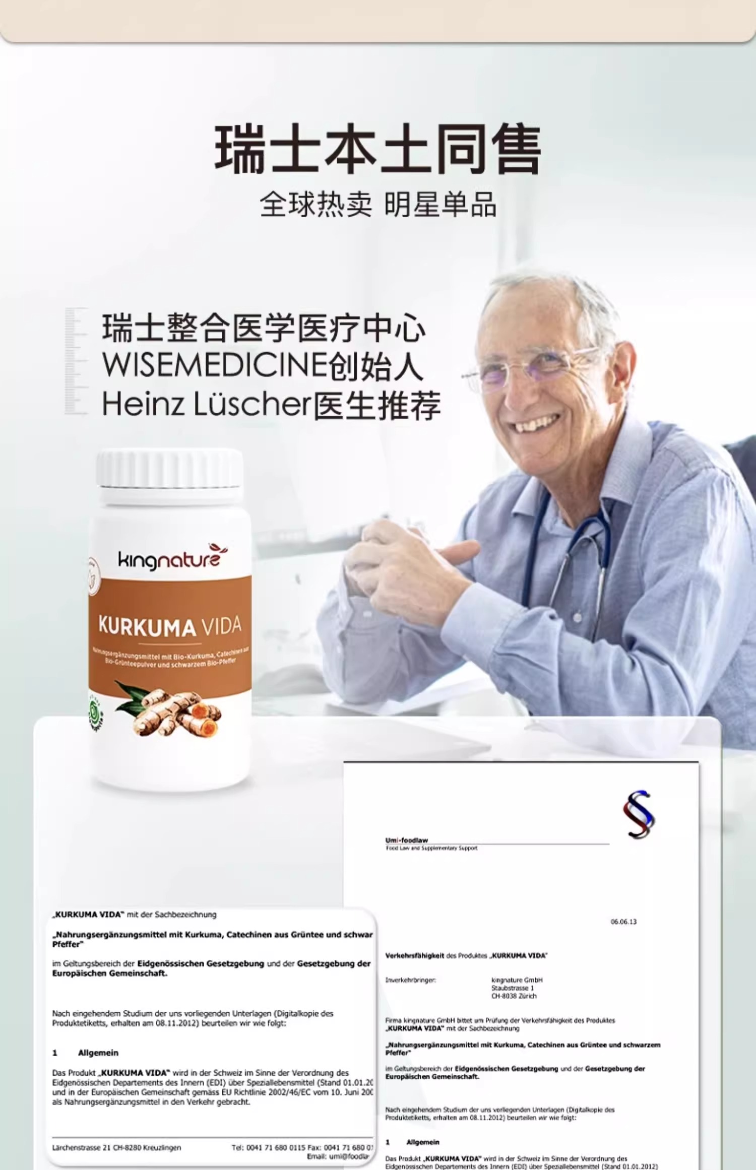 【有机姜黄提取物胶囊】肠渗修复伴侣 KingNature萃瑞宝瑞士进口 72粒