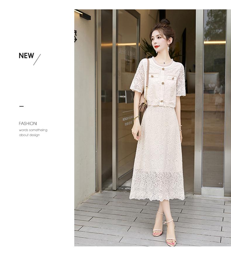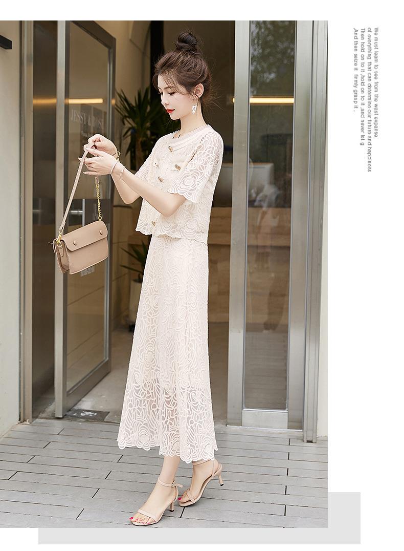 【预订·最迟6天发货】蕾丝连衣裙女两件套2024夏季新款高级感小香风气质法式半身裙套装