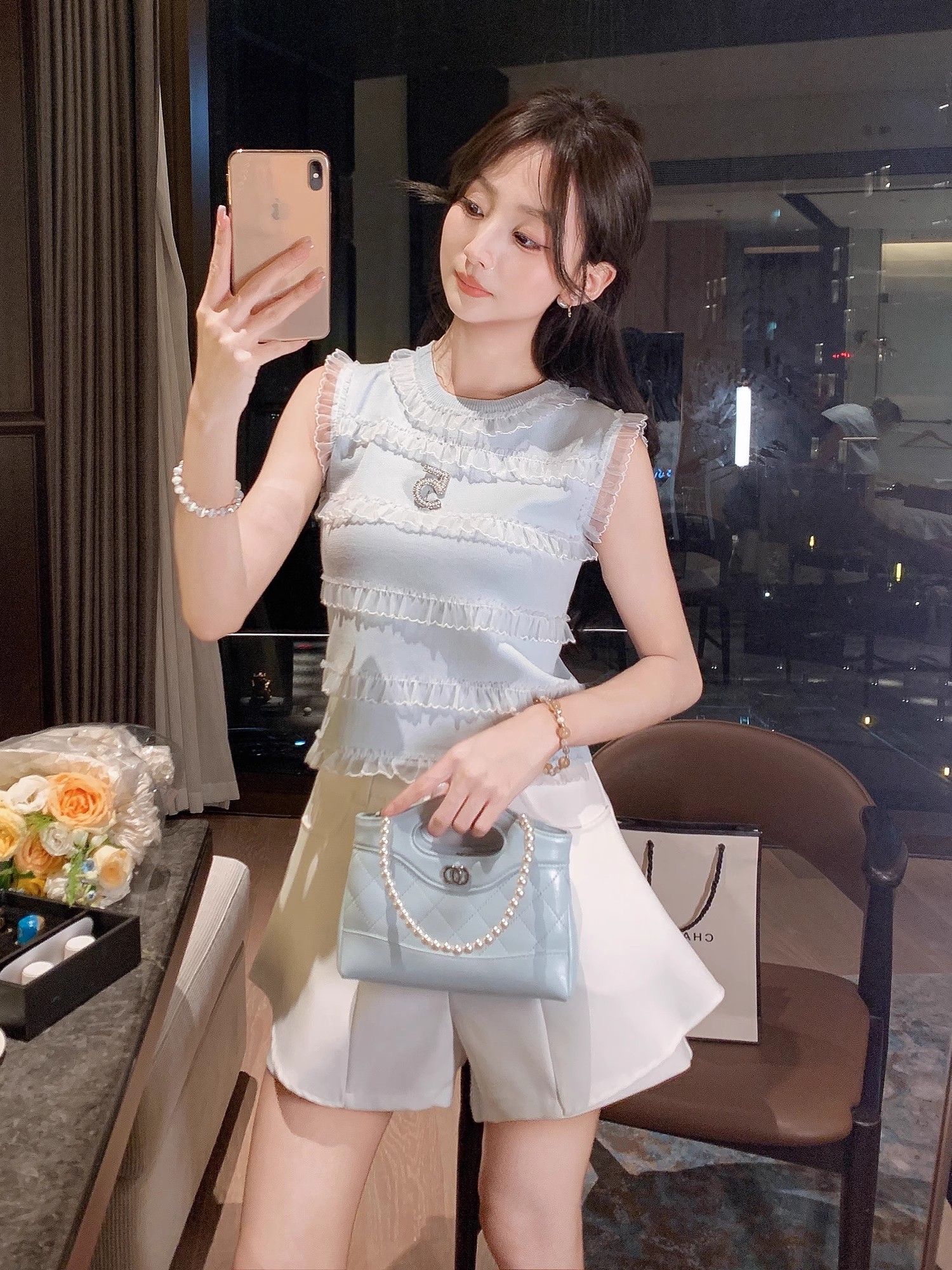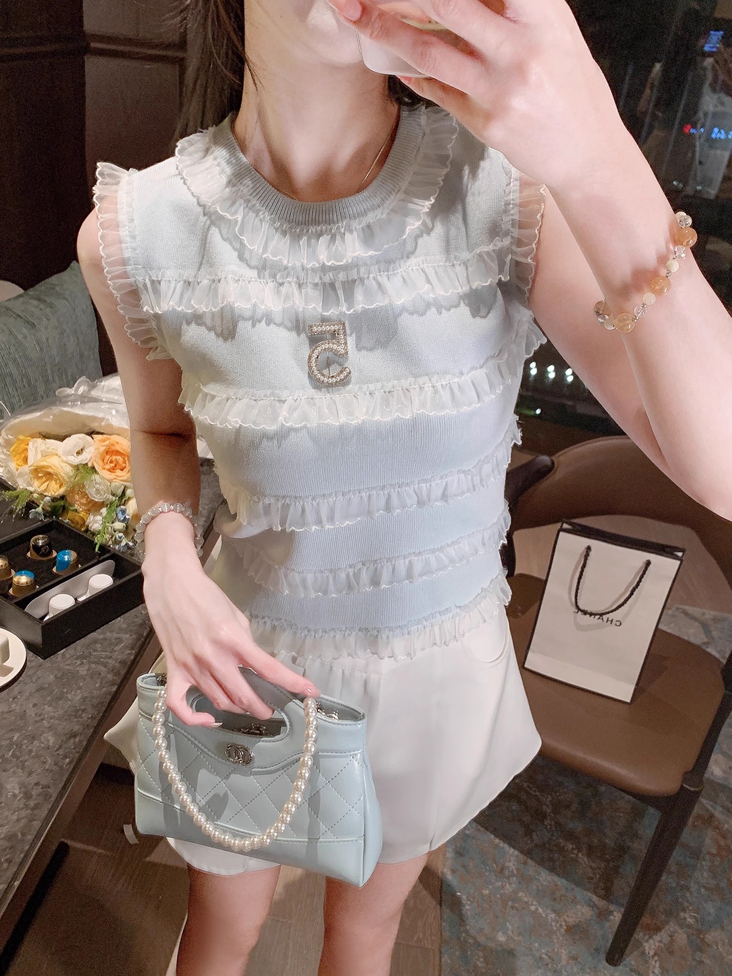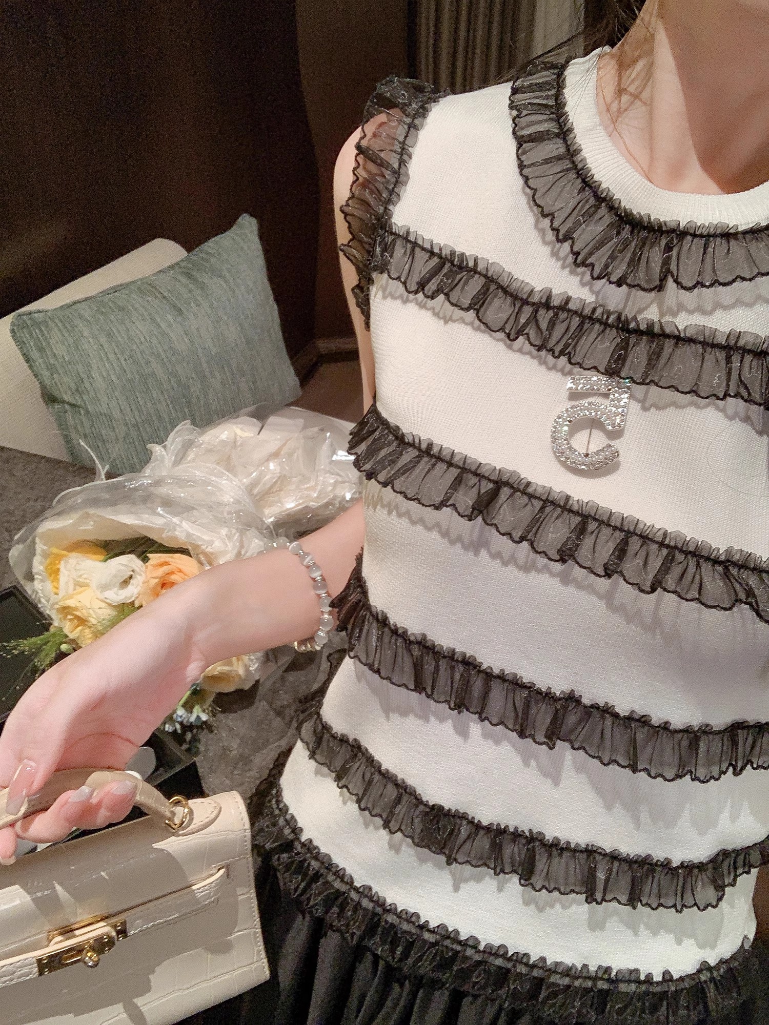 张心子【日常美女感】名媛高级感小香风背心针织上衣 U2503042