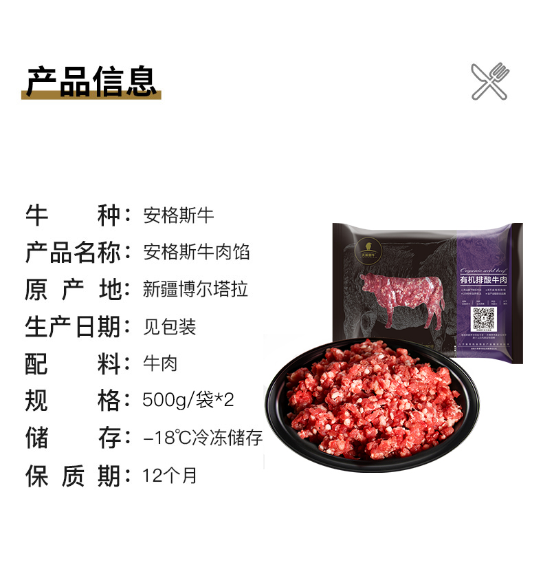 【冻品】天莱香牛有机安格斯肉馅500g*2袋