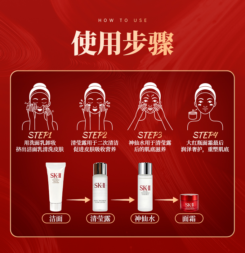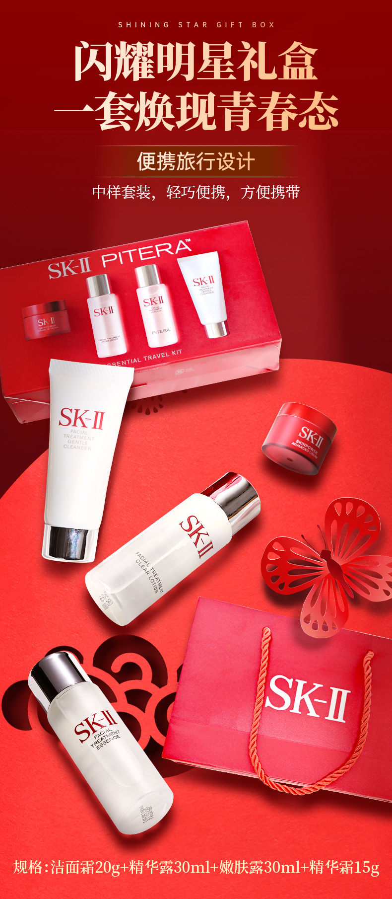 SK-II旅行必备套装 洁面霜20g+精华露30ml+嫩肤露30ml+精华霜15g