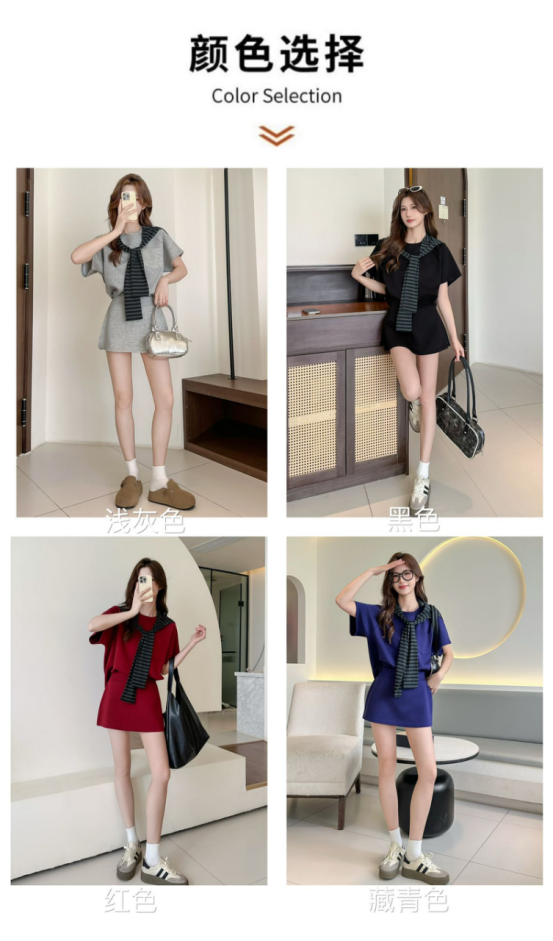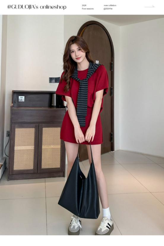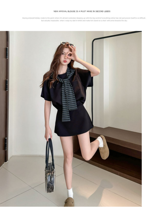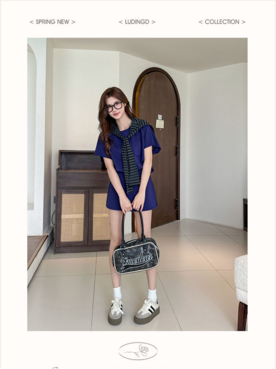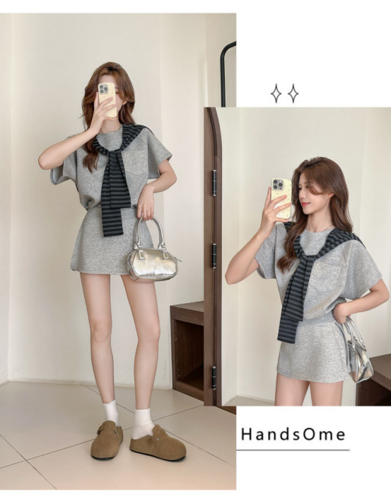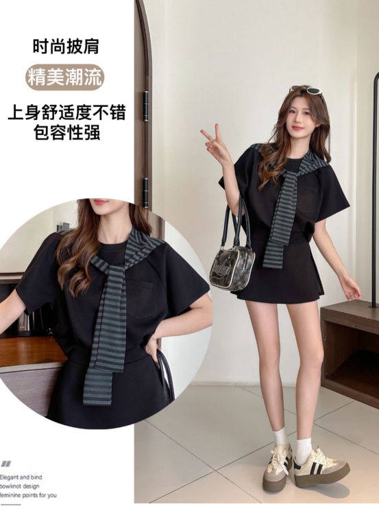 🔥火出圈【学院风大码三件套】高品质一套现货出🌸,今日份的简约控,自带披肩设计💐,简约中略带叛逆心 ✅短裤松紧腰 不挑人💕 面料舒适有质感!