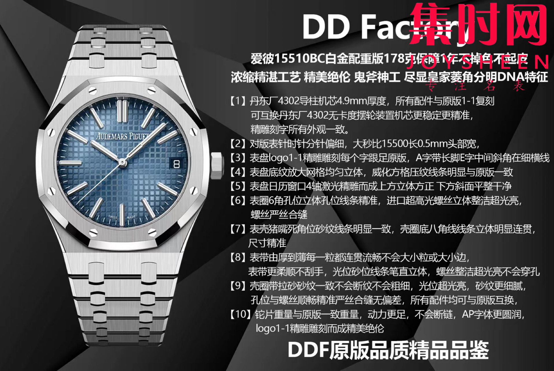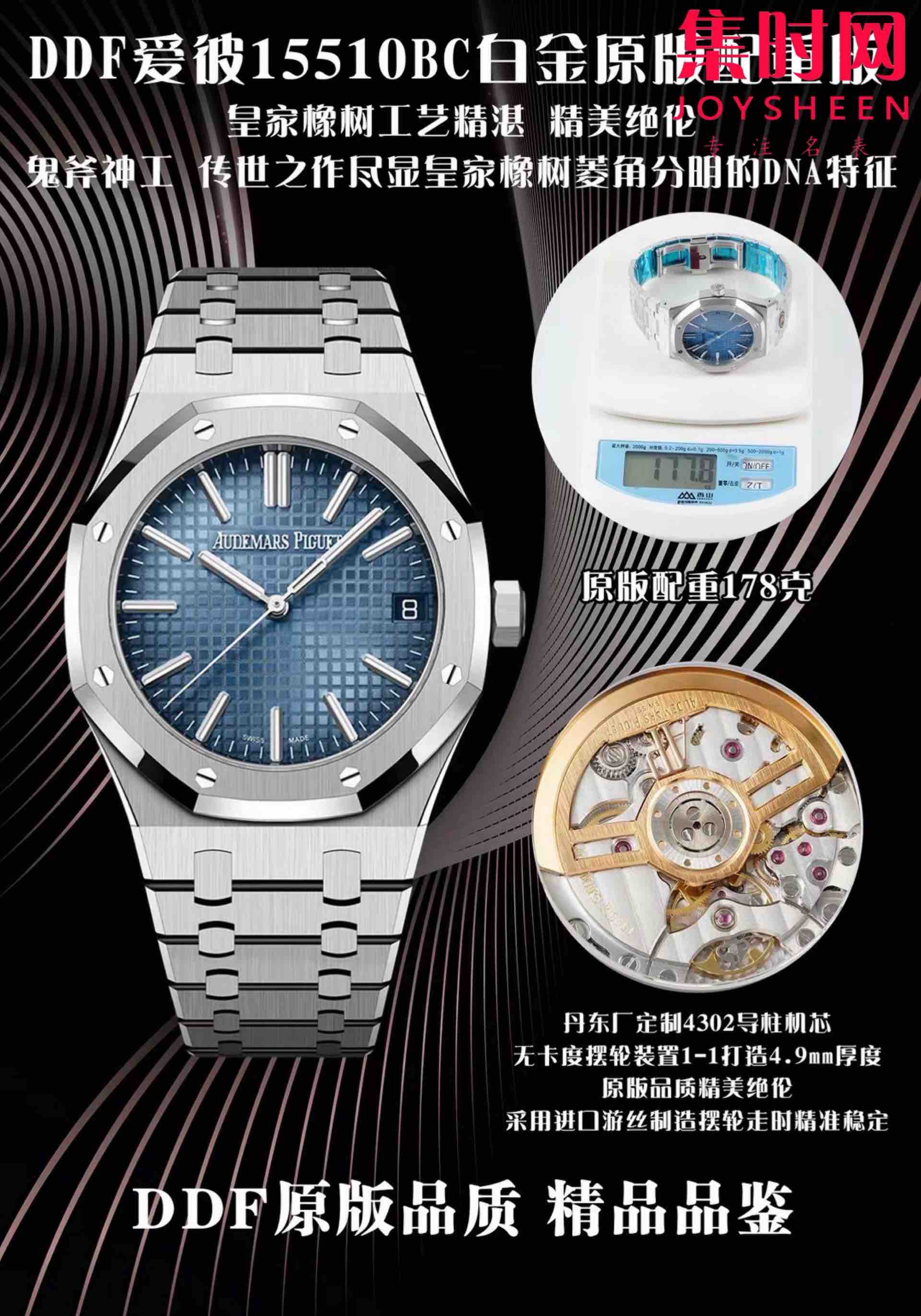 DDF爱彼皇家橡树系列15510BC白金配重版 DDF配重178克 丹东4302无卡度机 男士腕表
