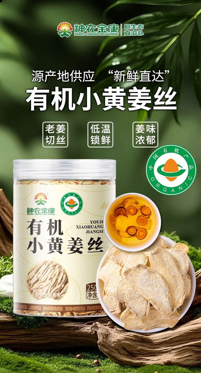 神农金康 有机干姜丝250g/罐【出口级】云南小黄姜 原生态真滋补 喝护家人健康
