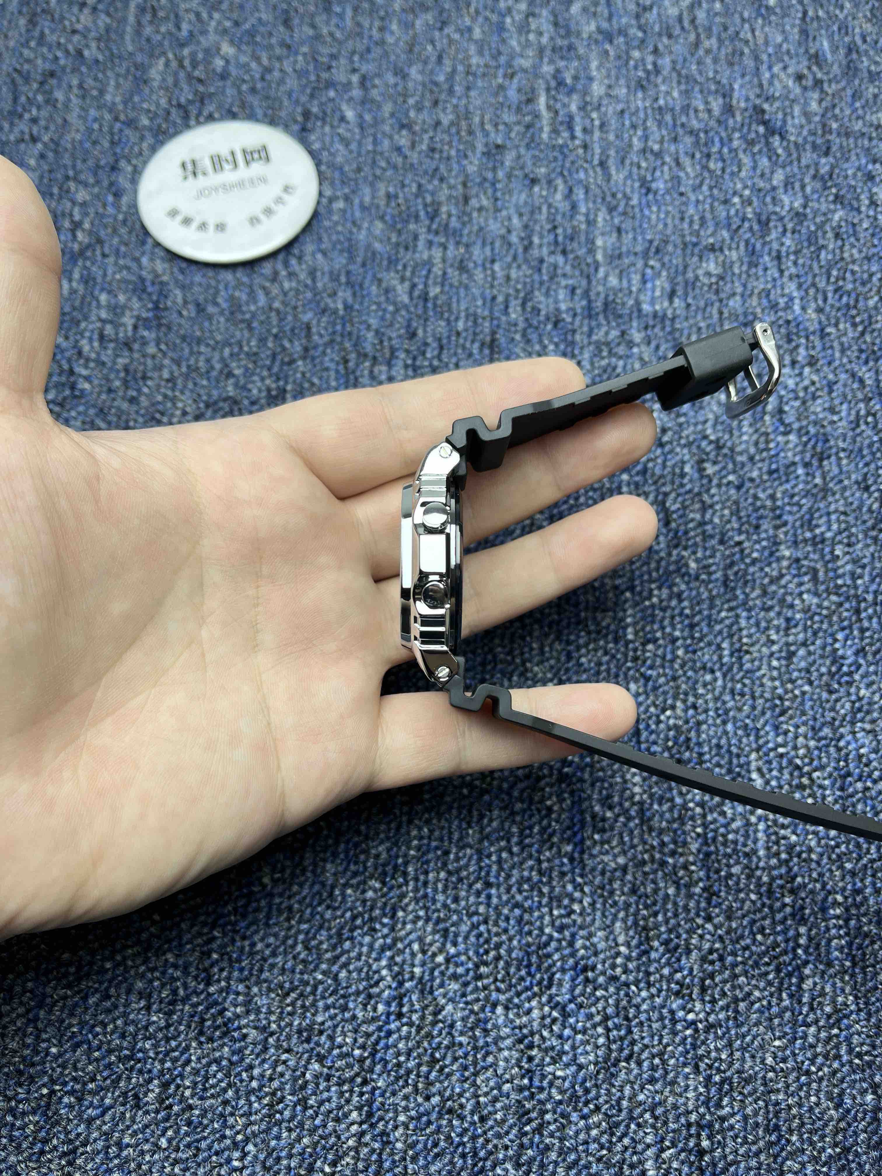 卡西欧GMW新款小方块 胶带款 男士腕表 采用了极为用心的抛光和打磨,显得质感非常高级。经典的G-Shock壳形金属化之后,原装石英机芯 充满未来感和阳刚之气。全套专柜包装。