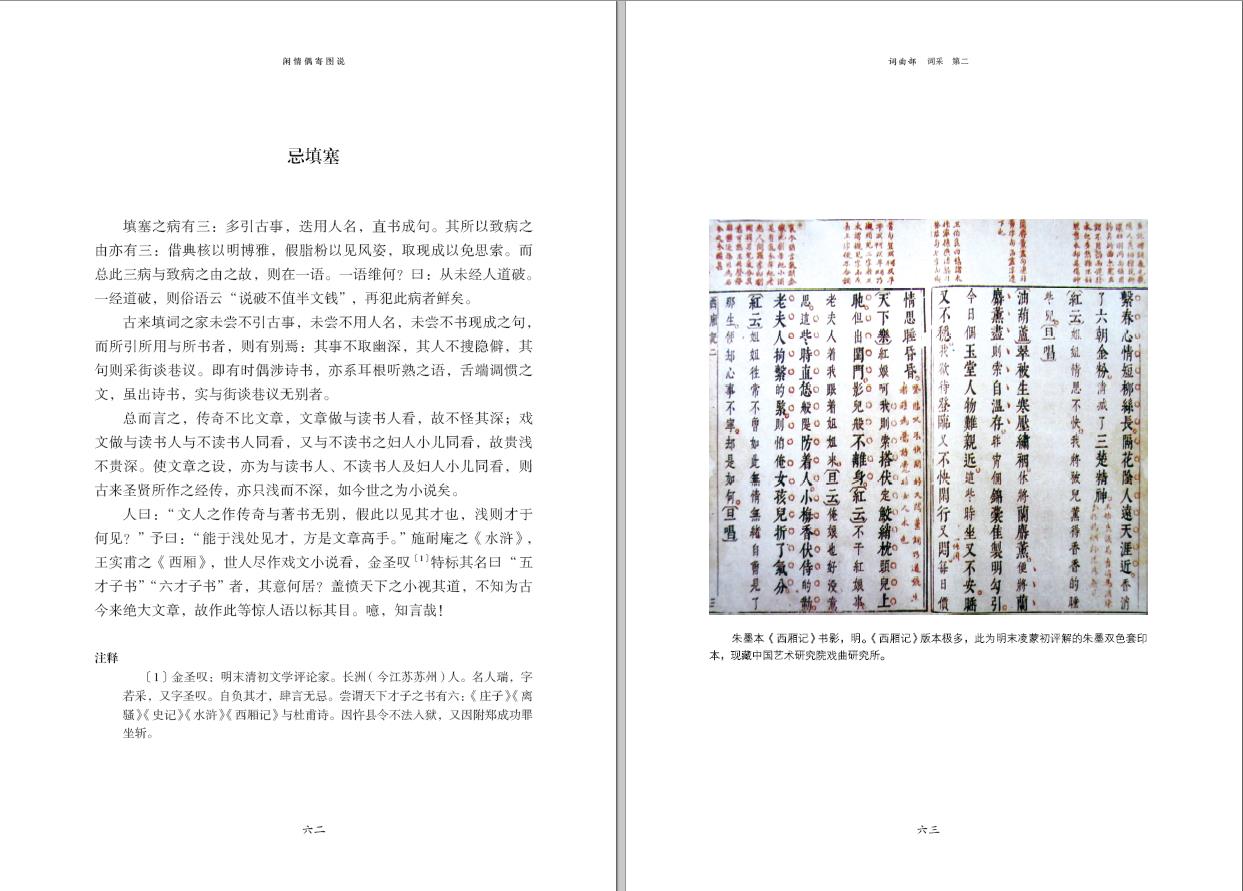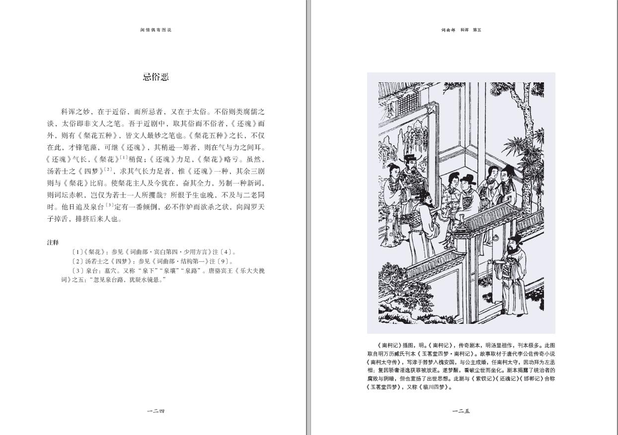 这部《闲情偶寄图说》以芥子园本为底本,校以翼圣堂本,对人名、地名、典故、工艺、术语等进行了注释,是方便阅读的可靠读本。书中还插入了大量图片,以期用图说的方式对《闲情偶寄》进行解读。书中所选图片或来自出土、传世文物,或源自古代版刻、民间实物,或是民俗活动、手艺过程的记录,图片下的详细解说能以细微、多元的视角对原书内容进行阐释,是一部图文并茂、图文互补的经典。