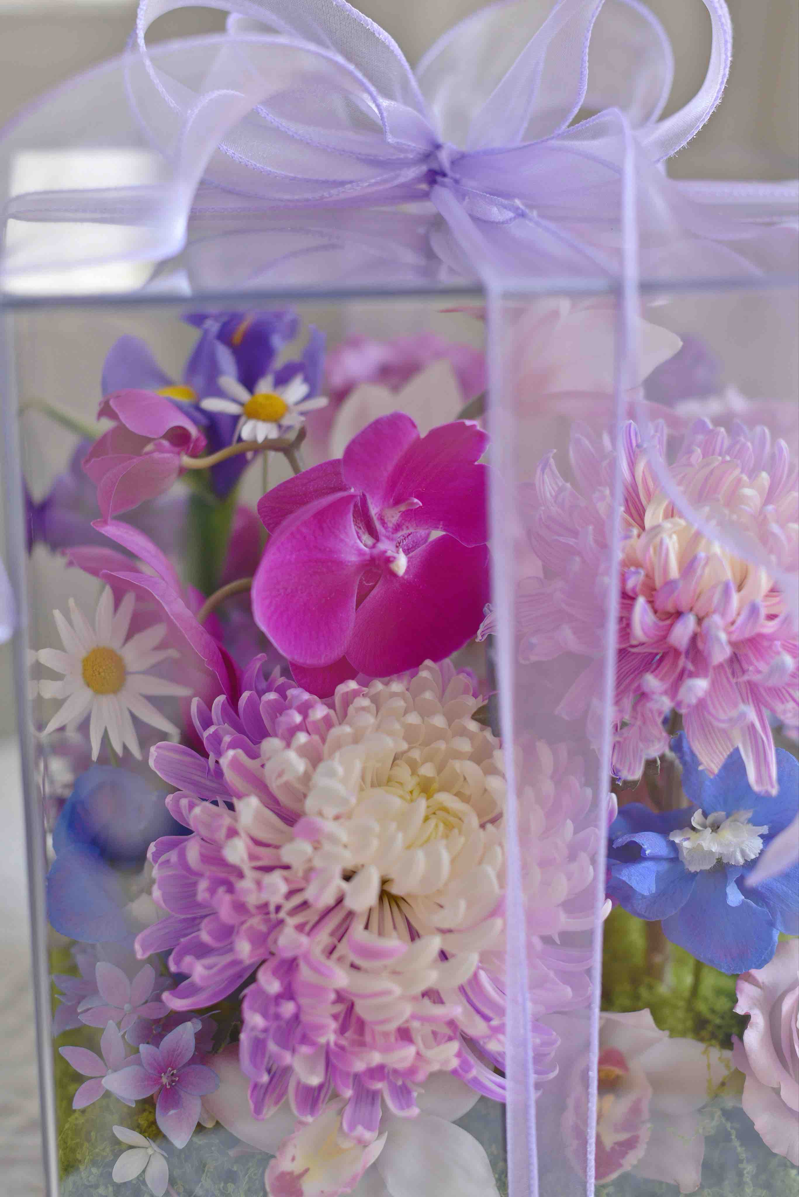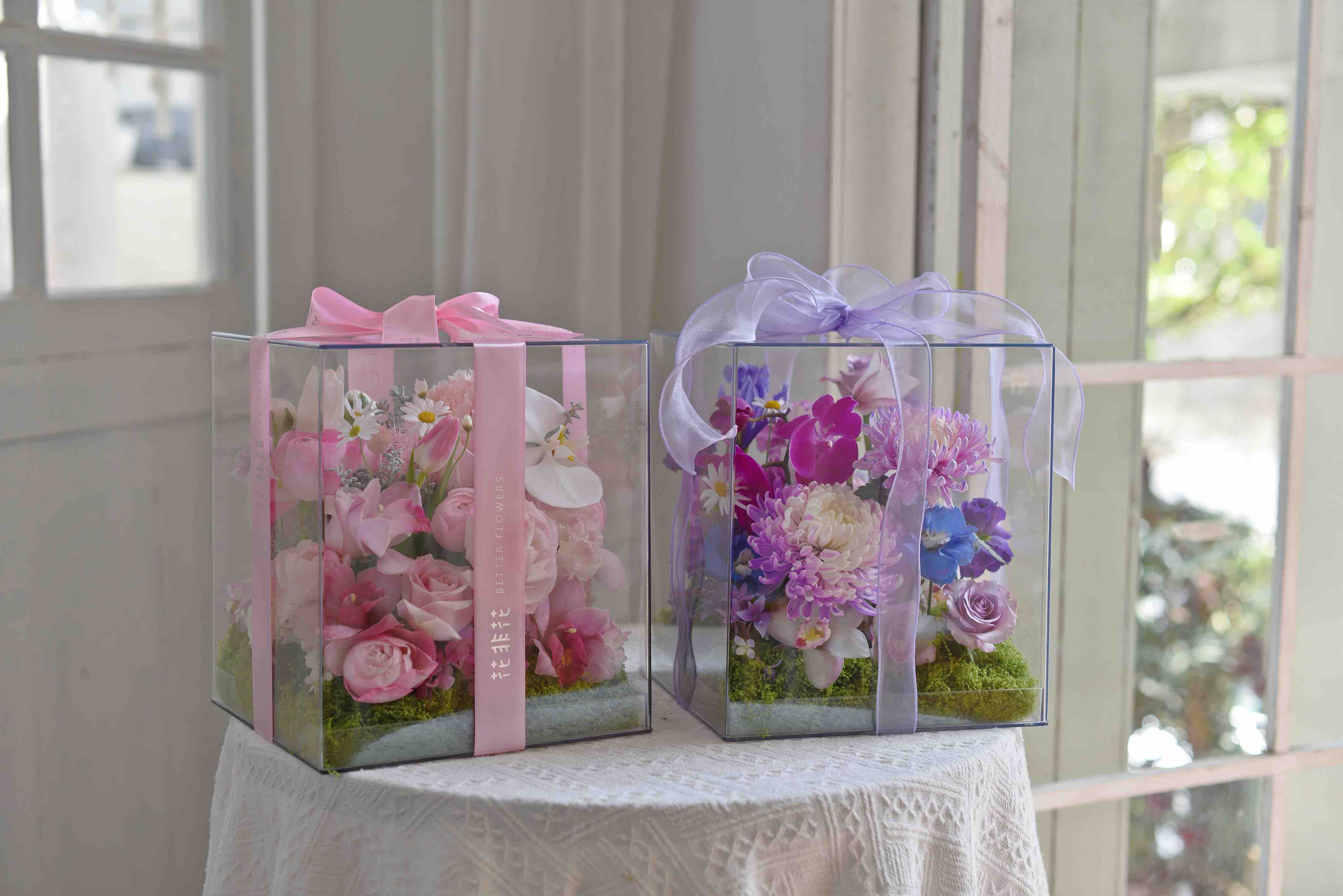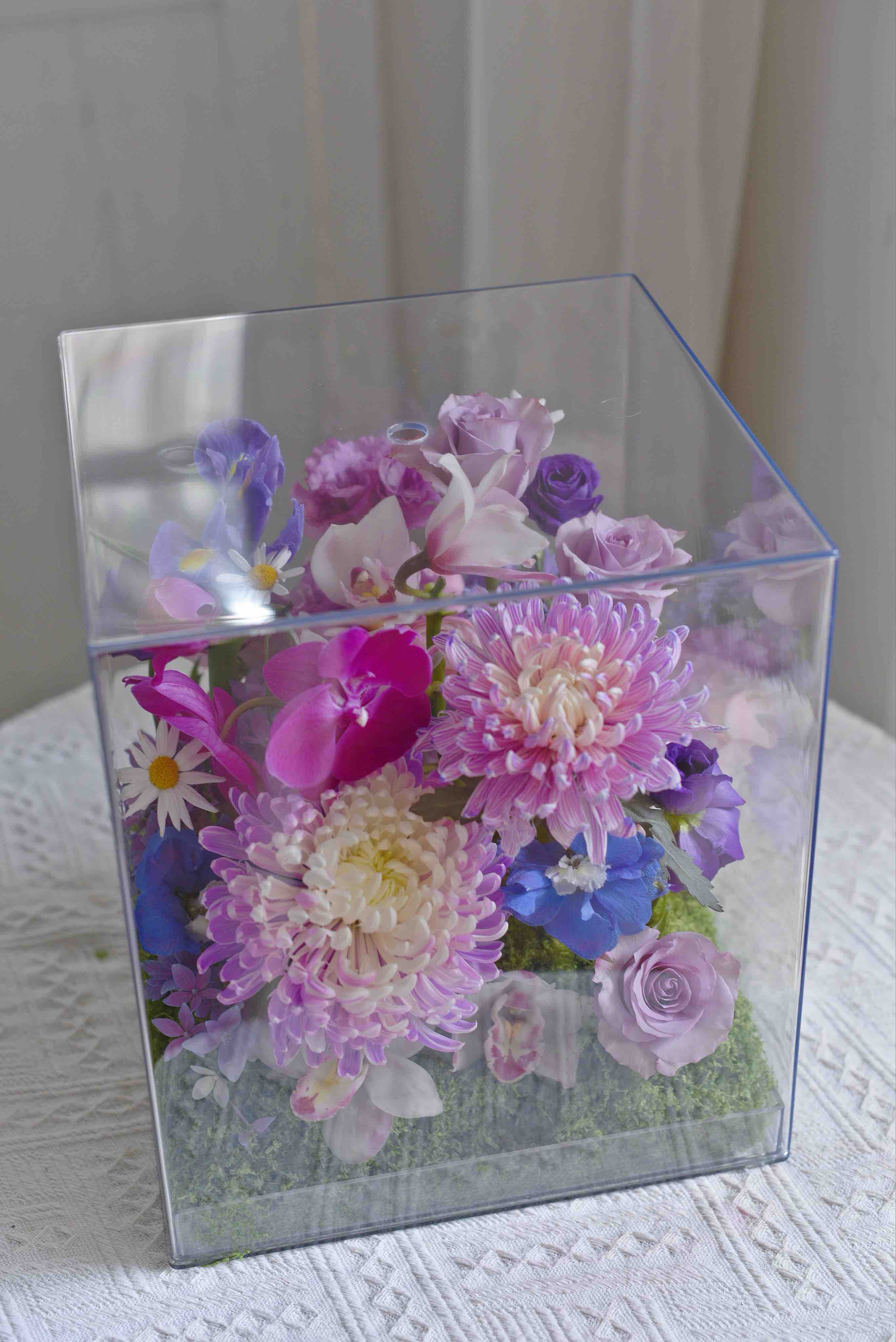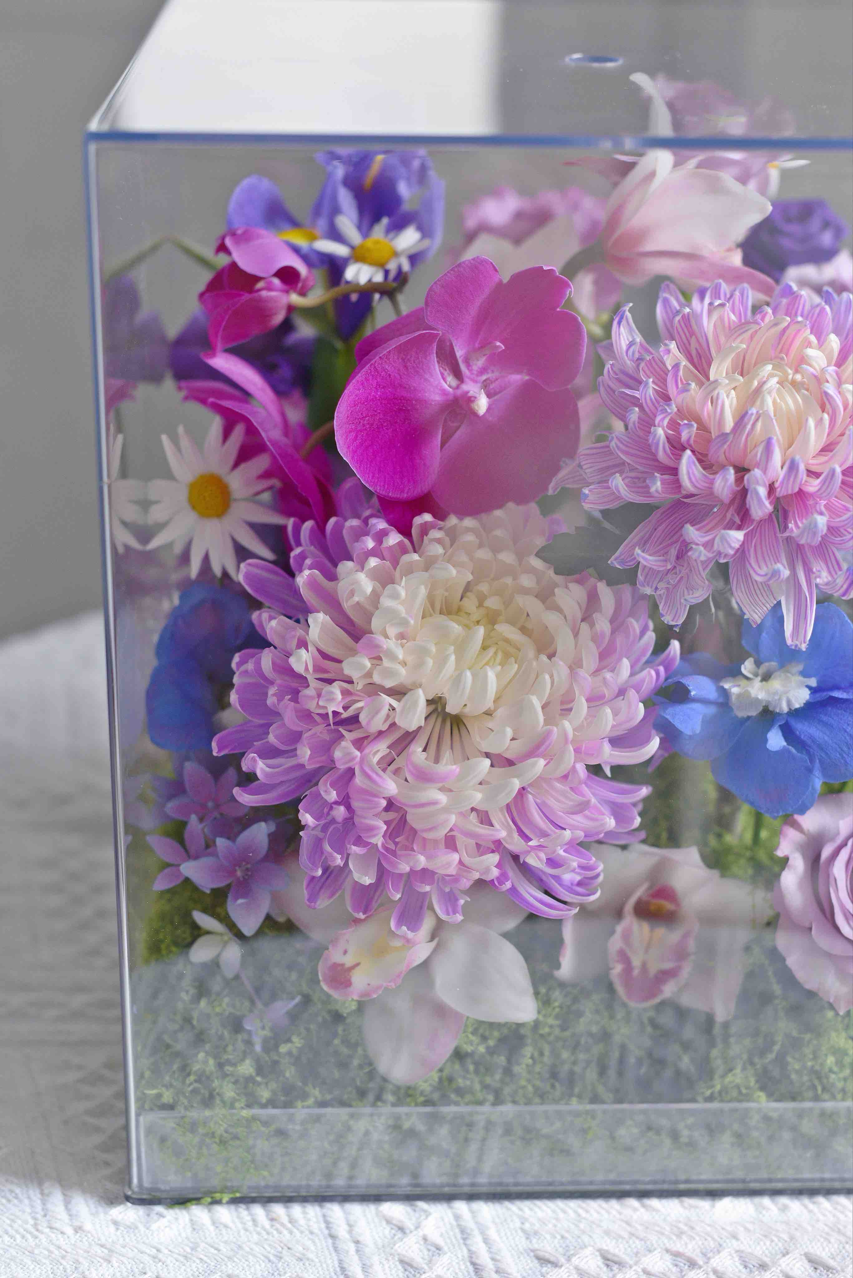 《槿紫》蝴蝶兰牡丹菊海洋之歌亚克力礼盒长25×宽25×高27(cm)