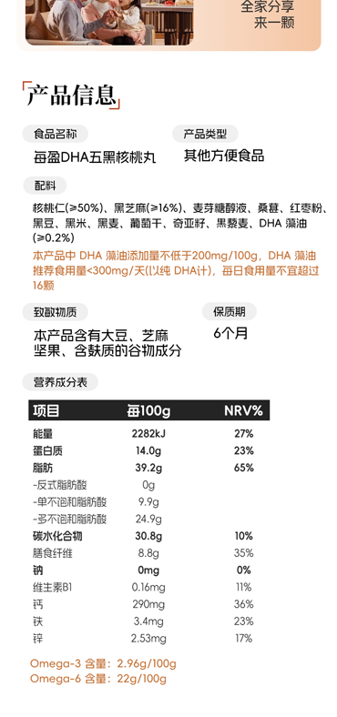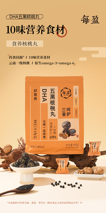 【产品名称】:每盈_ DHA 五黑核桃丸/405g