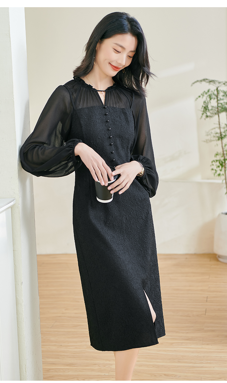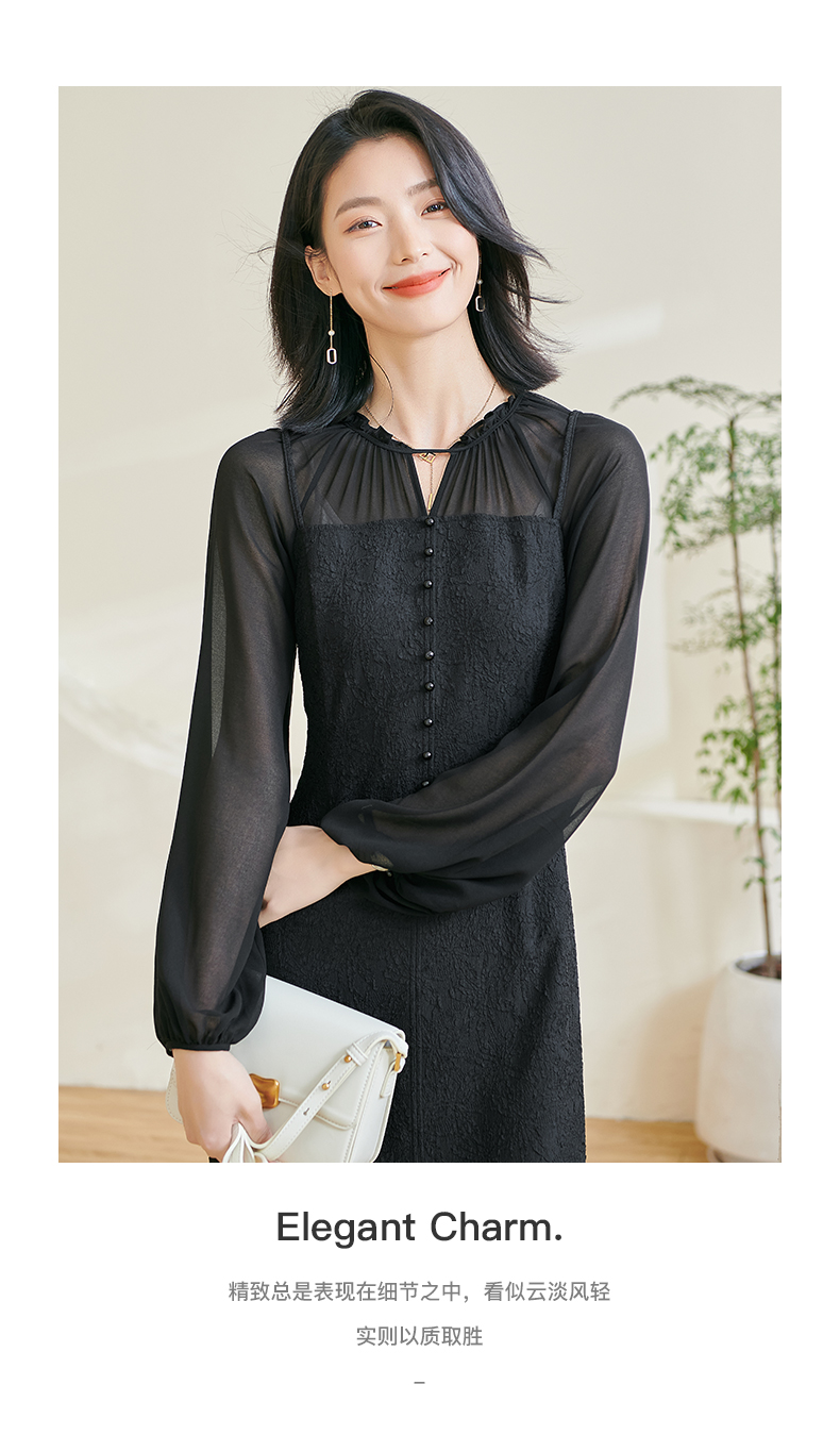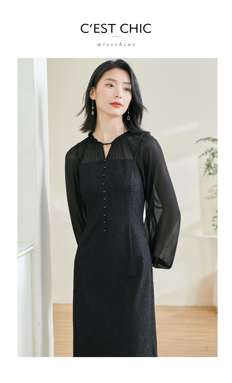 剩S/M/L/XL 米思阳2026春季新款优雅新中式黑色连衣裙修身显瘦泡泡袖裙子0890