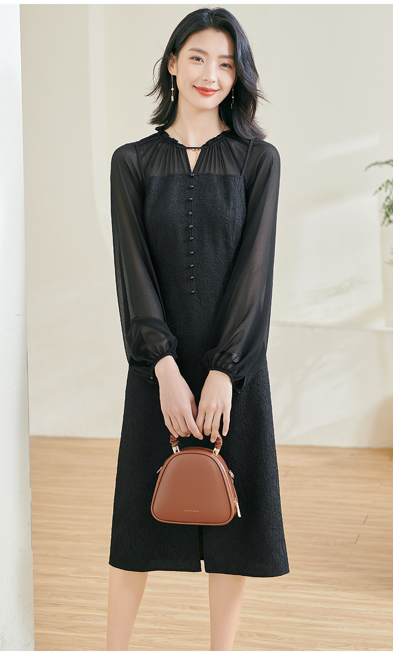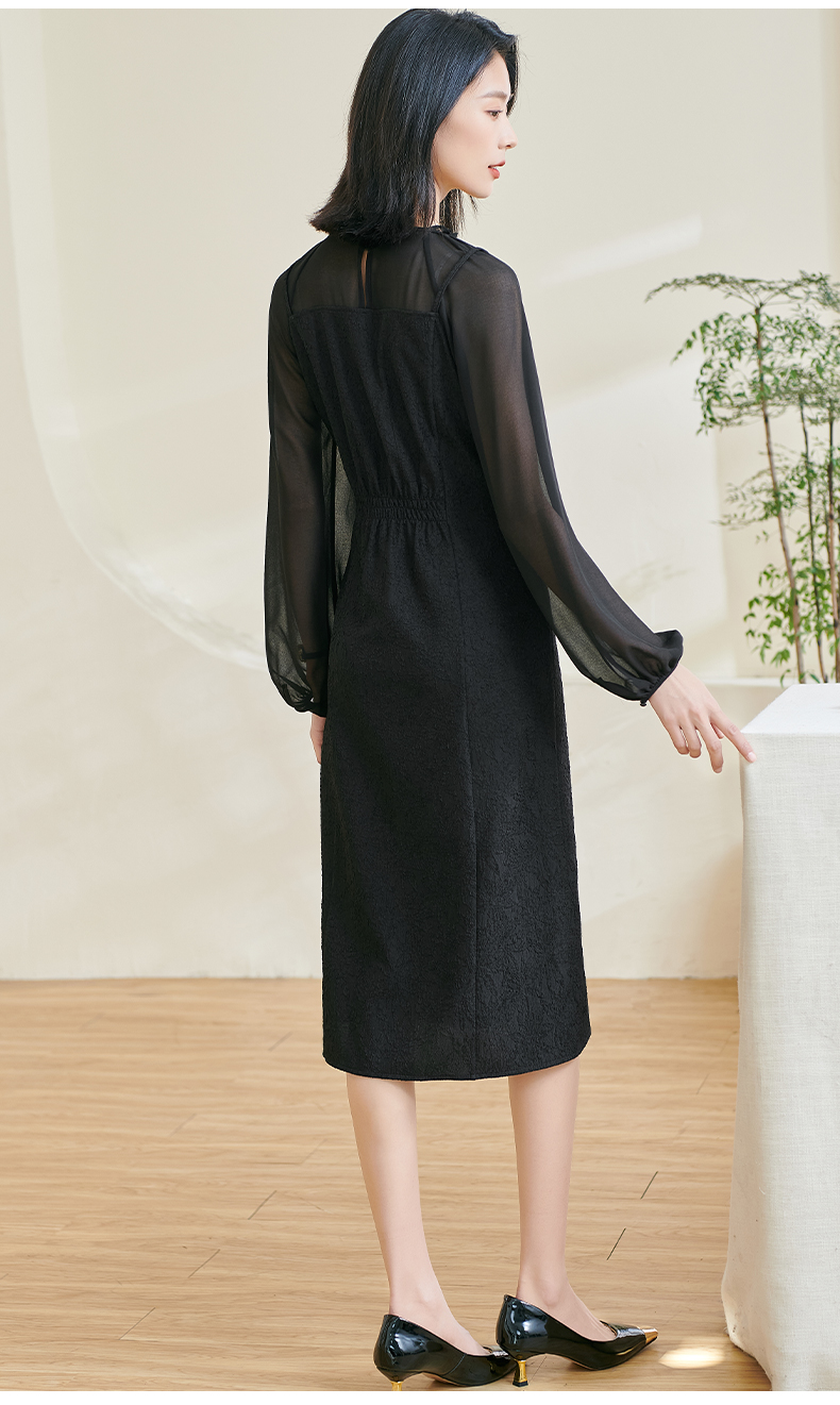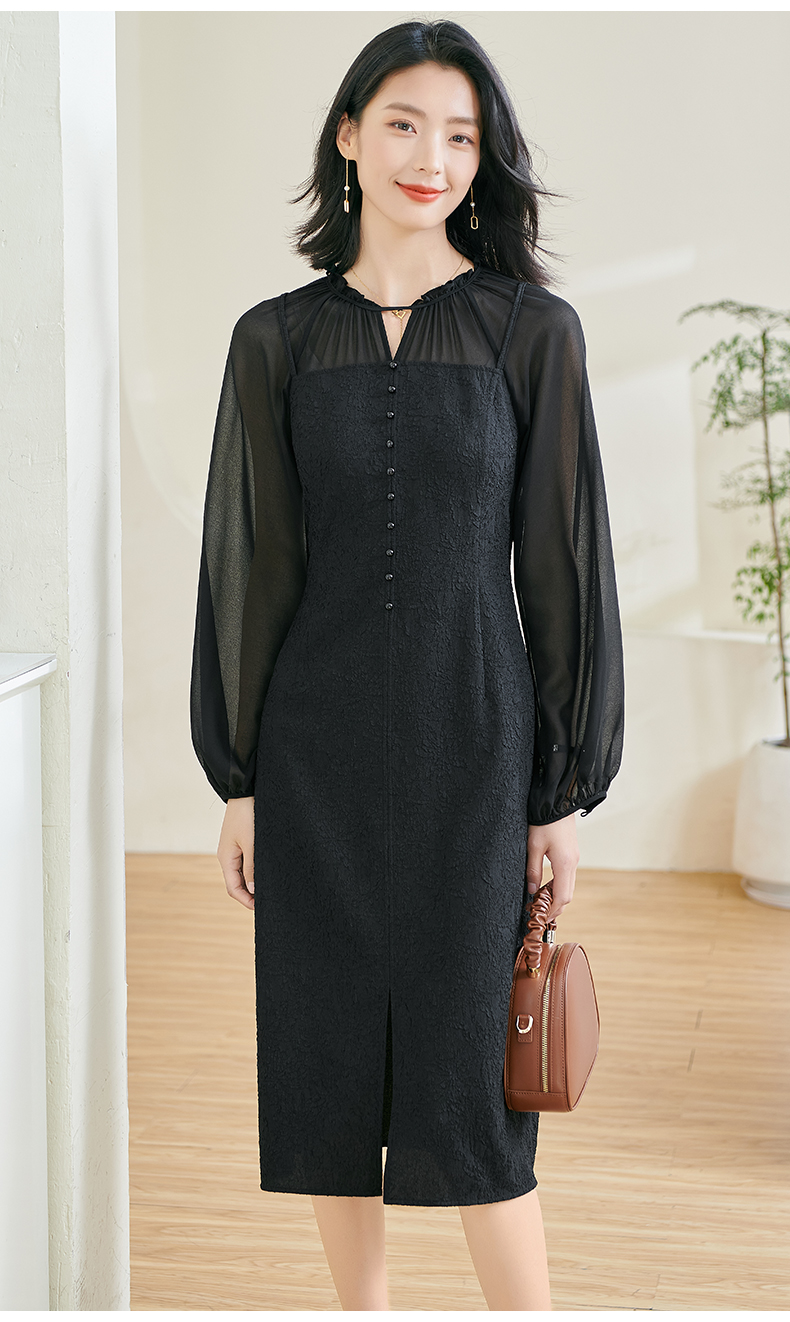 剩S/M/L/XL 米思阳2026春季新款优雅新中式黑色连衣裙修身显瘦泡泡袖裙子0890