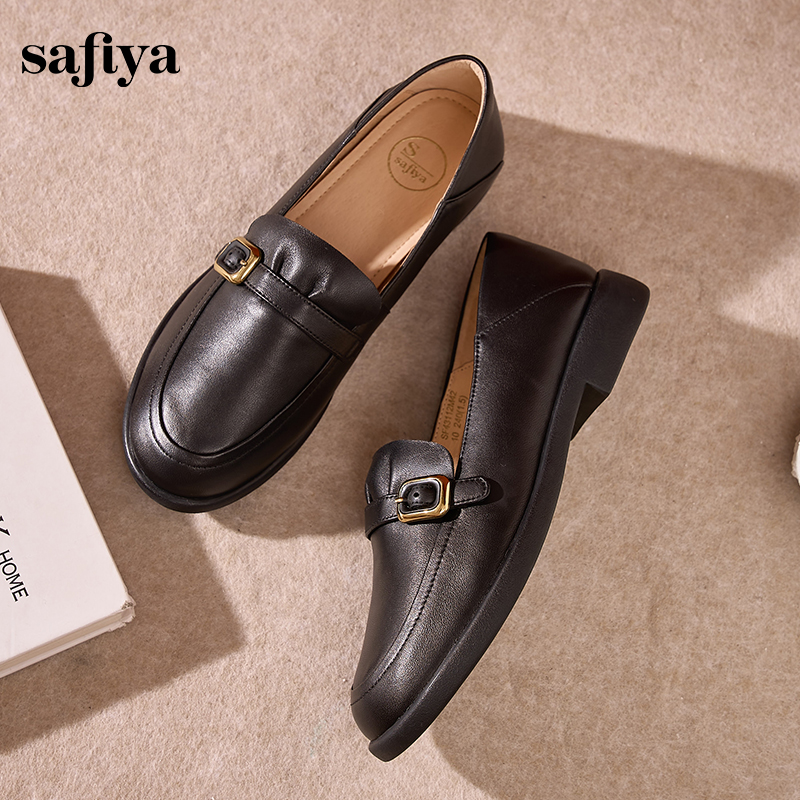 Safiya/索菲娅2024秋舒软羊皮复古皮带扣平底休闲英伦深口单鞋 SF43112142