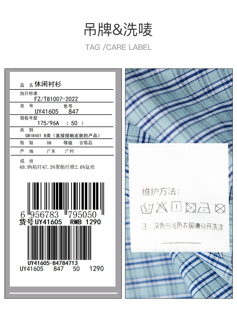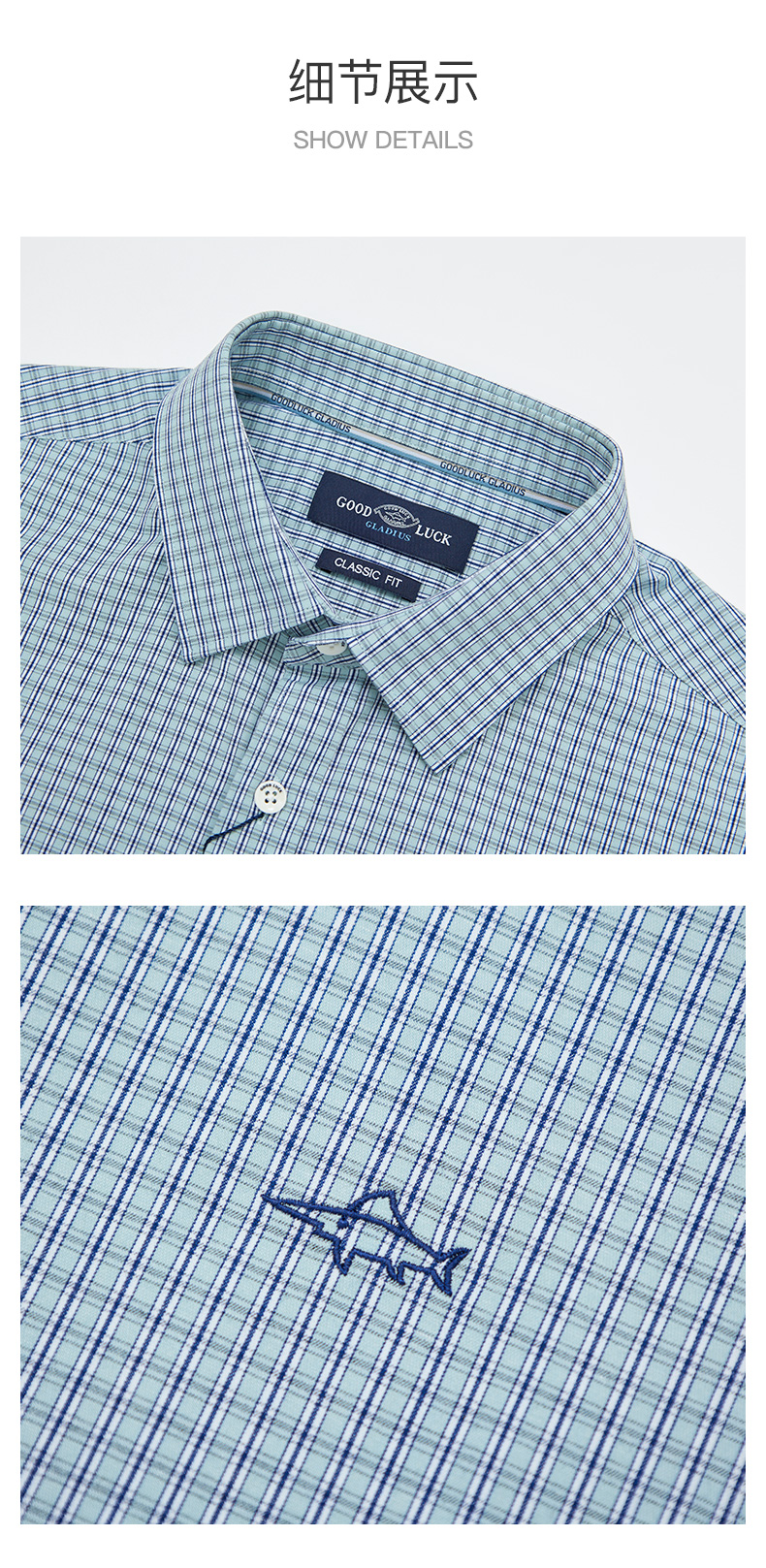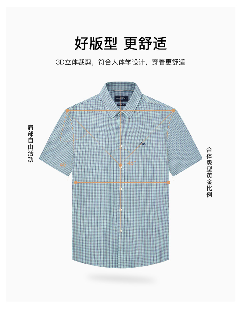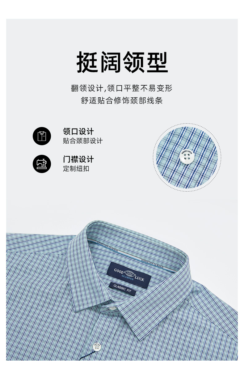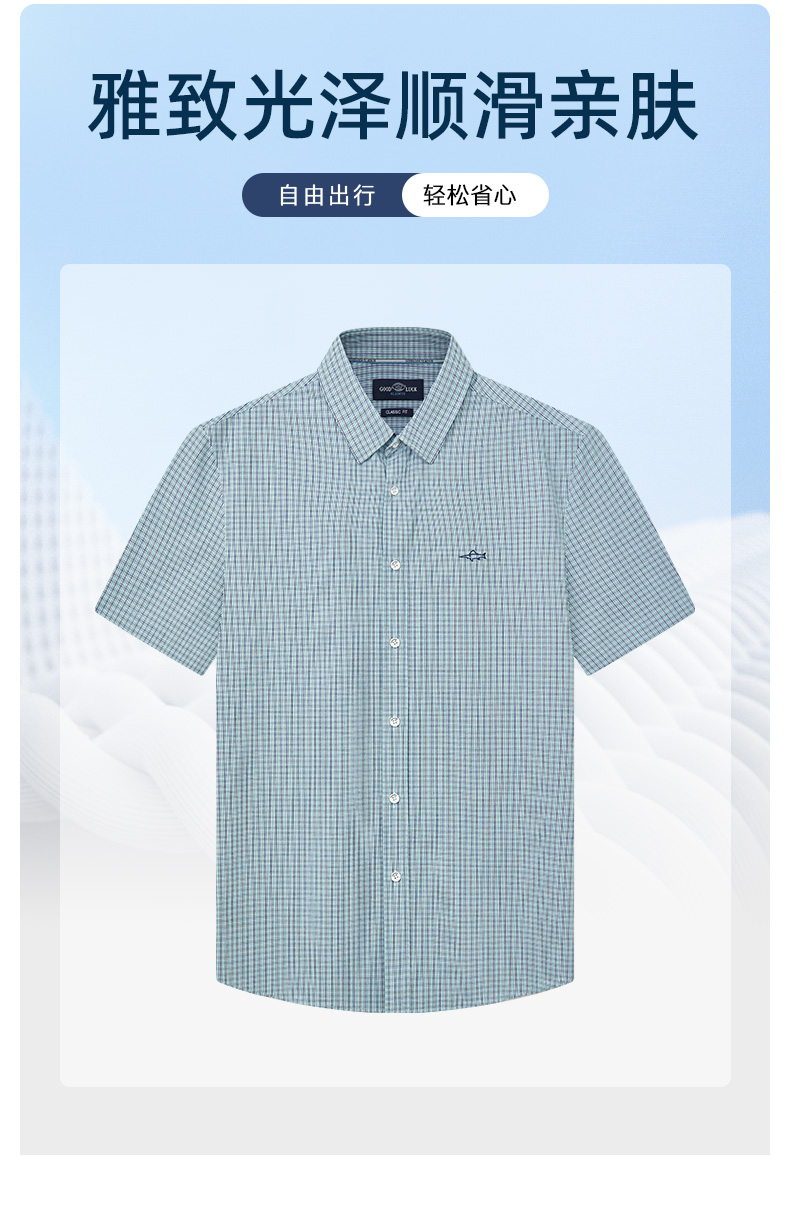 GOOD LUCK/德鲨弹力舒适清新格纹长袖衬衫LY21103-843