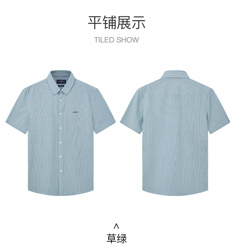 德鲨鲨鱼男士短袖格子衬衫2026夏新款休闲打底上衣男衬衣