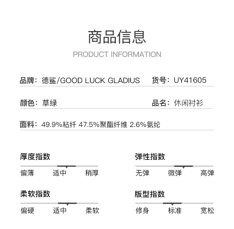 GOOD LUCK GLADIUS品牌由“浙江德鲨服饰有限公司”引进中国市场,经过多年发展,凭借完善的终端形象,规范化的销售管理,迅速赢得消费者的认可,引领国内消费流行,是成功人士首选男装品牌。