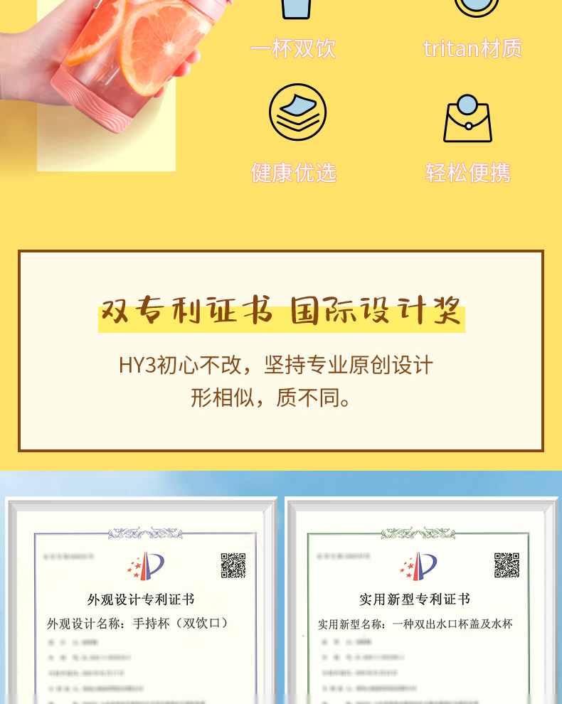 HY3 N6920一盖两用双饮杯玩偶款 兔/猪/龙480ML