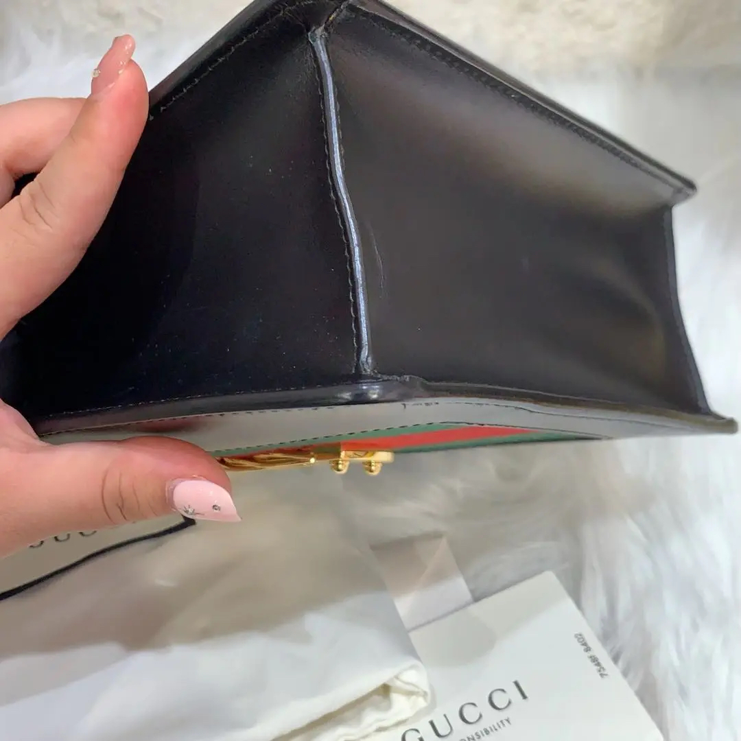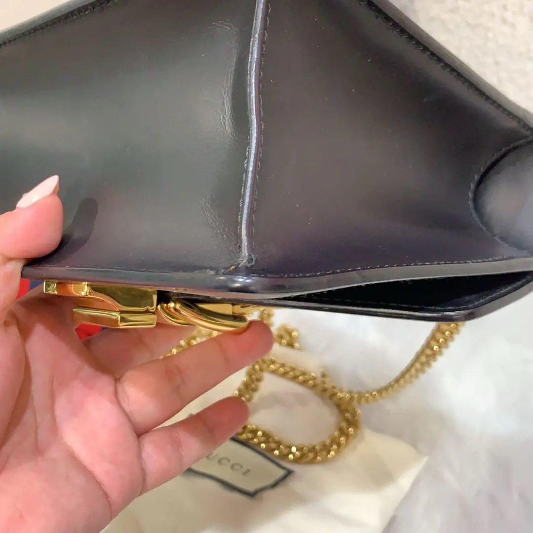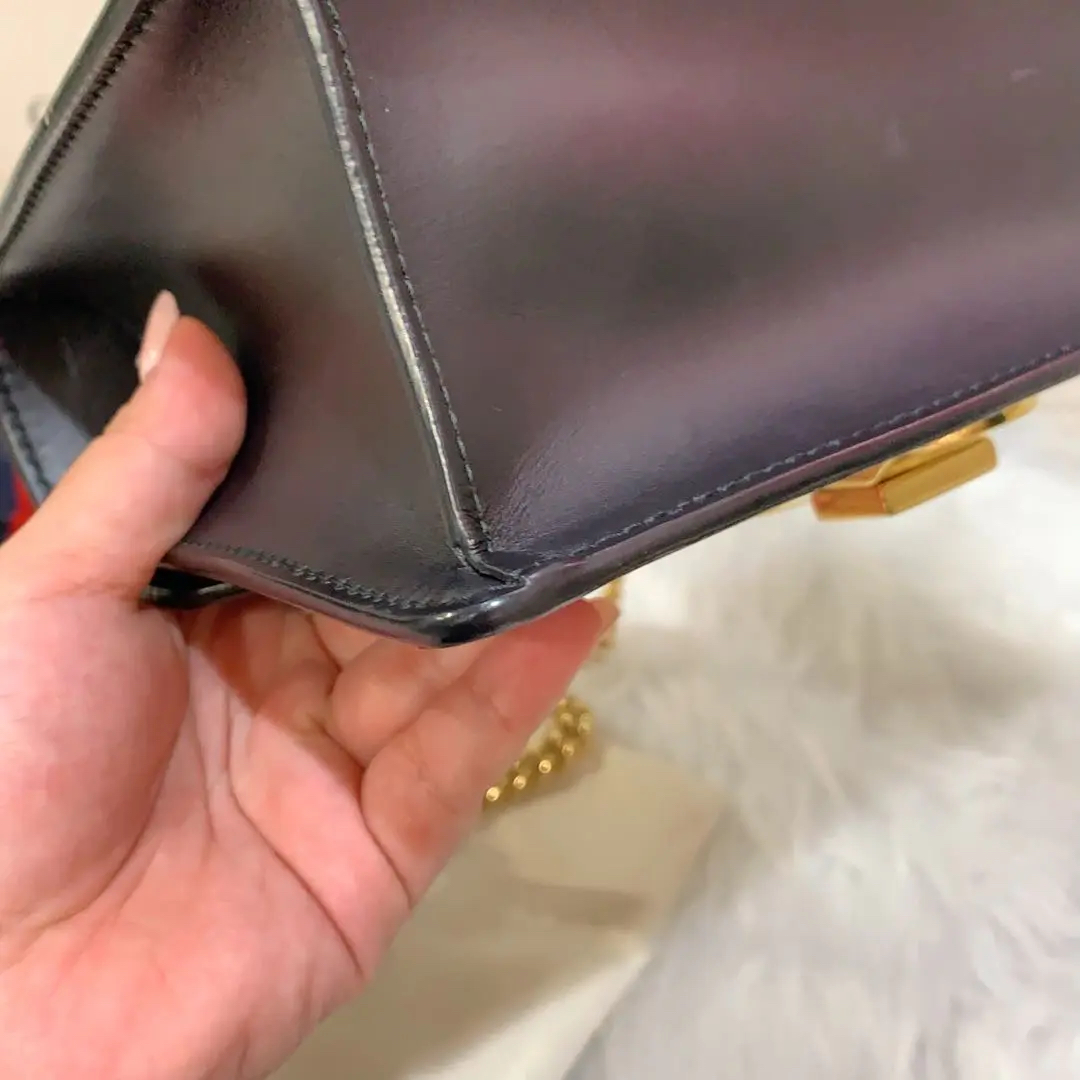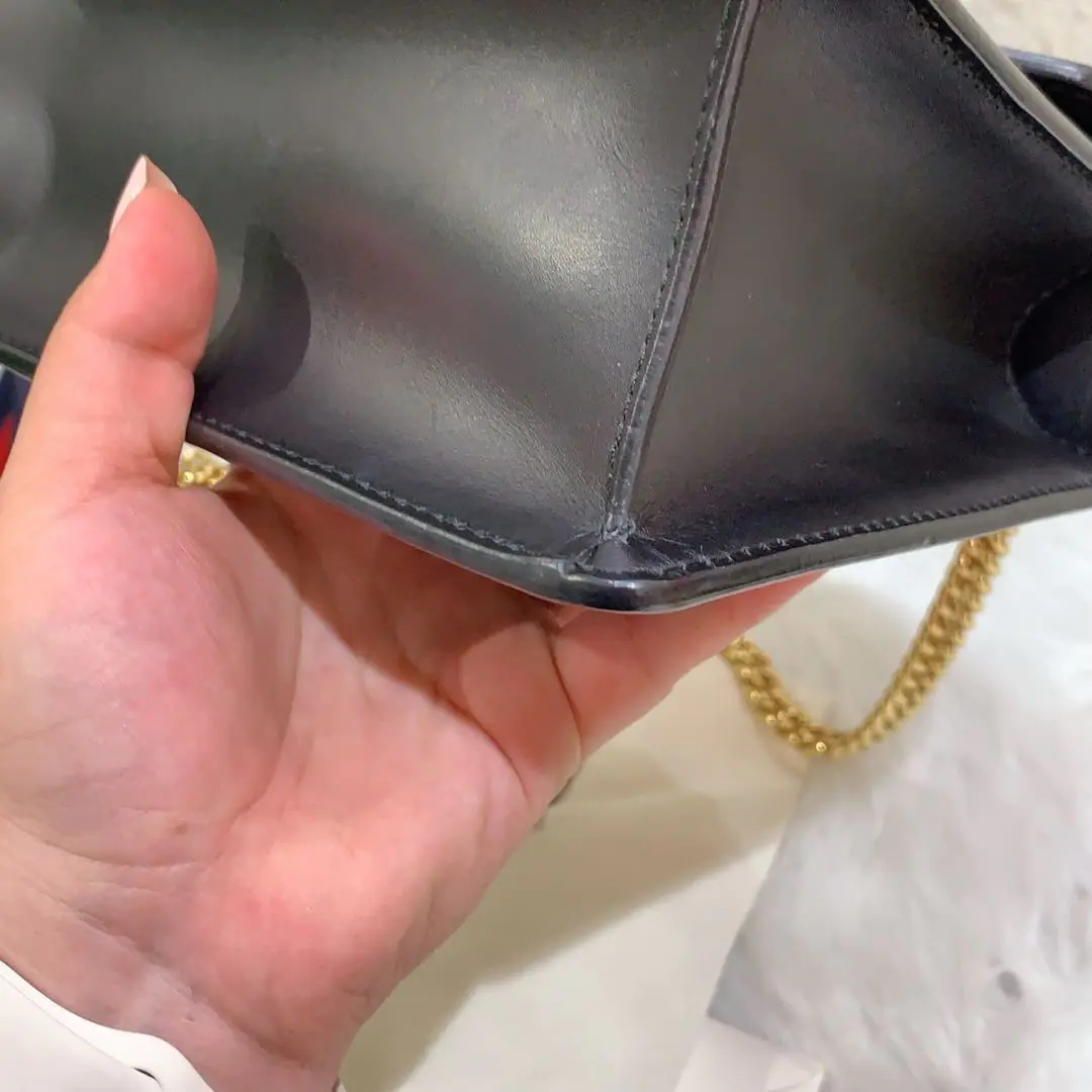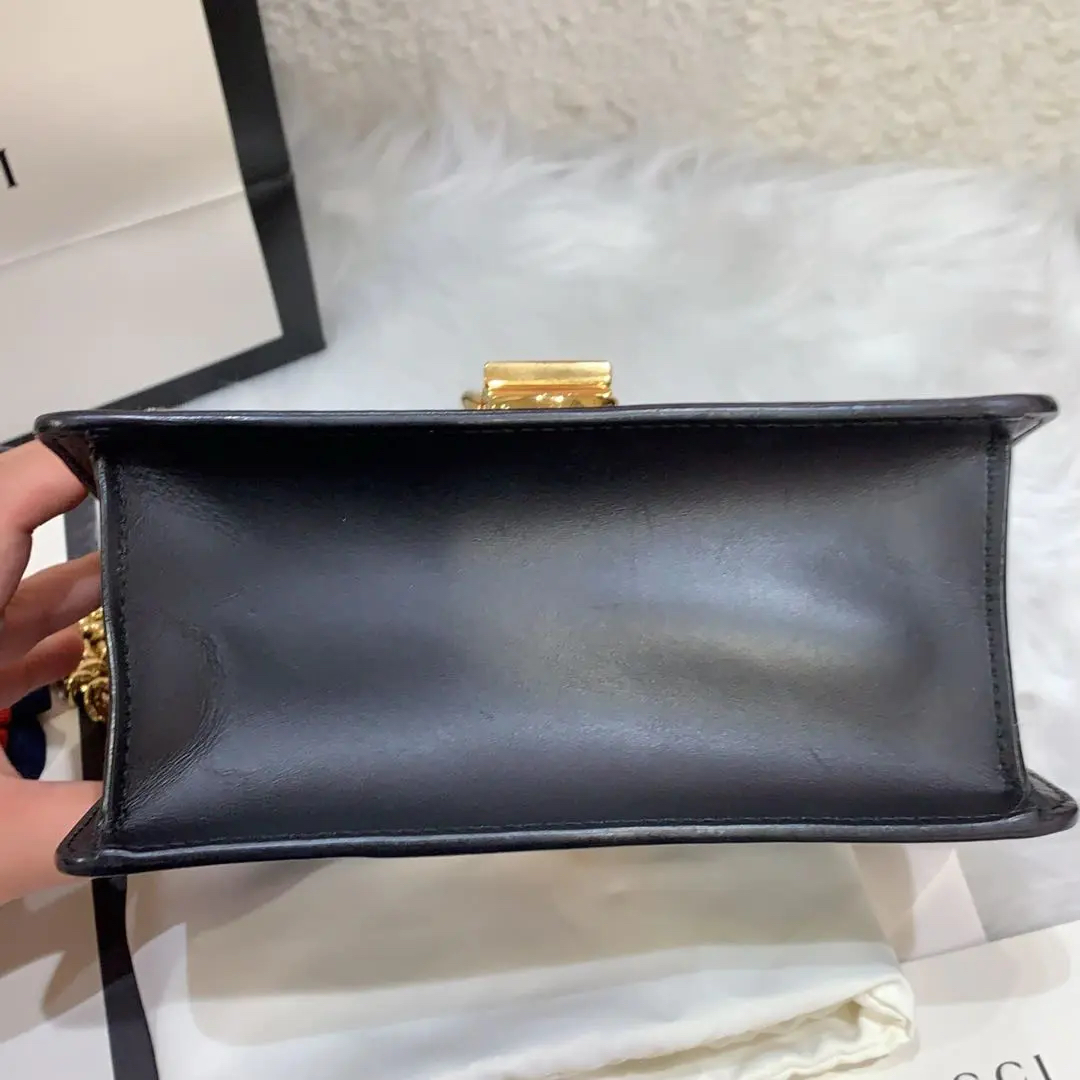 【商品详情】正品二手 Gucci 塞尔维亚 黑色 box皮 小号 斜挎包 🖤95新 18×12 配件:说明书 肩带 防尘袋。包身和内翻盖有正常使用划痕。喜欢box牛皮的不要错过!黑金奢华百搭