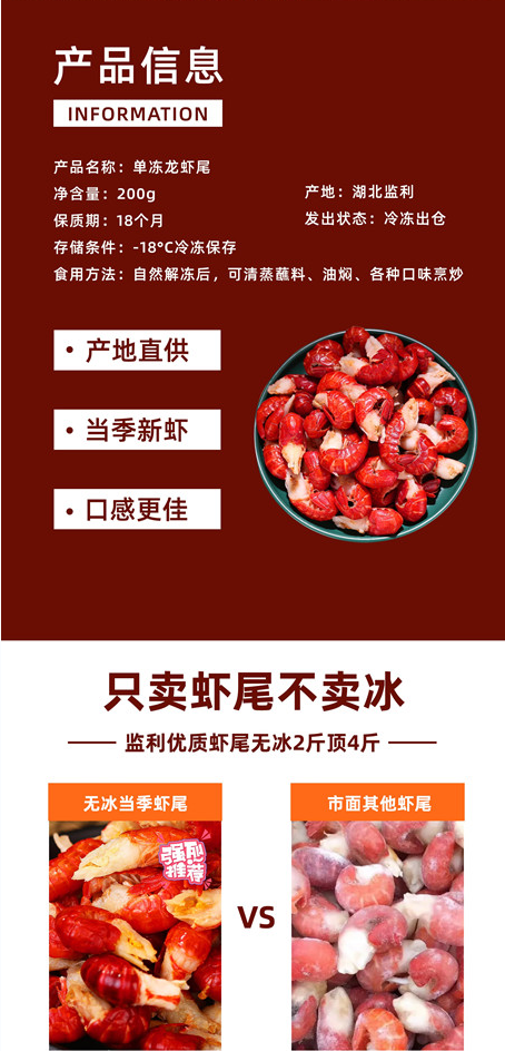 【严选】荆裕优选单冻龙虾尾200g*4袋/200g*8袋