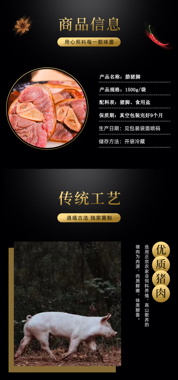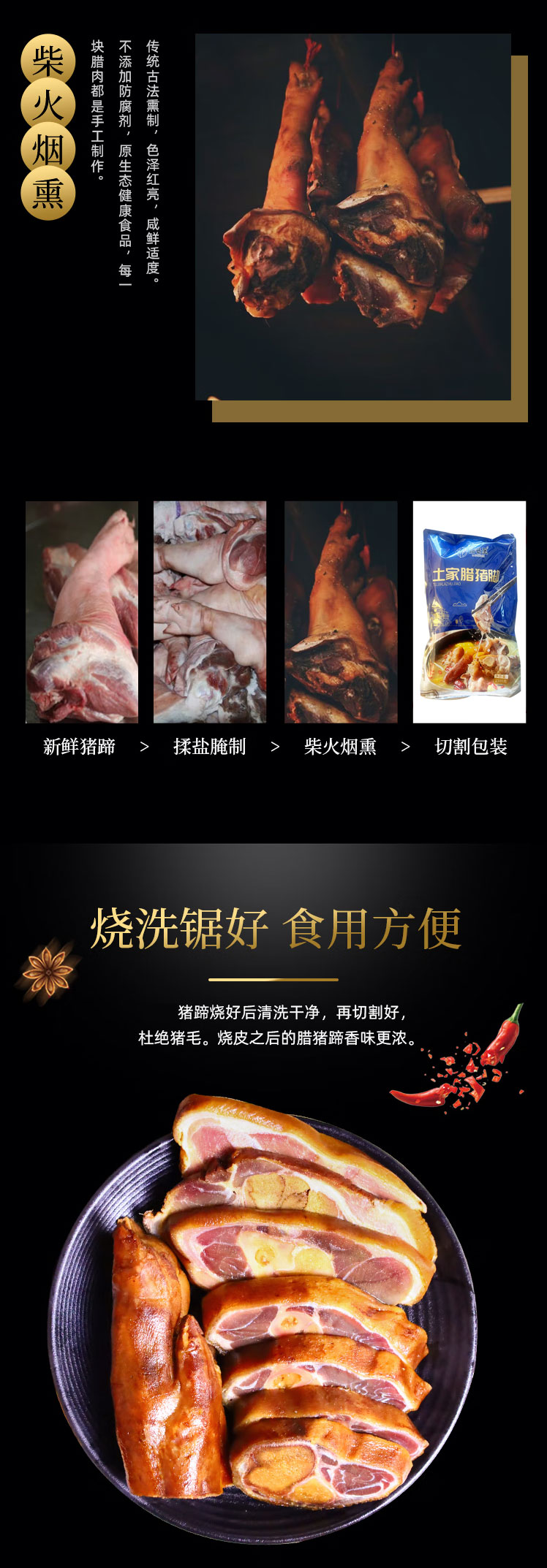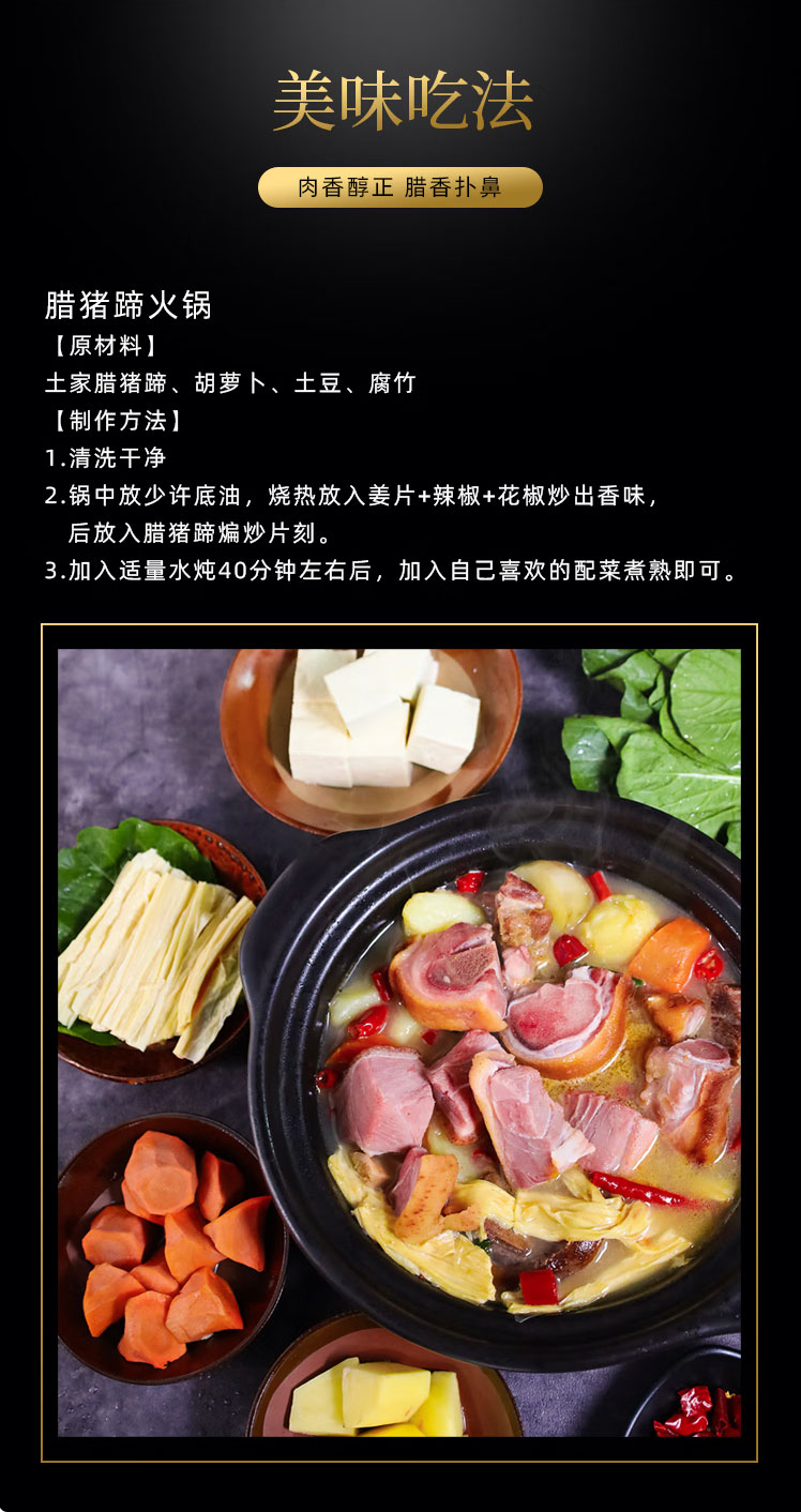 【严选】湖北恩施特产土家风味 柏树枝农家烟熏 腊冬至腊猪脚 1500g/袋(厂家直发)