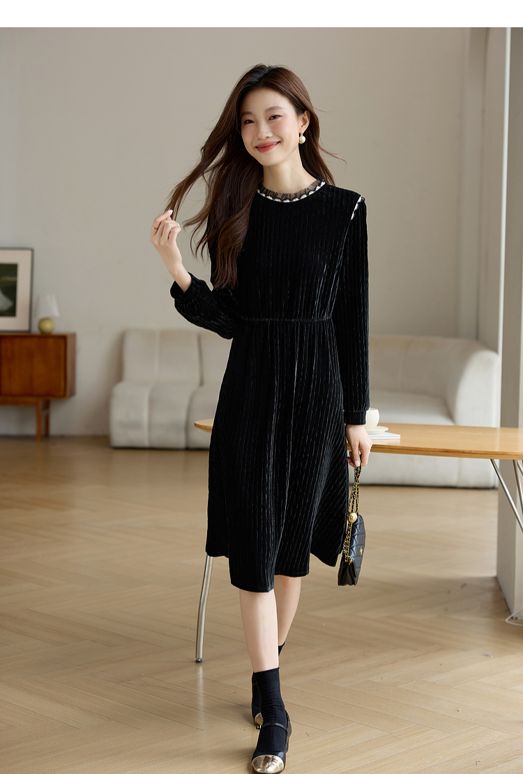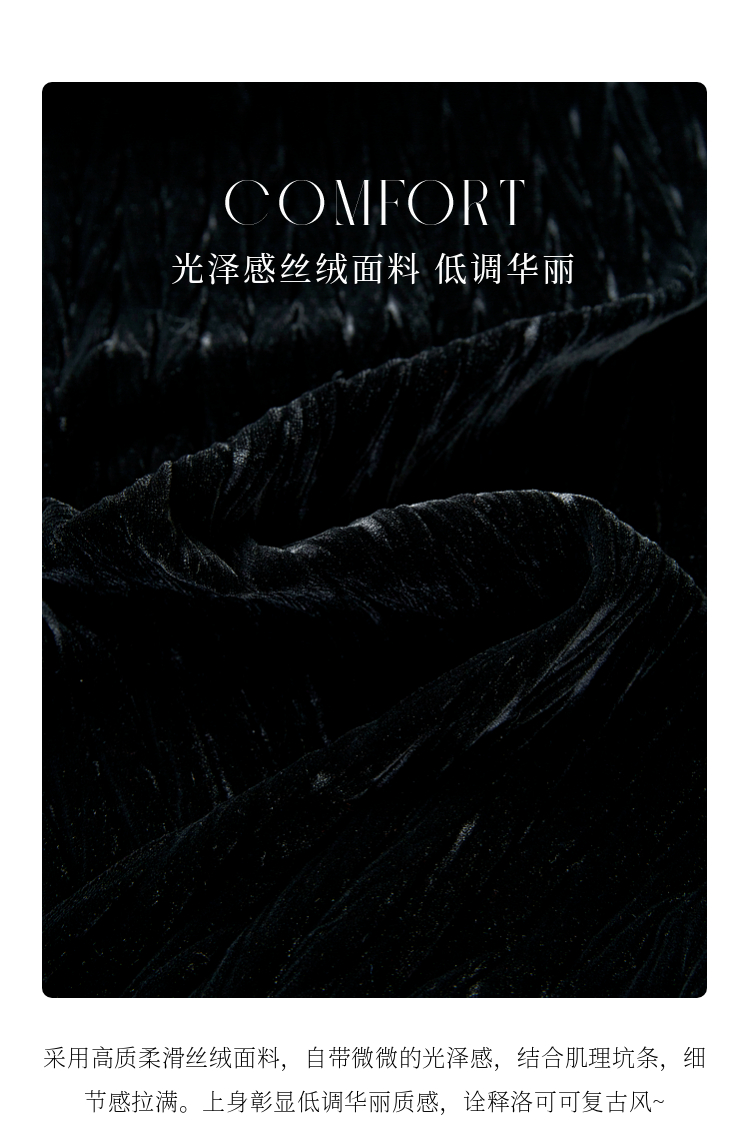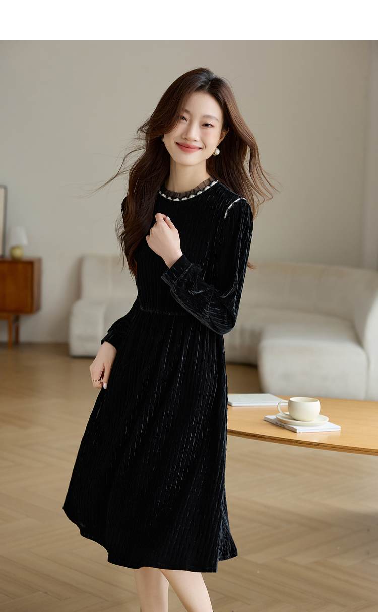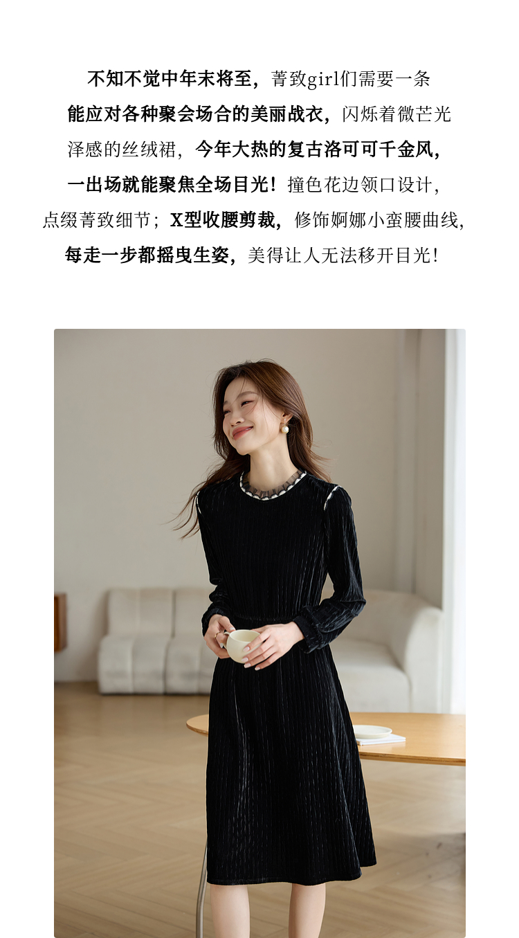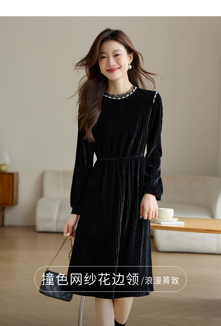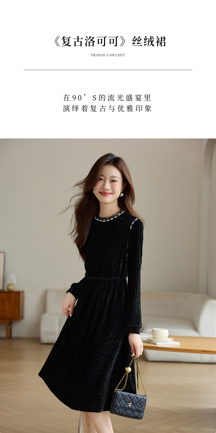 【专属特价】熙世界法式复古气质黑色丝绒连衣裙女秋冬内搭打底赫本风a字裙