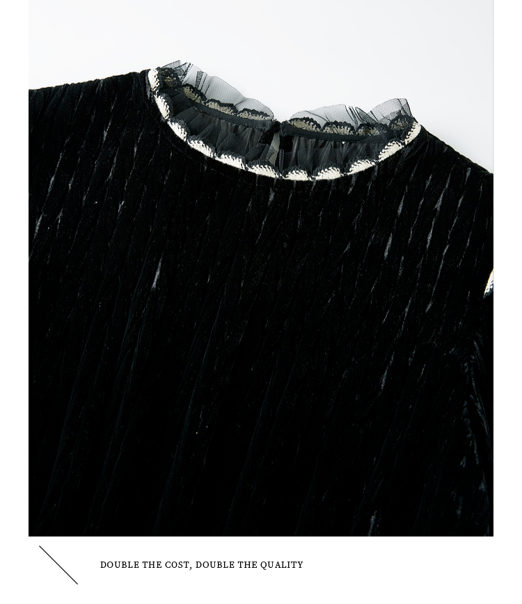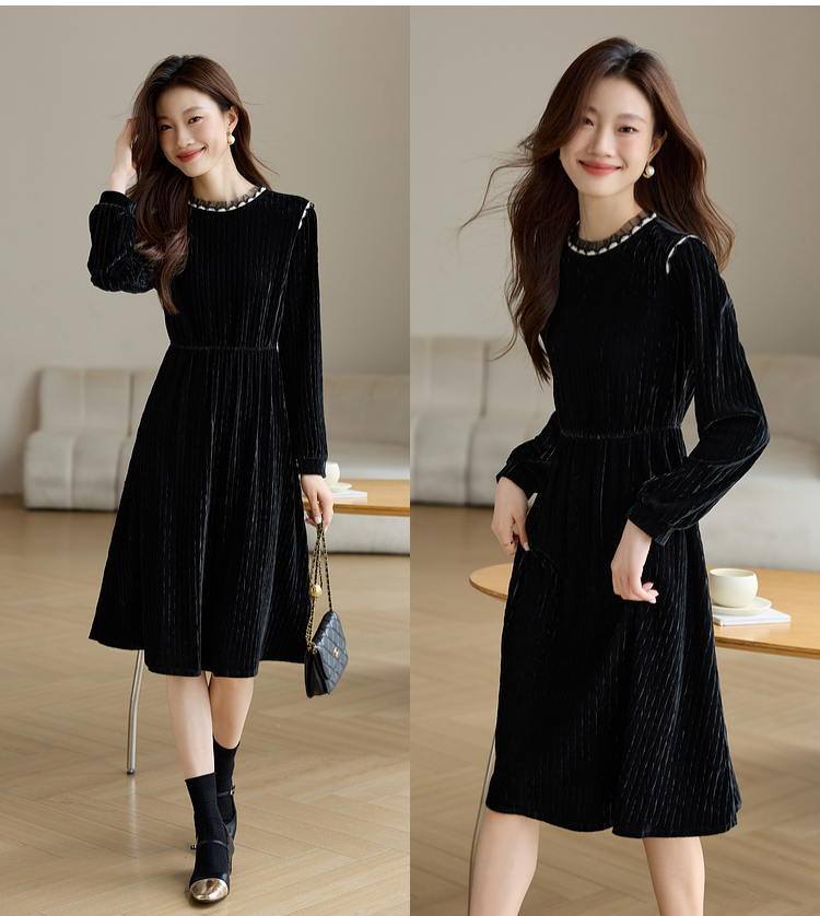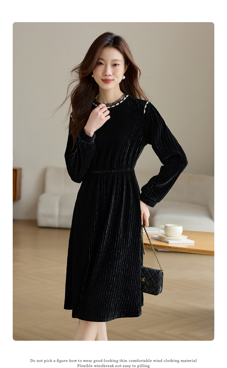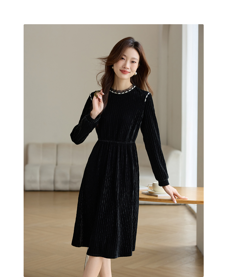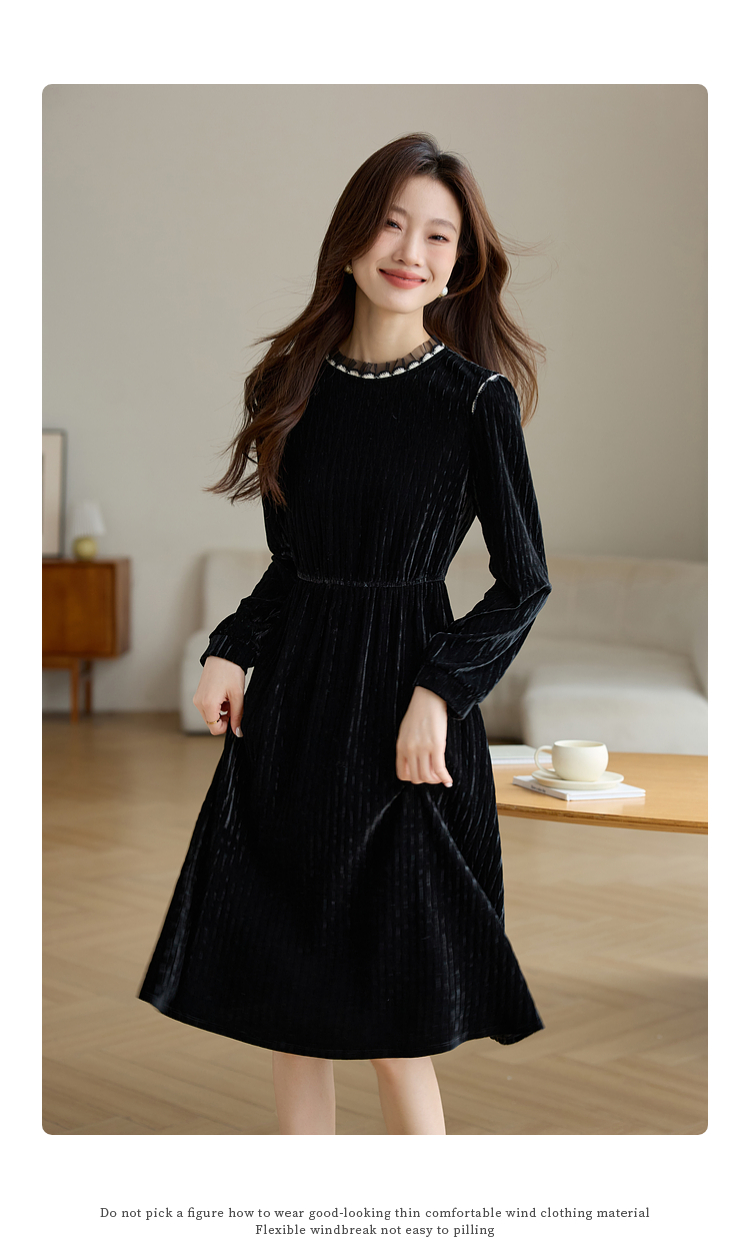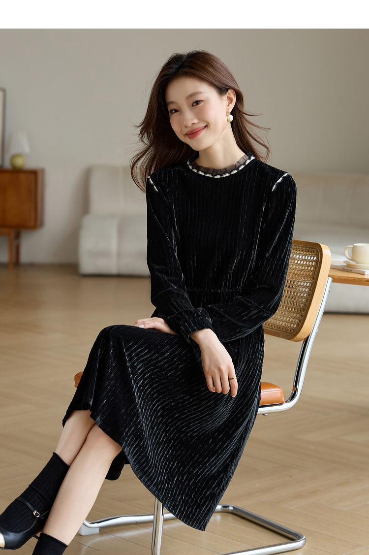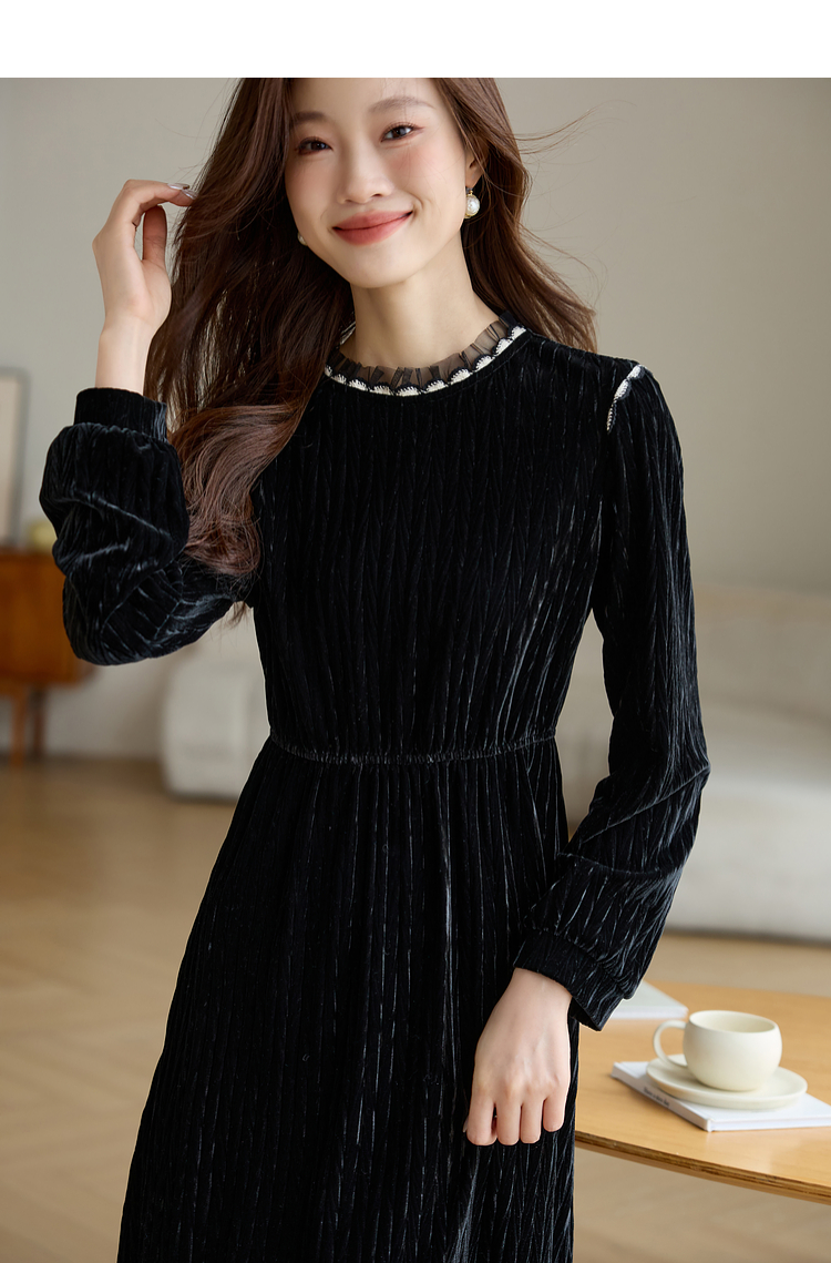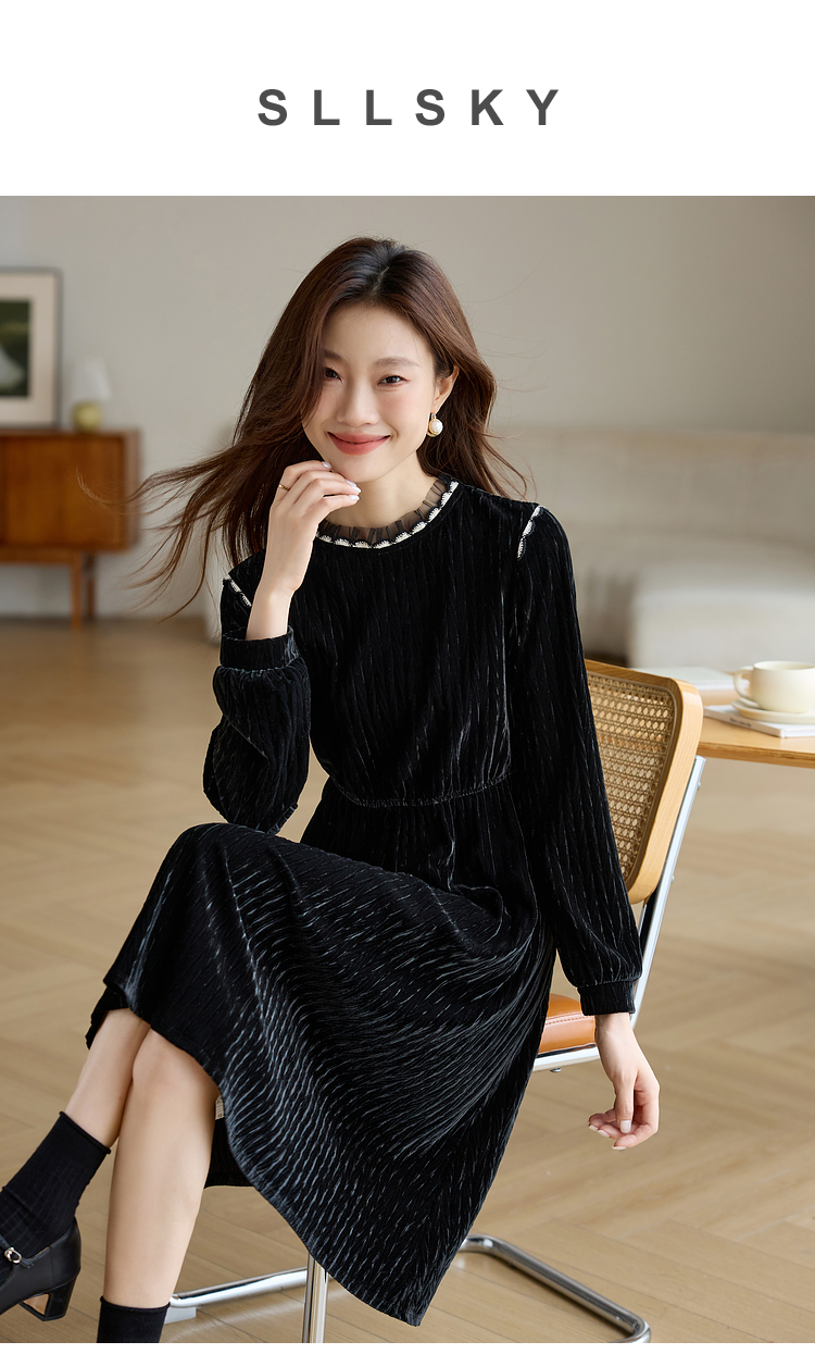 【专属特价】熙世界法式复古气质黑色丝绒连衣裙女秋冬内搭打底赫本风a字裙