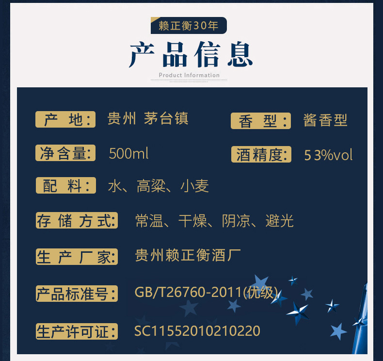 贵州赖正衡新30年酱香型白酒53度纯粮食酒高粱酒送礼盒装坤沙老酒