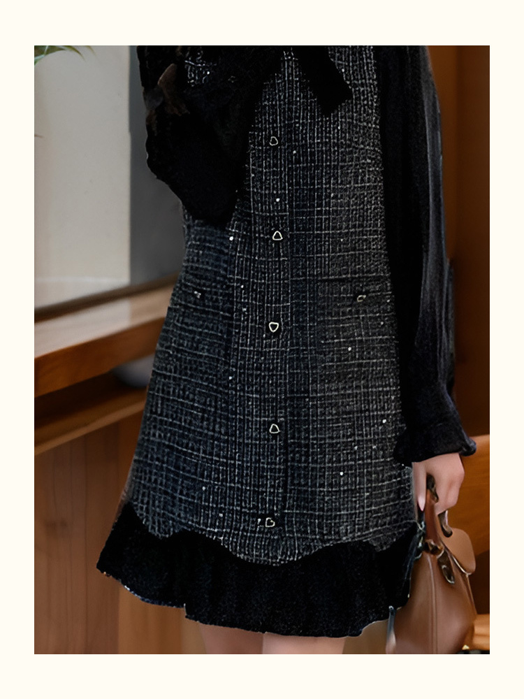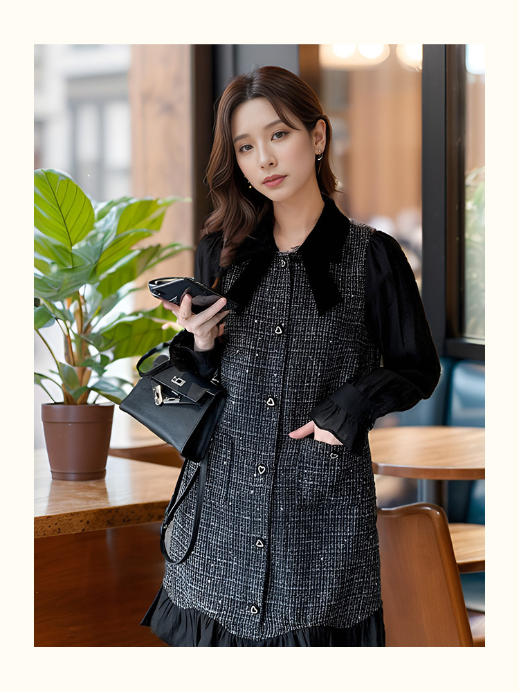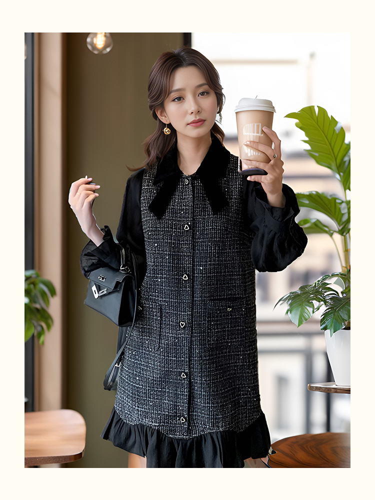 9/4奢姿2024年秋冬新款大码女装小香风翻领裙子胖妹妹法式拼接连衣裙9943855303