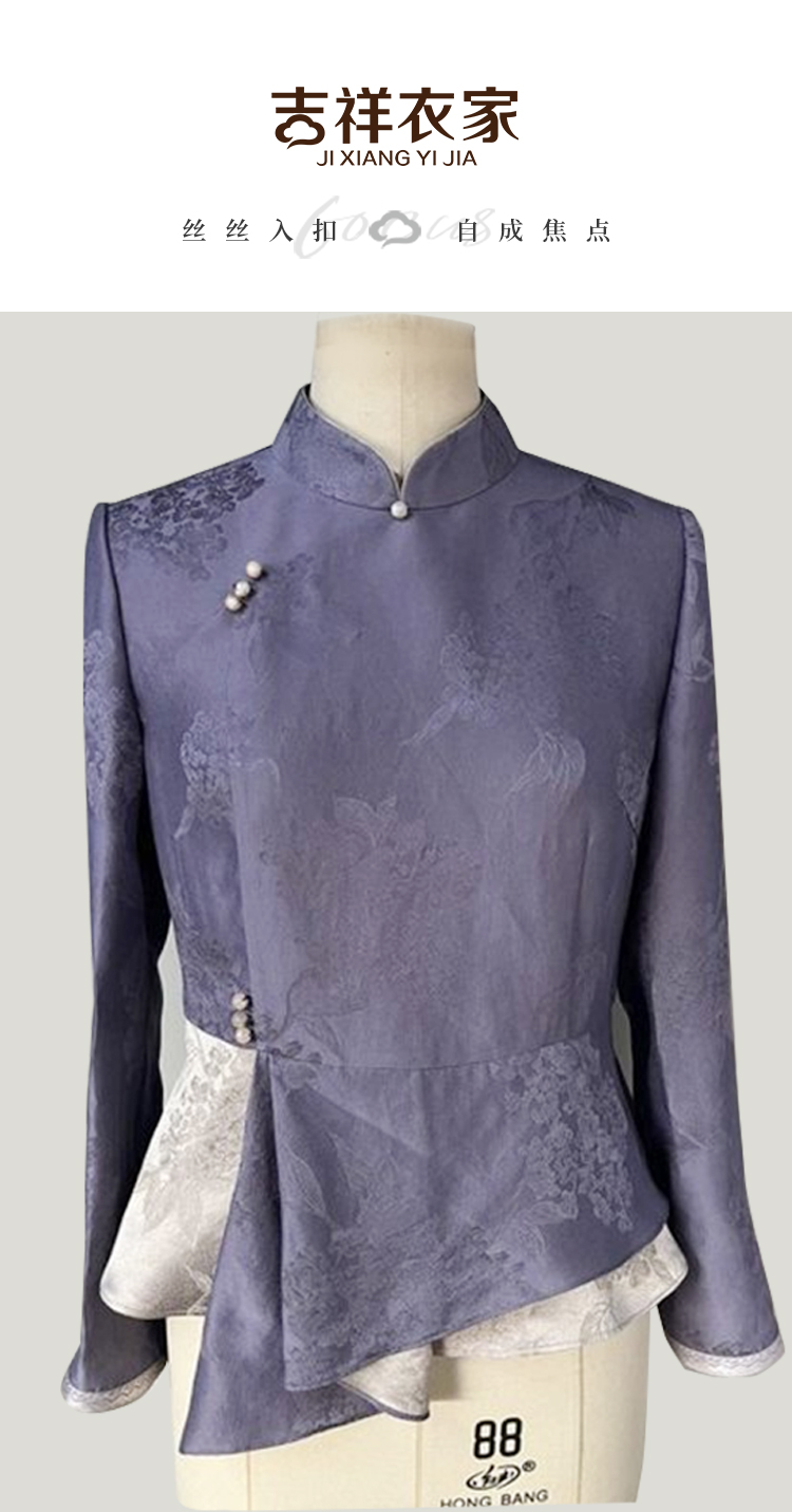吉祥衣家新中式国风桑蚕丝高端气质显瘦修身女装几重云柚真丝上衣